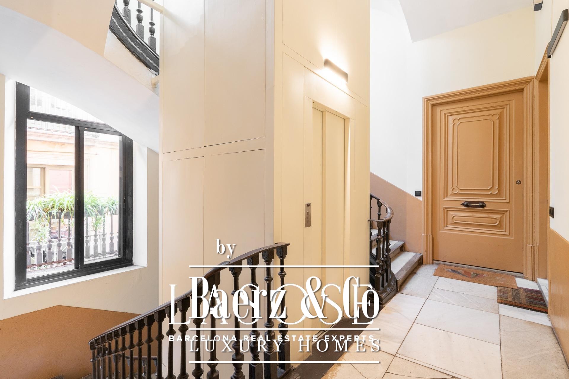 Terrassen, nyligen restaurerad med diskret nytt tak, förhöjer känslan av avskildhet för uteliv. Varje detalj speglar varsam renovering och respekt för de ursprungliga arkitektoniska elementen. Bekvämligheter inkluderar hiss, platsbyggda garderober, moderna vitvaror, uppvärmning, luftkonditionering och egen pool. På bekvämt avstånd från Paseo Colón, Port Vell och stadens stränder och kulturoaser, bjuder denna lägenhet in till ett liv i balans mellan Barri Gòtics puls och hemmets privata frid. Lyxlägenhet till salu i Barcelona.