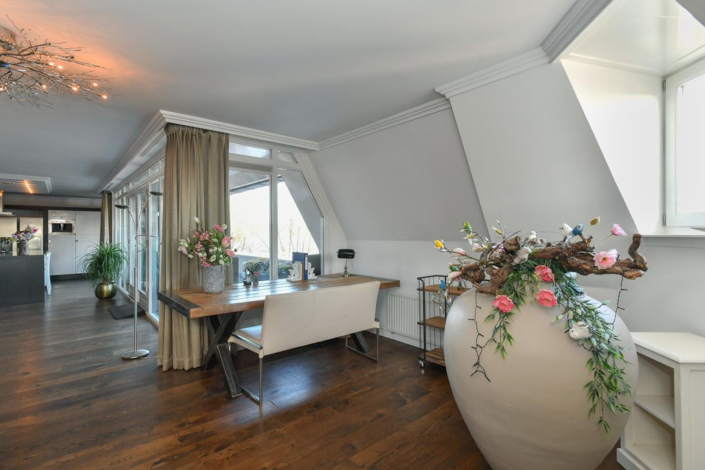Penthouse Bennekom är en unik möjlighet i hjärtat av byn och erbjuder 184 m² sofistikerat boende i kombination med 31 m² utomhusytor i form av takterrass och loggia. Bostaden ligger högst upp i ett välskött mindre komplex byggt 2002, med exceptionell integritet tack vare endast två bostäder på översta planet och hiss direkt till dörren.