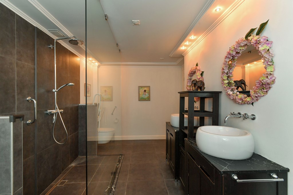 Två väl tilltagna sovrum med direkt access till badrum och ett angränsande omklädningsrum i master bedroom understryker komforten. Viktiga funktioner såsom luftkonditionering, mekanisk ventilation, takfönster och isolerglas bidrar till en optimal boendemiljö.
