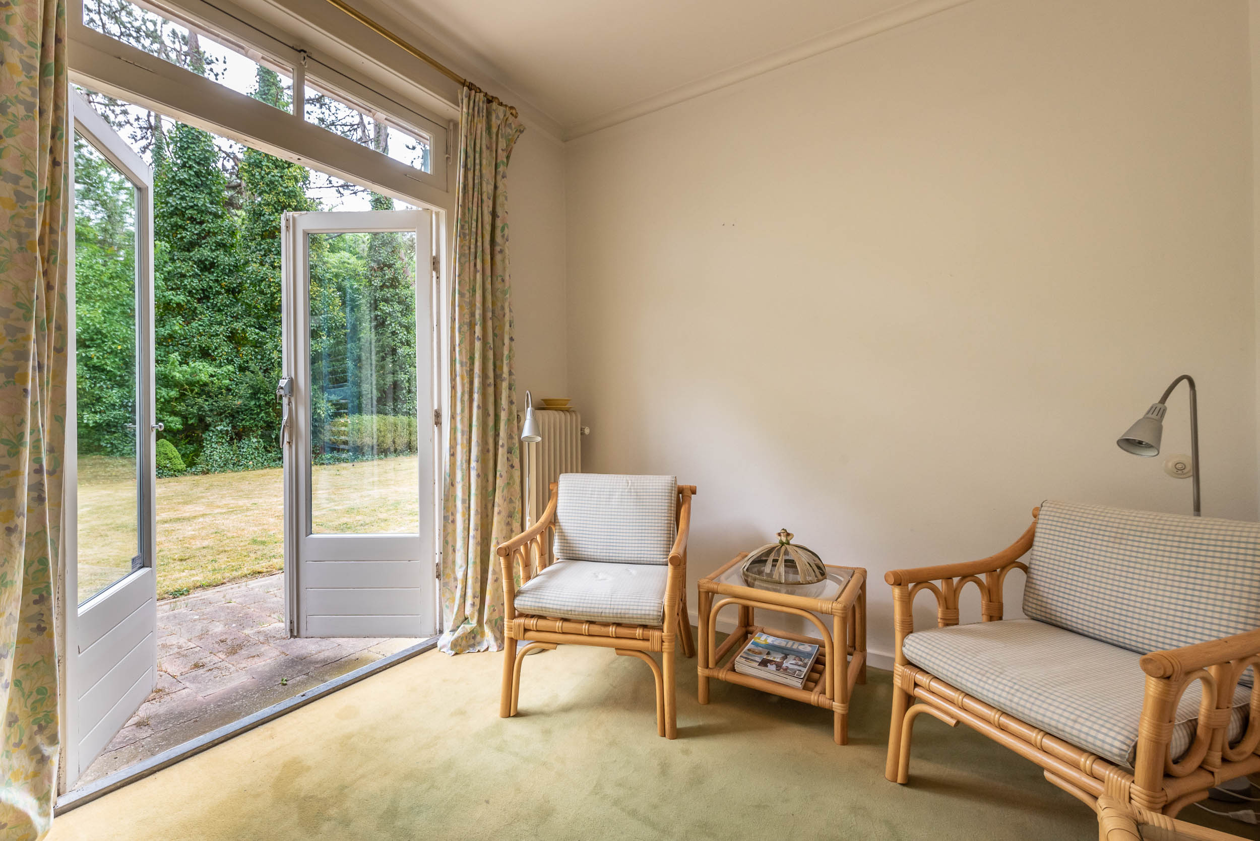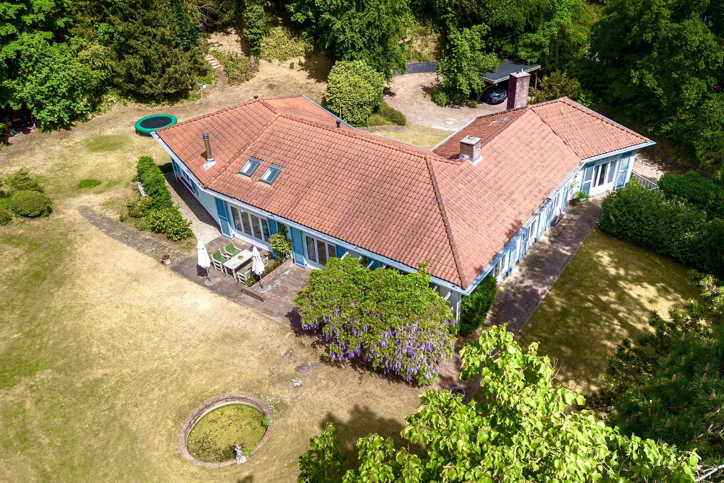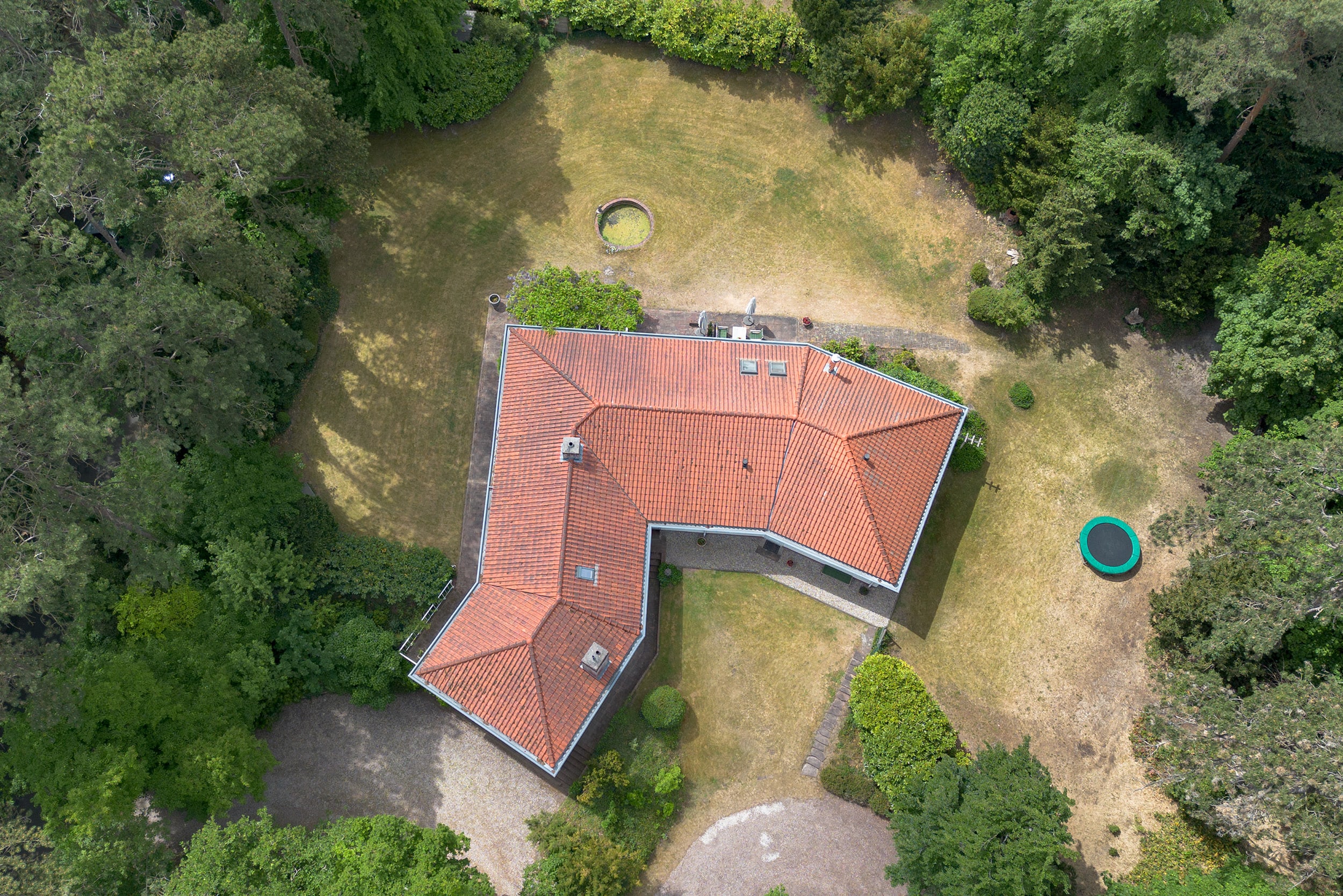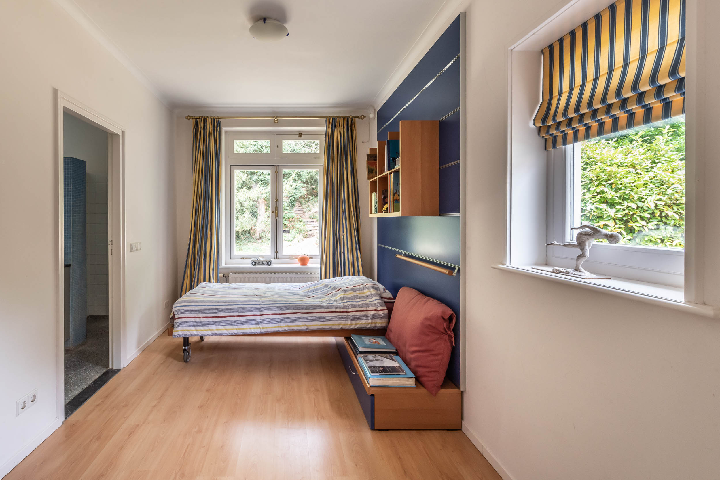 Friliggande villa Bloemendaal utmärker sig med en sofistikerad arkitektonisk närvaro i det eftertraktade villaparken Duin en Daal. Designad av H.W. van Kempen förmedlar fastigheten en känsla av medelhavslätthet med subtila blå Louvre-persienner, valmat tak samt autentisk fransk kakelsättning i hallen. Bostaden ligger på en generös privat tomt om 4 420 m², omgiven av fullvuxna träd och placerad högre än vägen — vilket garanterar optimal integritet.