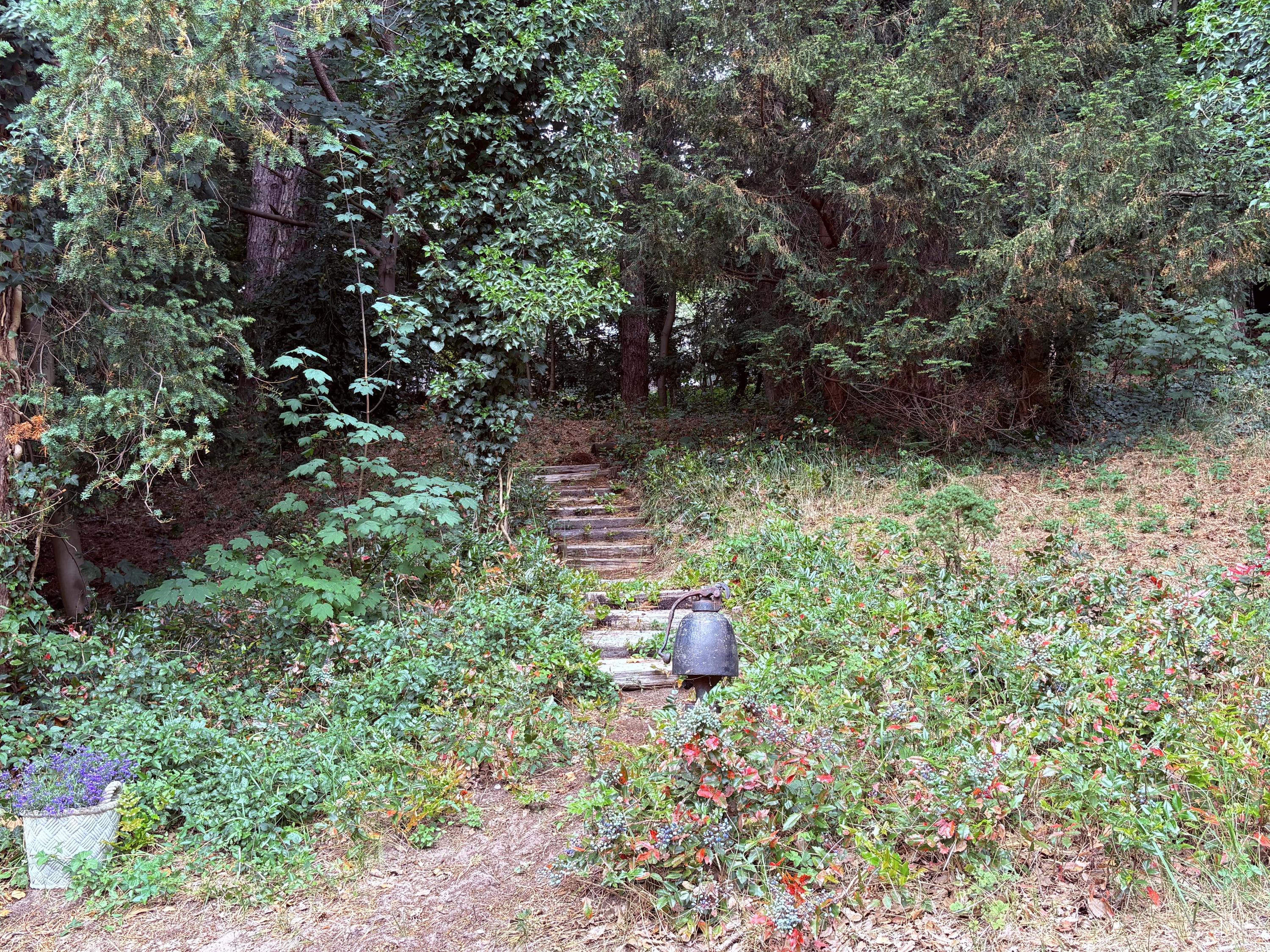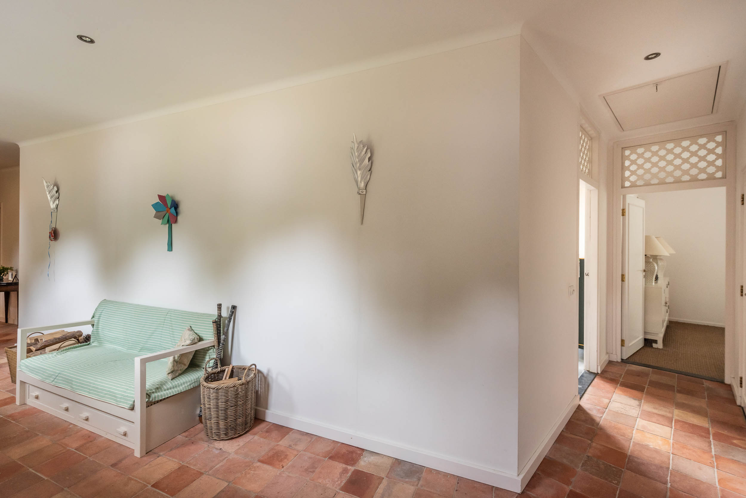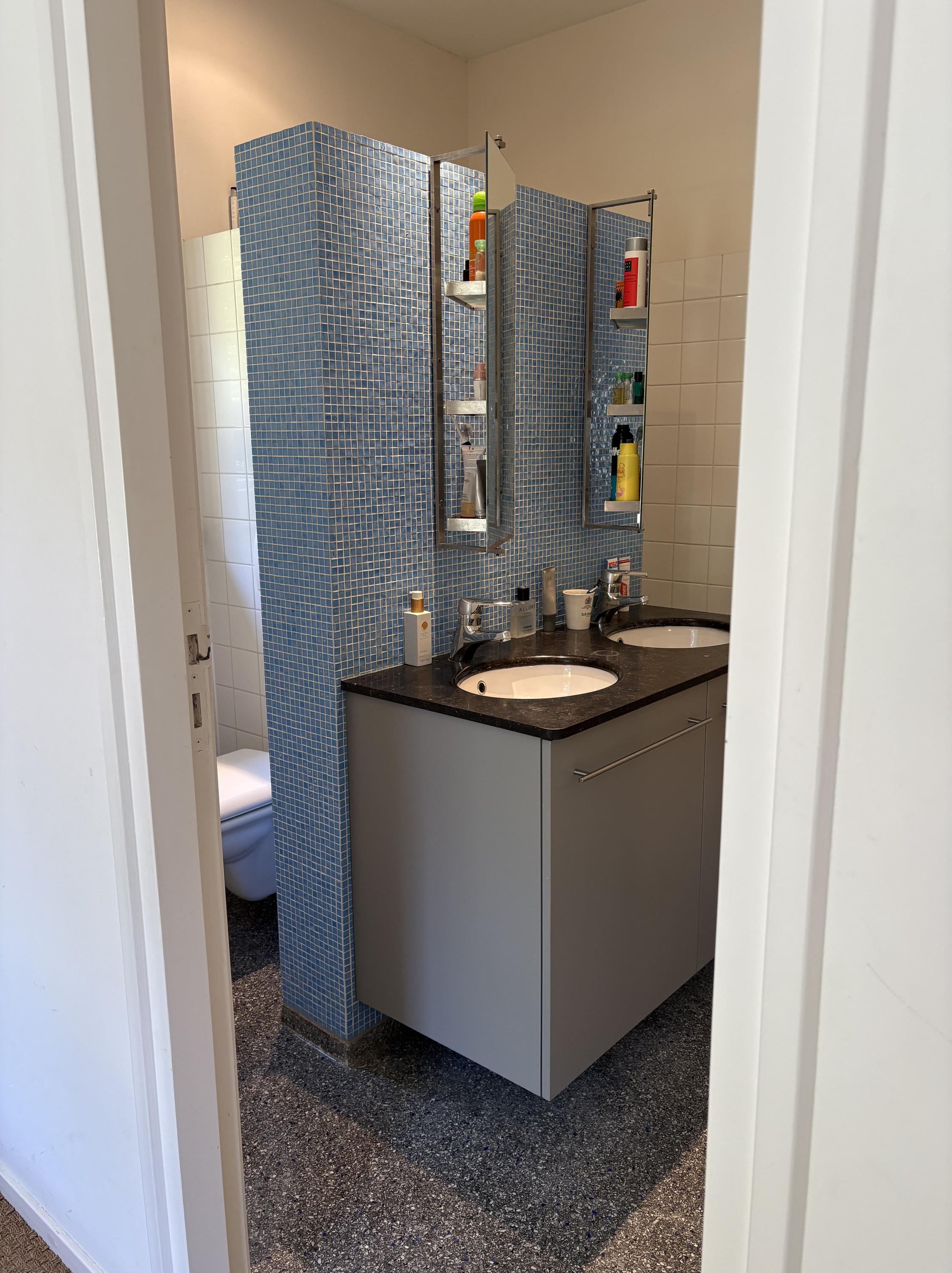 En svepande infart leder till ett dubbelcarport med rundel och gott om parkering, kompletterat av ett integrerat garage. Boytan på 221 m² fördelas på både det ursprungliga huset från 1953 och en tillbyggnad från 2001, med bibehållen arkitektonisk harmoni. Interiören är skapad för komfort: ljusa, luftiga rum binds samman med franska dörrar till en ovanligt omväxlande och solig trädgård. Sällskapsytorna karaktäriseras av parkett och terrazzogolv, öppna spisar och platsbyggda detaljer, vilket ger en lågmäld men välkomnande värme.