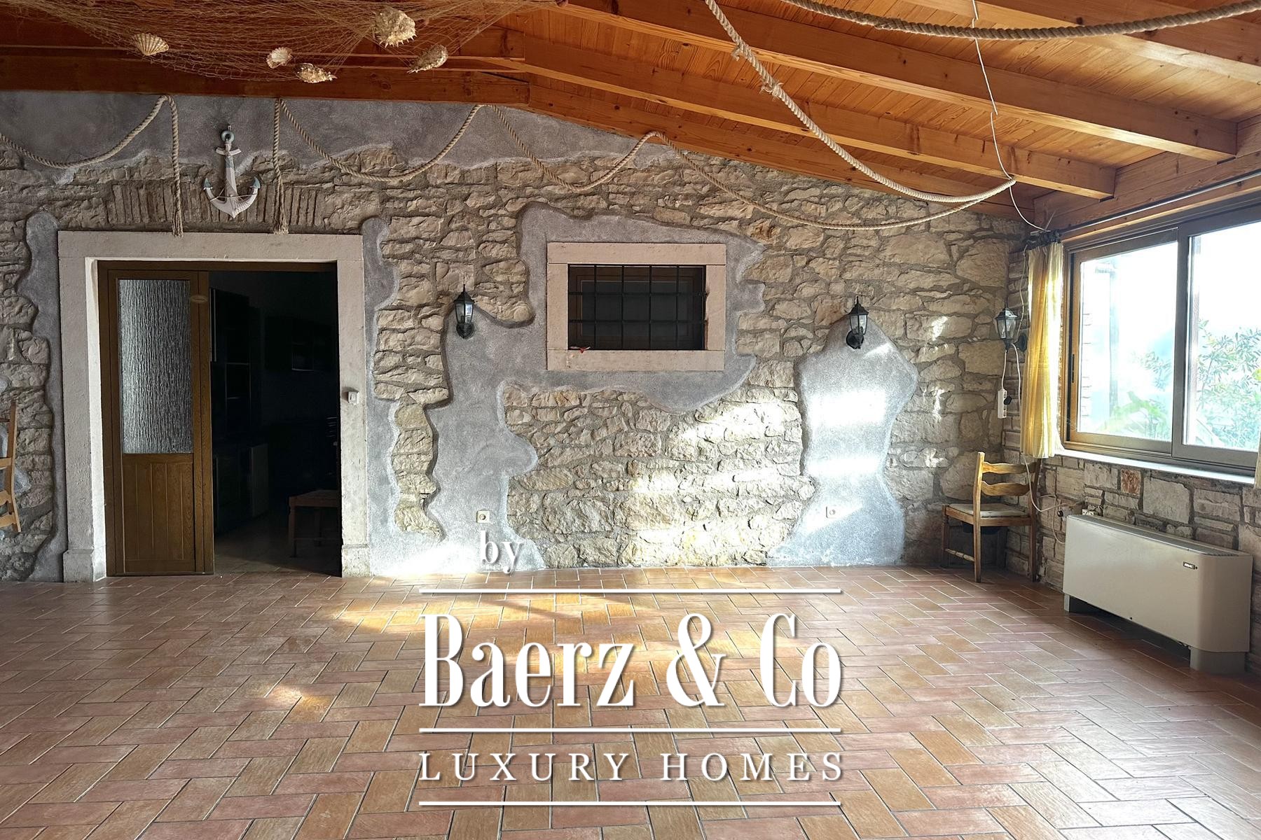 Fastigheten, delvis byggd i sten, fångar Brtoniglas autentiska och historiska karaktär. Synliga traditionella detaljer och en innergård särskiljer huset och inbjuder till varsam renovering och anpassning. Det centrala läget ger omedelbar tillgång till lokala bekvämligheter och understryker den sällsynta investeringsmöjligheten som denna fastighet för blandad användning i Brtonigla erbjuder idag.