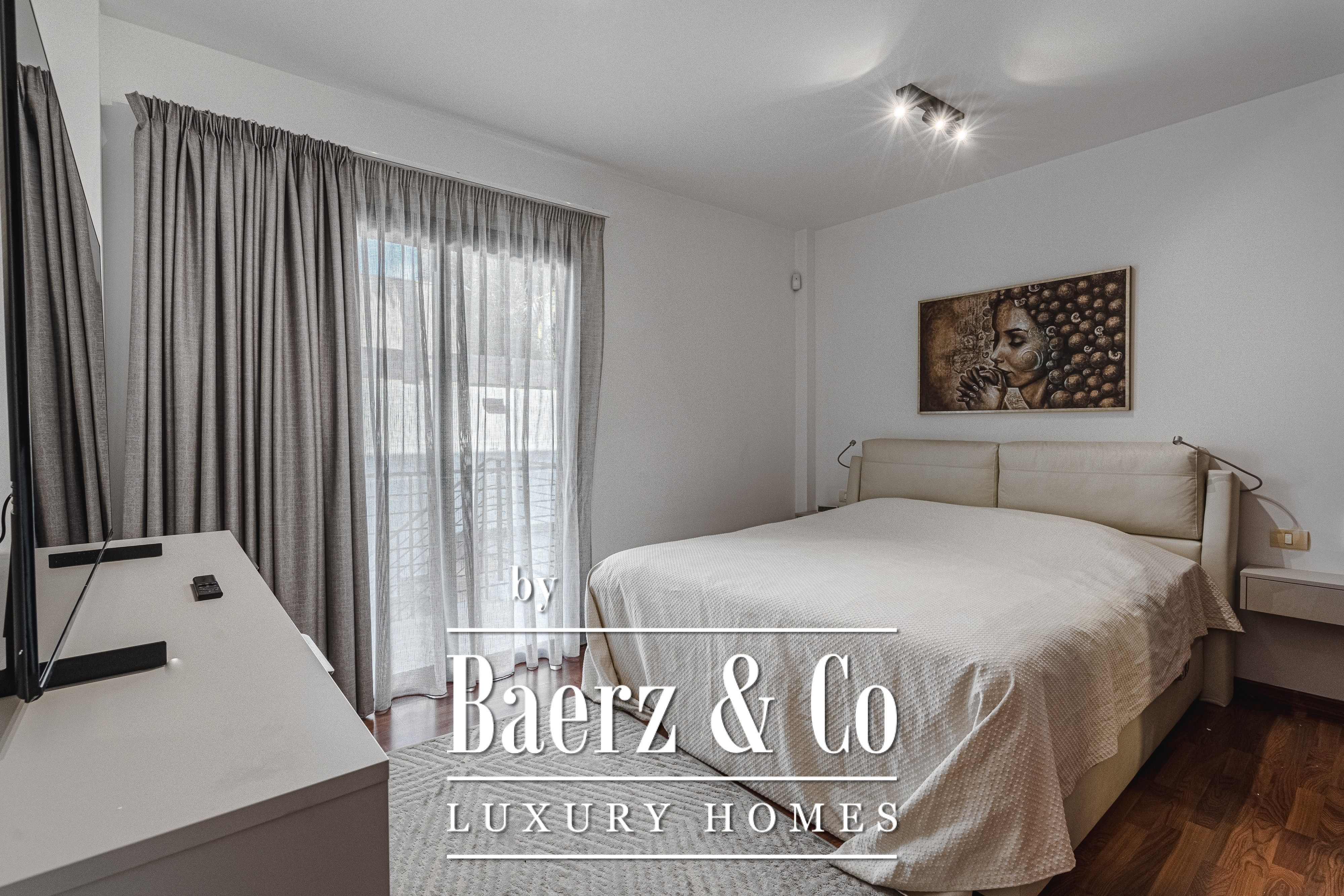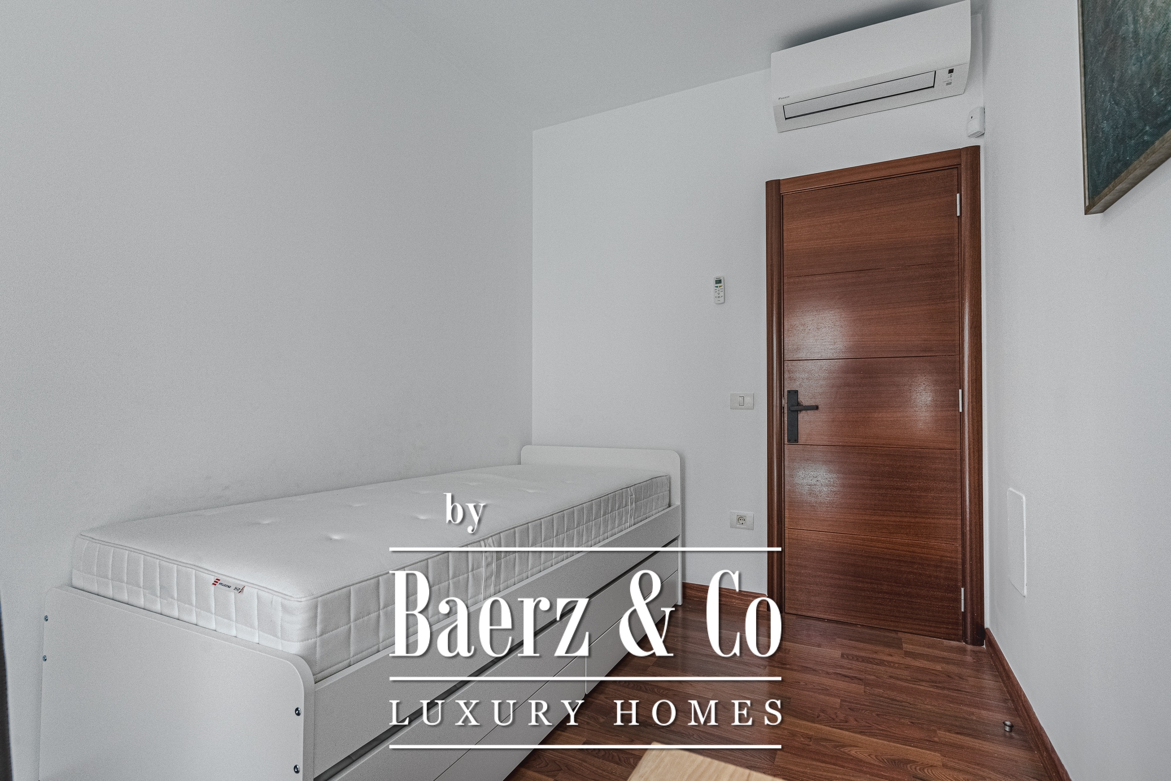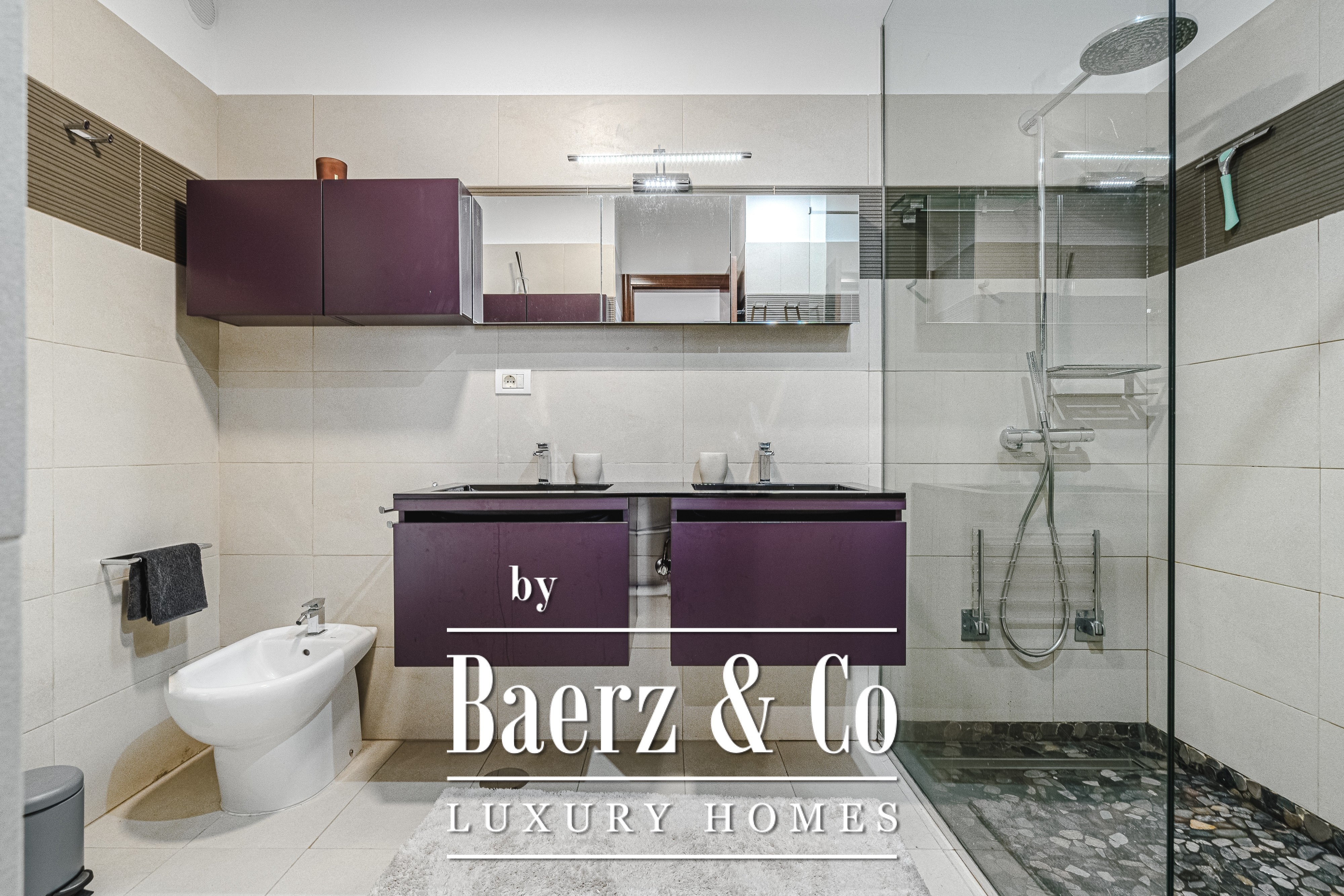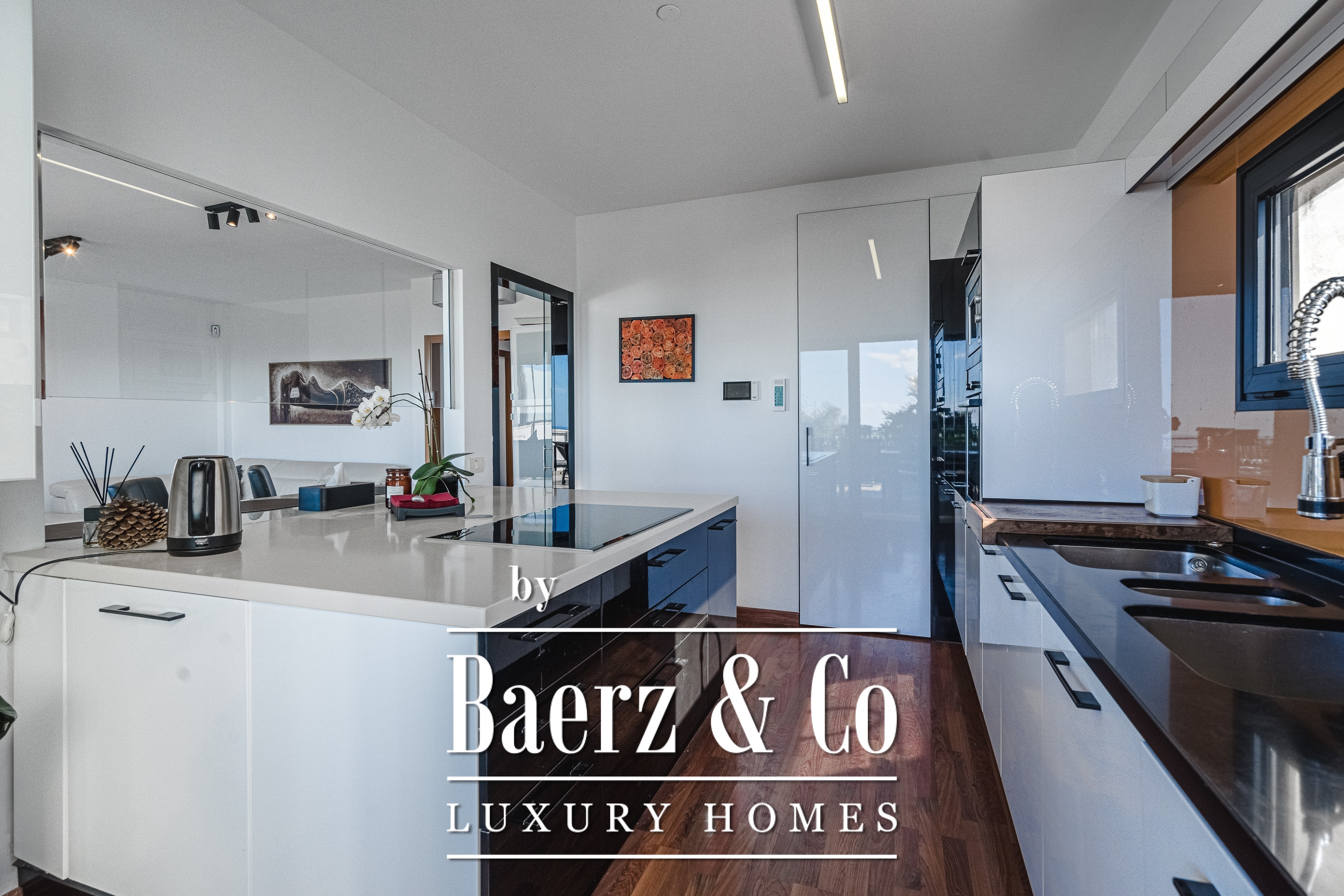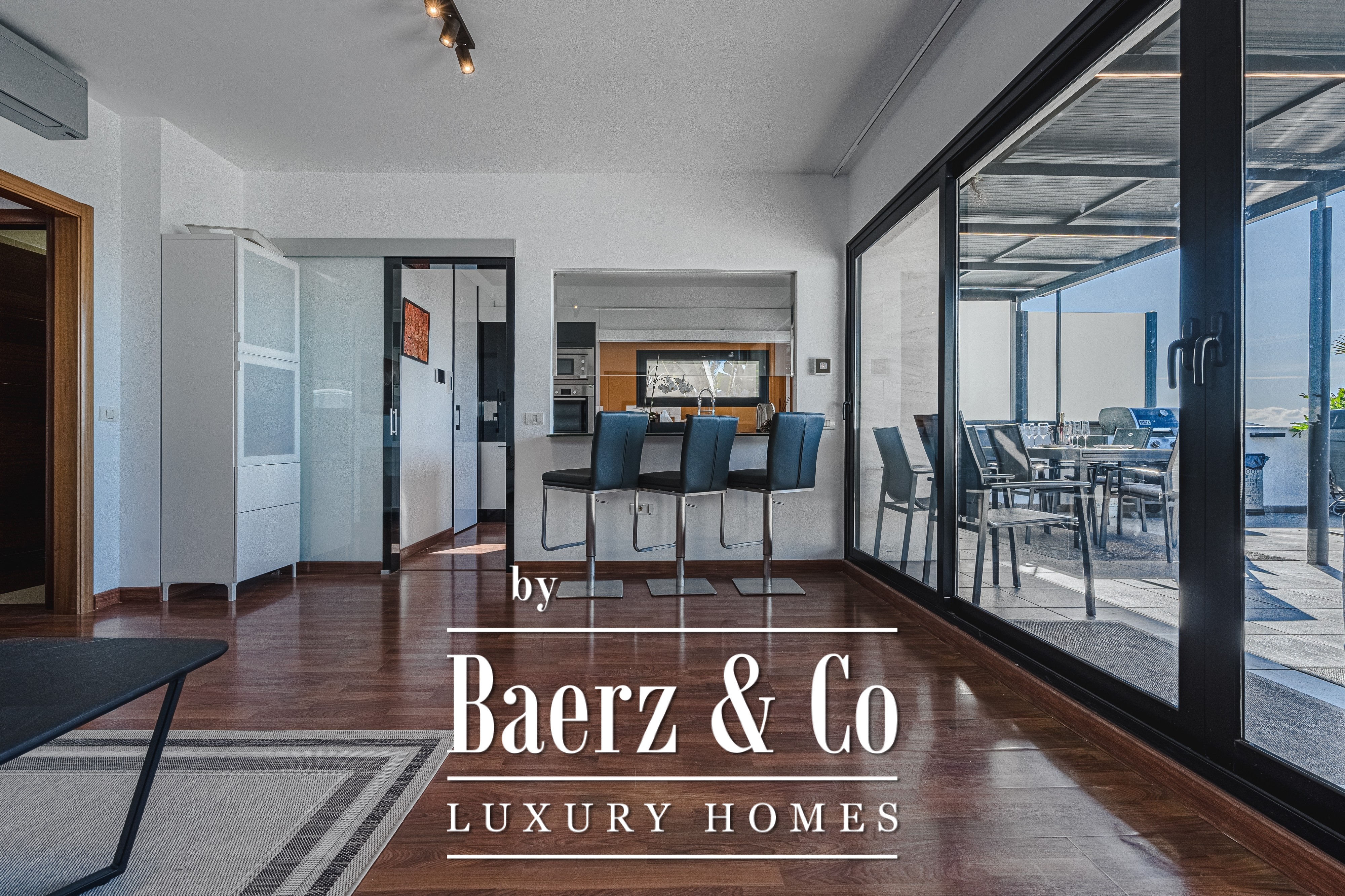 Interiören rymmer tre sovrum och tre badrum som kompletteras av två kök, två tvättstugor och särskilt förrådsutrymme. En självständig gästlägenhet med vardagsrum, sovrum, badrum, klädkammare och kök ger både flexibilitet och avskildhet för gäster eller längre vistelser. Bostaden är utrustad med Daikin-luftkonditionering, värmeåtervinningsventilation och solcellsdriven varmvattenberedare för hållbar komfort.