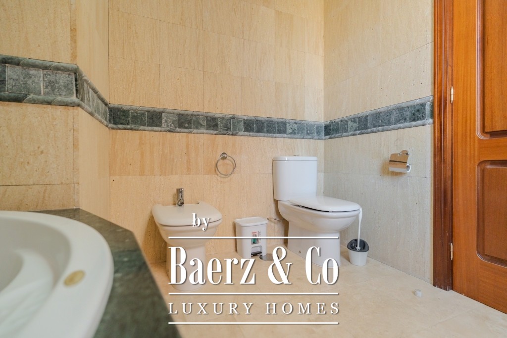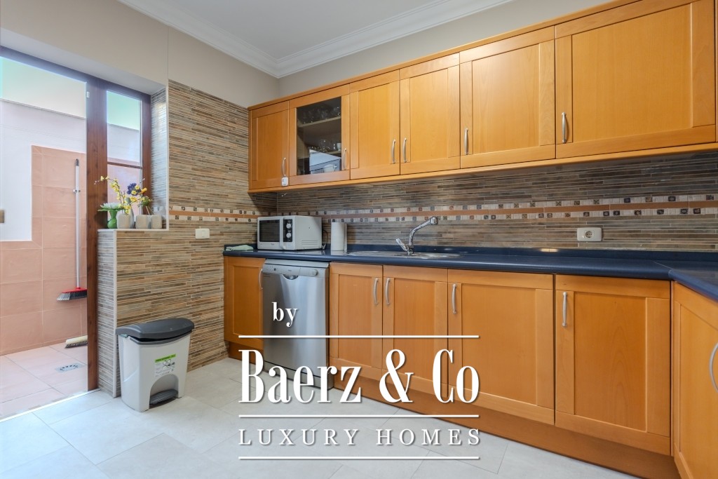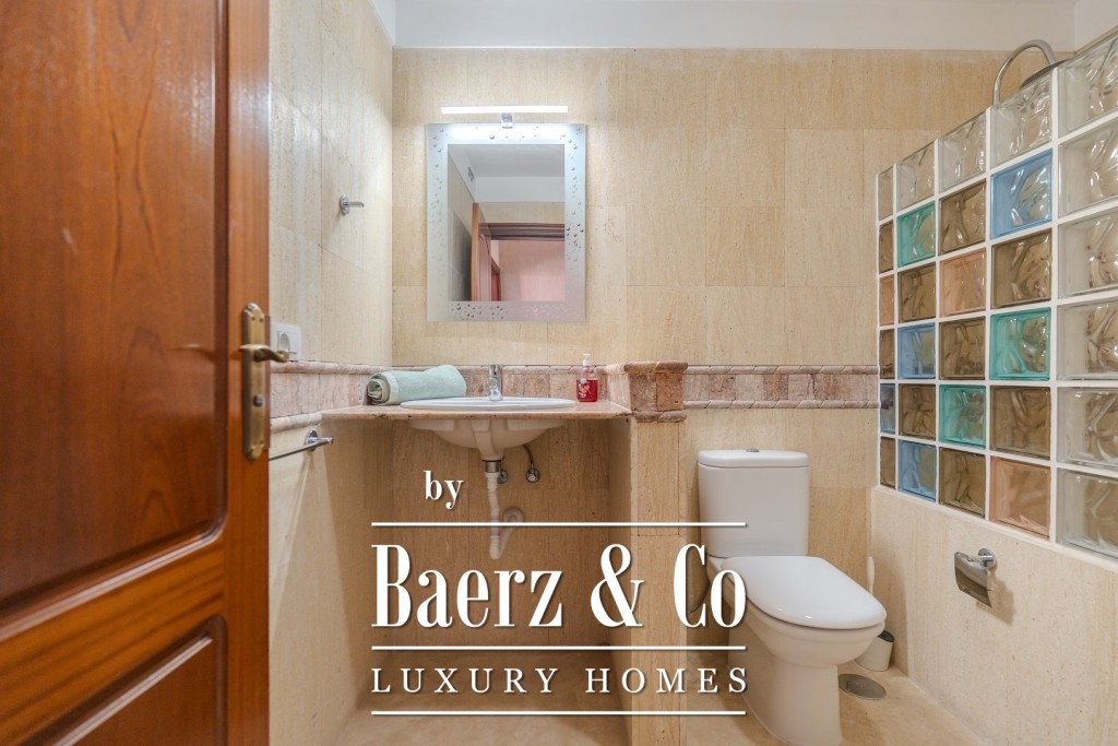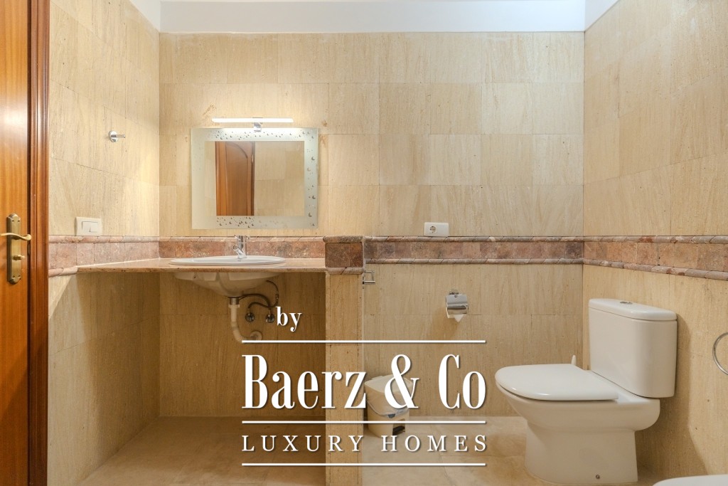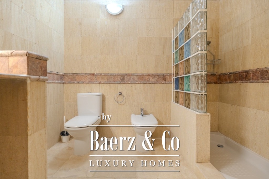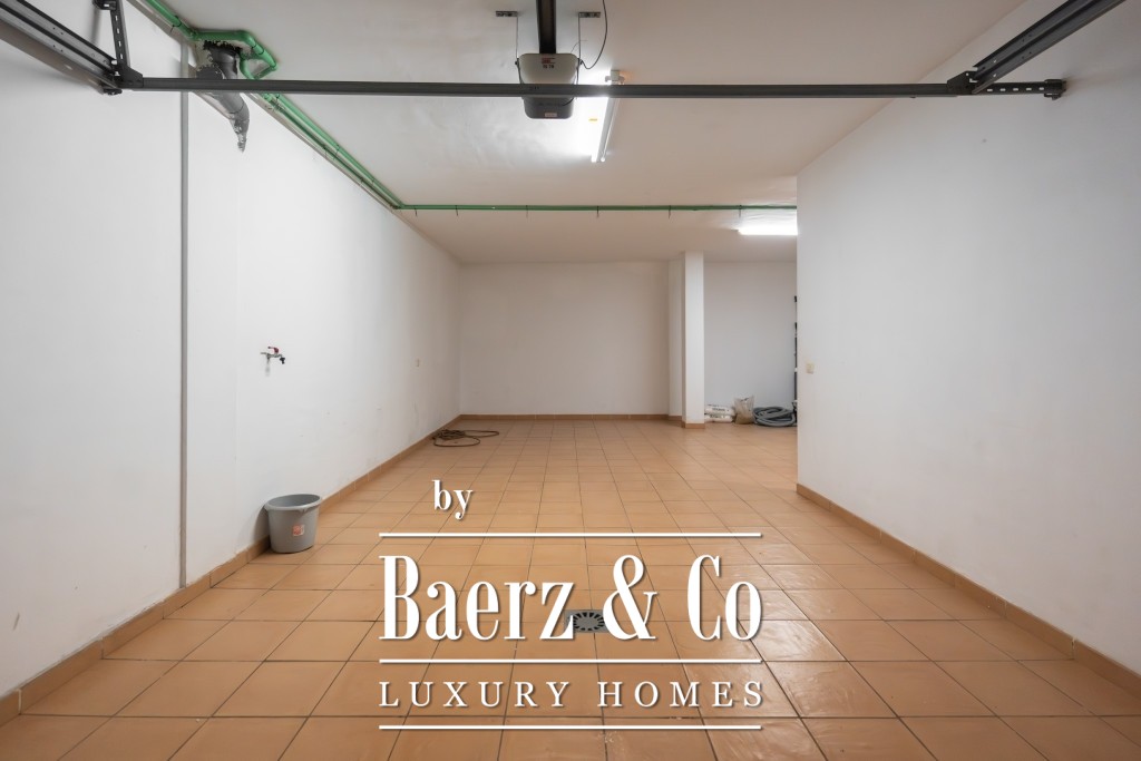 I det 77 m² stora källarplanet finns ett privat garage för två till tre bilar, ett förråd och extra förvaring under trappan. Boende har tillgång till två gemensamma pooler, varav den ena är uppvärmd, omgivna av lugna och välskötta grönytor. Månadsavgiften är 265 € och IBI-skatten 925 € per år, vilket bekräftar denna villas sällsynta kombination av tillgänglighet, diskretion och bekvämlighet.