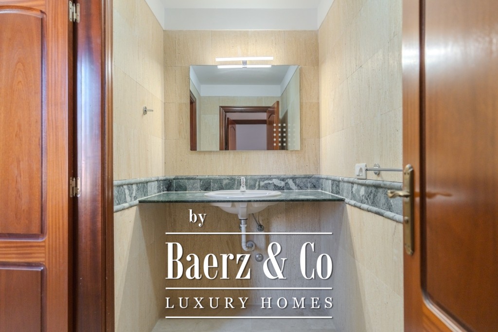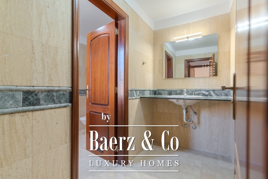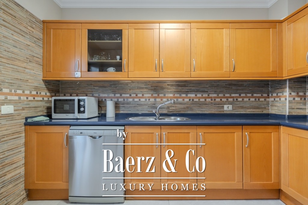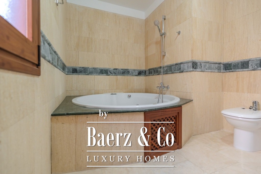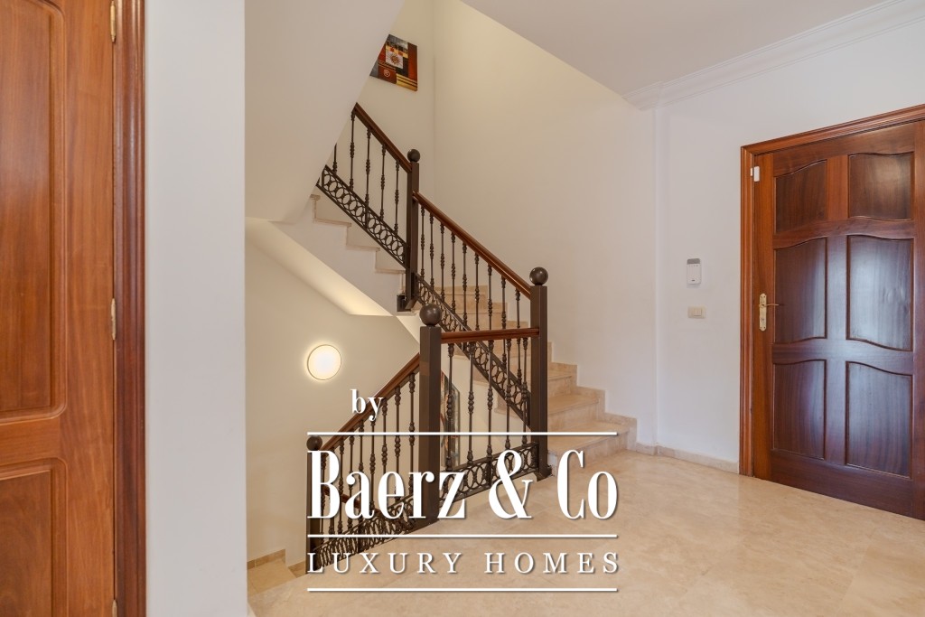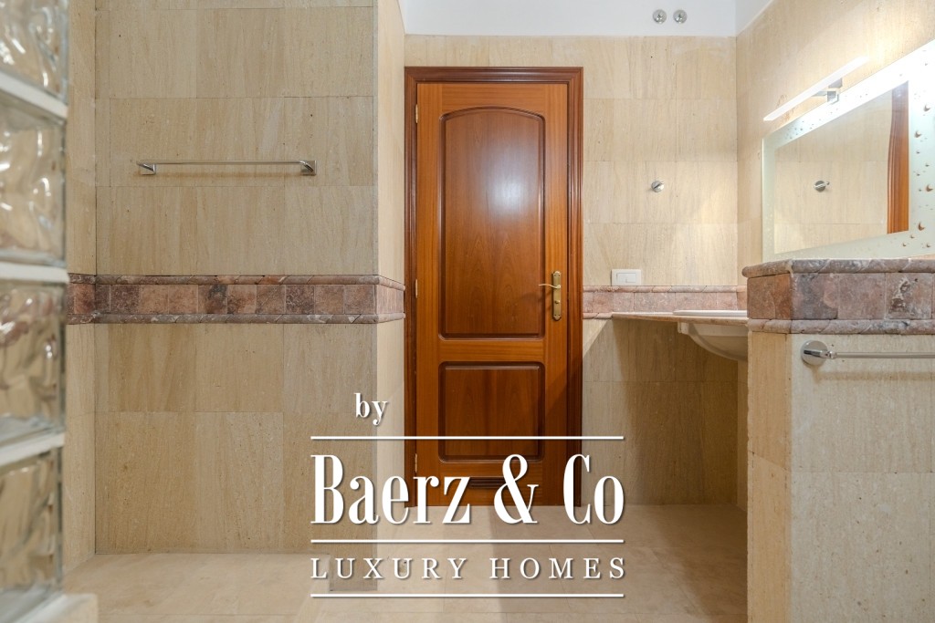 I det 77 m² stora källarplanet finns ett privat garage för två till tre bilar, ett förråd och extra förvaring under trappan. Boende har tillgång till två gemensamma pooler, varav den ena är uppvärmd, omgivna av lugna och välskötta grönytor. Månadsavgiften är 265 € och IBI-skatten 925 € per år, vilket bekräftar denna villas sällsynta kombination av tillgänglighet, diskretion och bekvämlighet.