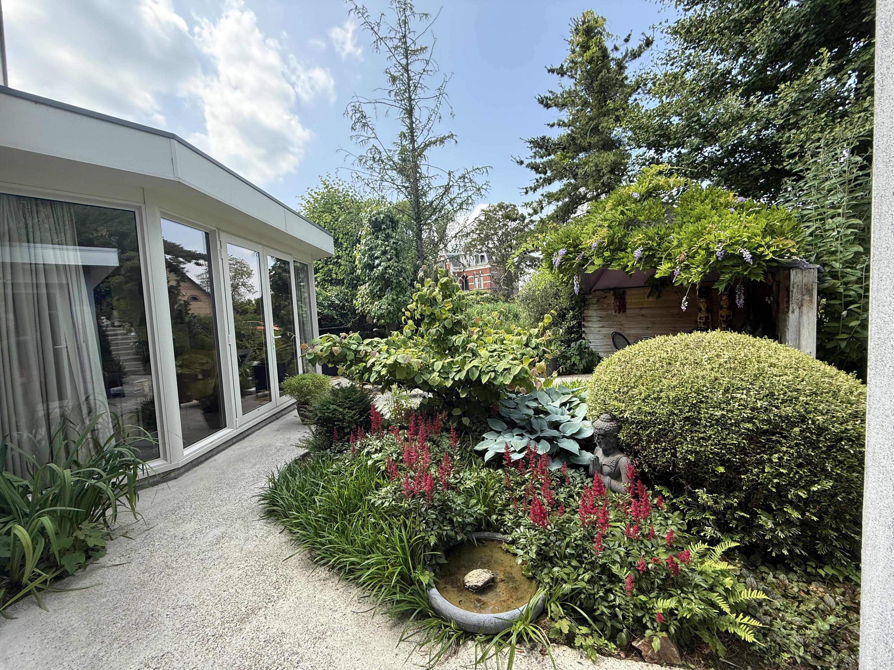 Friliggande villa Dinteloord ligger vid byns lugna, vattenrika utkant och förenar ro med en sällsynt känsla av öppenhet. På en generös tomt om 1 640 m² erbjuder detta unika hem både frid och avskildhet, med fri utsikt över vattnet och omsorgsfullt anlagda japanska trädgårdar. Sökordet ‘friliggande villa Dinteloord’ gestaltar sig i fastighetens diskreta placering, längst in på återvändsgatan, och den sömlösa integrationen mellan inne och ute.
