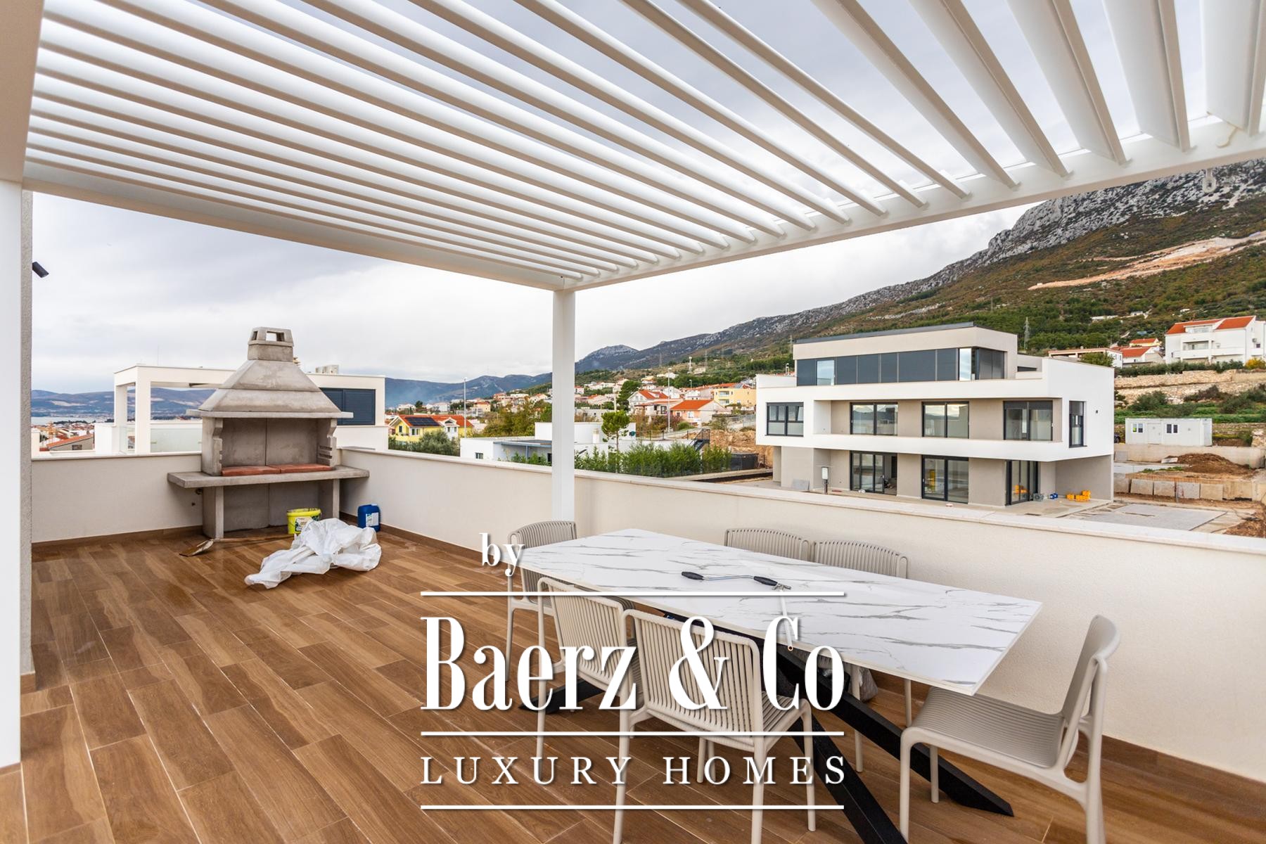 Villa Kaštela är belägen mellan Split och flygplatsen, i ett nyare område med exklusiva bostäder. Denna villa har en boyta på 300 m² på en tomt om 550 m² och erbjuder en avskild men välförankrad tillflykt på Kroatiens kust. Bostaden sträcker sig över tre plan, där entréplanet är utformat för öppet boende med fullt utrustat kök, som sömlöst ansluter till terrassen och trädgården. Praktiska behov möts av en gästtoalett, tvättstuga, förvaring och bastu längst bak. På övre plan har fyra sovrum varsitt privat badrum. Högst upp finns en generös takterrass med jacuzzi, grill och skyddad lounge, optimalt för eftermiddagssol och mjuk bris. Alla rum har golvvärme och individuell luftkonditionering. Läget balanserar den privata tryggheten i ett säkert villaområde med snabb tillgång till stadens kulturliv och internationella resor. Villa Kaštela till salu är en inbjudan till en livsstil formad av ljus, genomtänkt design och bekvämlighet.