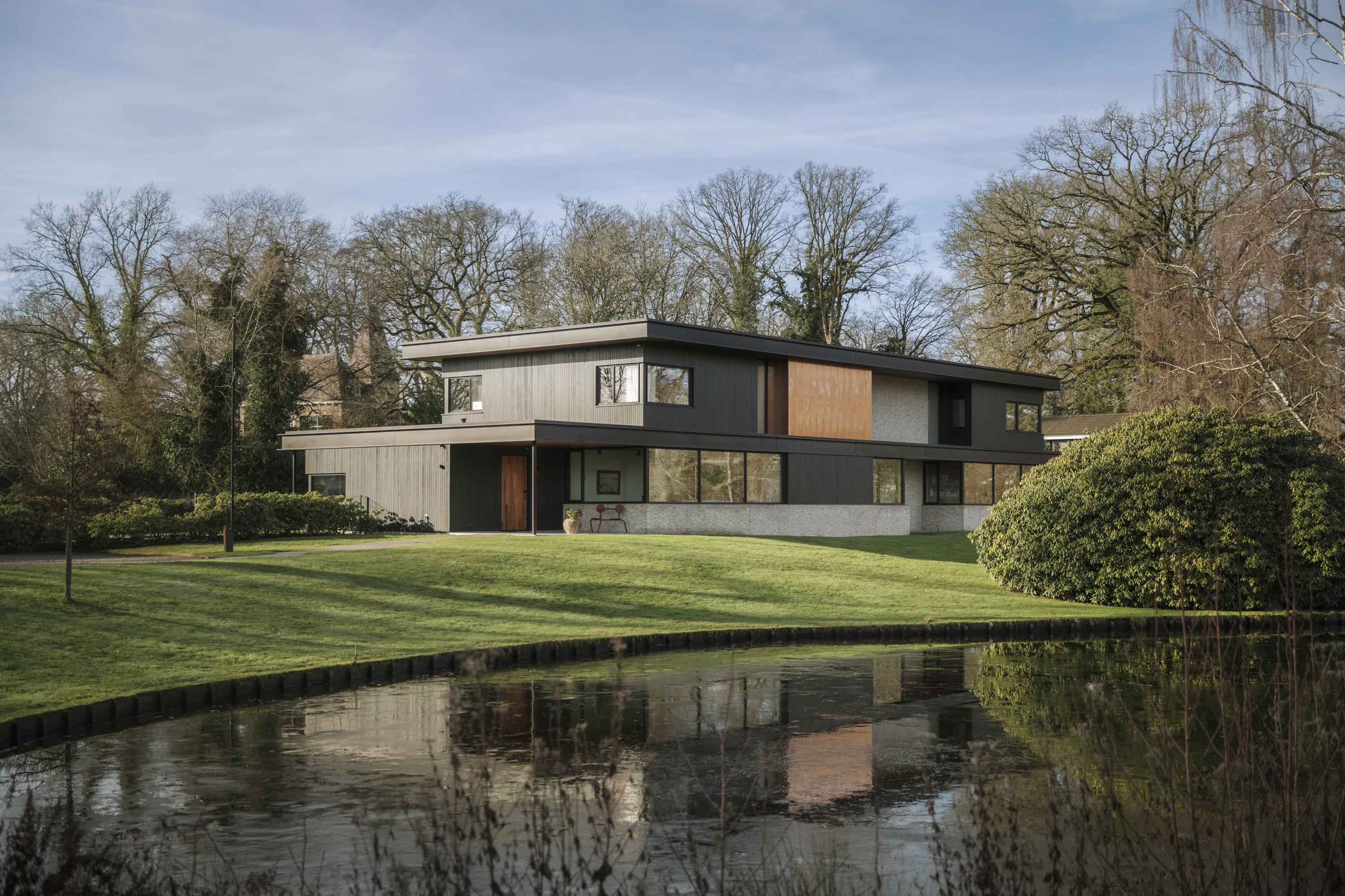 Architect Bart Vos ontwierp de villa als een samenhangend geheel waarin wasserstrich bakstenen (van Petersen), koper, glas en hout (grenen en teak) zowel binnen als buiten consequent zijn toegepast. Met een gebruiksoppervlakte van 547 m² en een inhoud van 2.069 m³ is dit een volumineus huis, maar dankzij de ingetogen vormentaal en de situering op het ruime perceel blijft het geheel in perfecte balans.