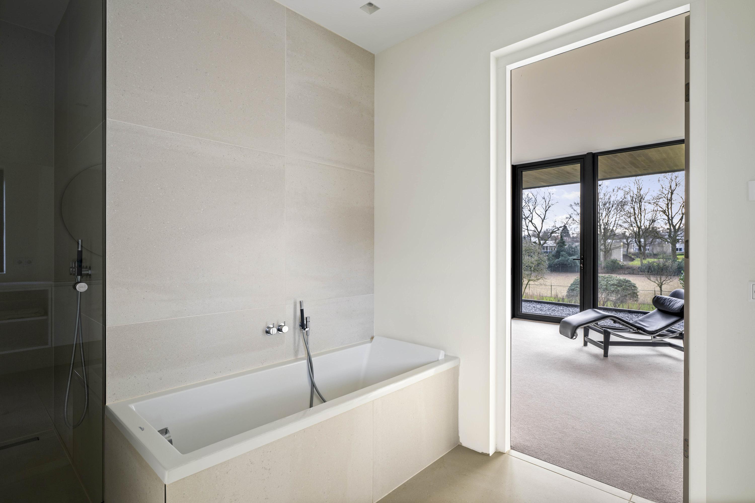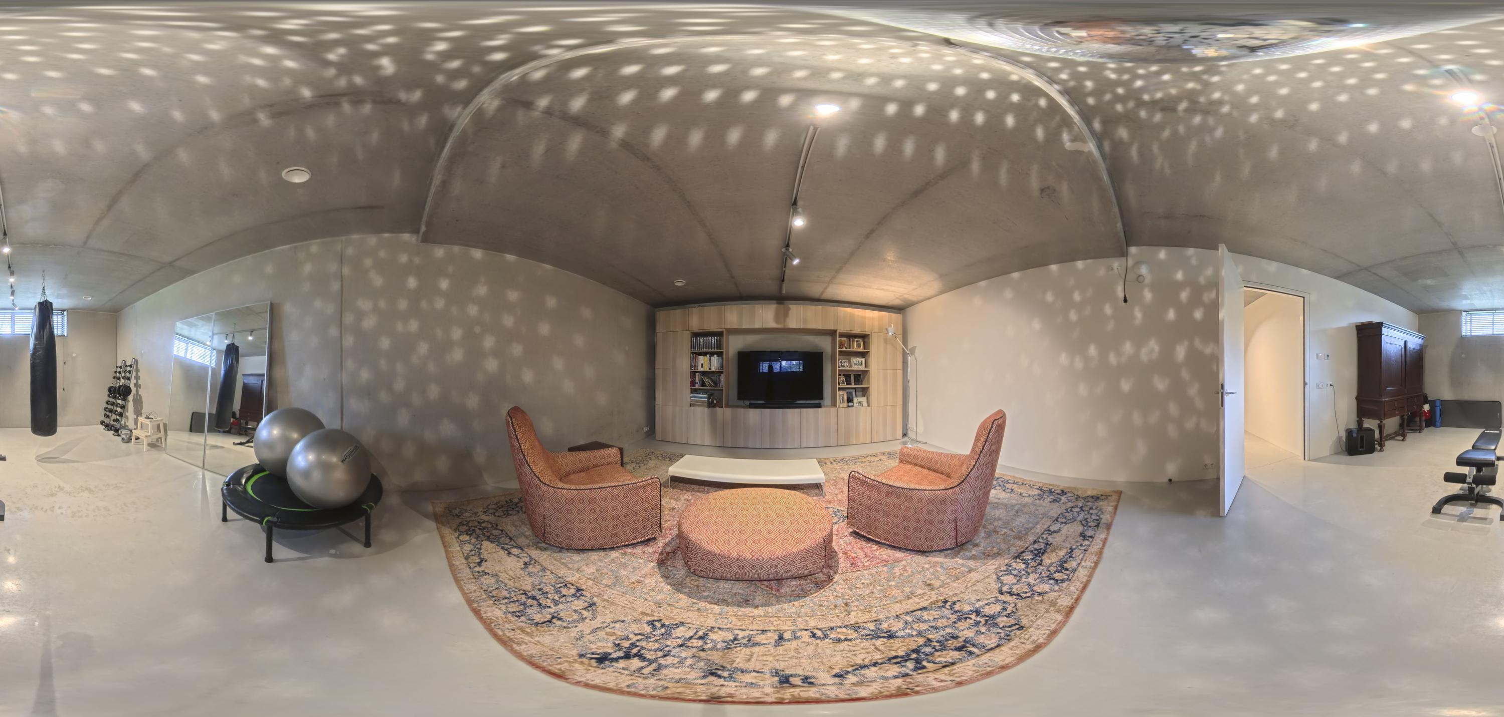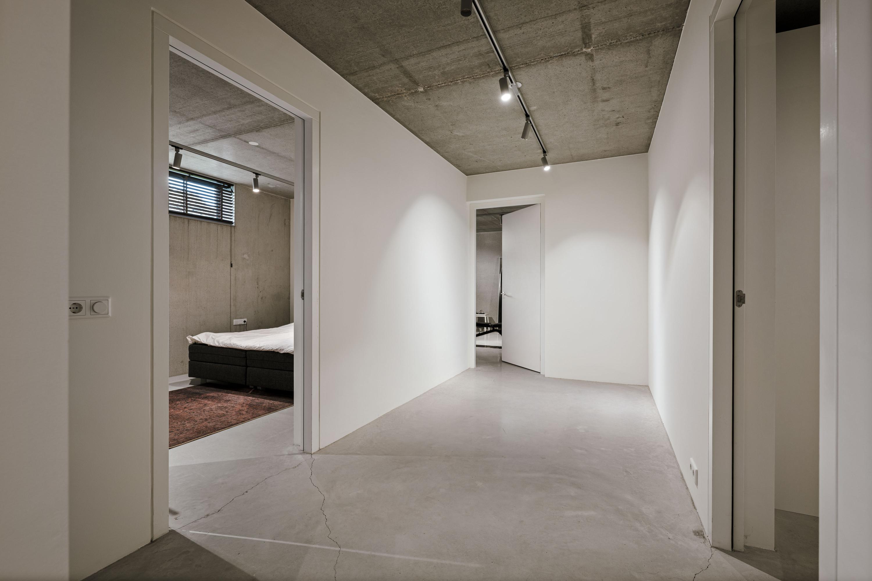 Het souterrain vormt een volwaardig woonniveau met daglichttoetreding aan de voorzijde. De robuuste betonplafonds en -wanden geven deze verdieping een eigen, eigentijds karakter. Hier bevinden zich een ruime atelier-, chill- of fitnessruimte, een extra slaapkamer met badkamer en suite, een grote wasruimte en de technische installaties. De woning is uitgerust met een aardwarmtepomp, 30 zonnepanelen en een buffervat van circa 750 liter. Het energielabel A++ onderstreept het duurzame en toekomstbestendige karakter van de woning.