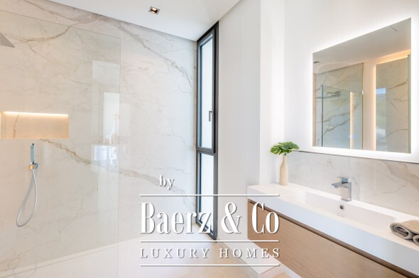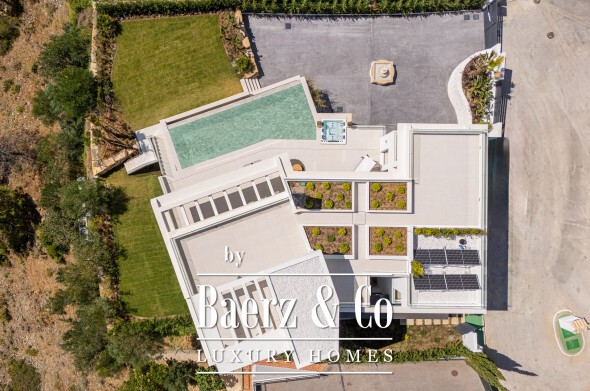 Utelivet är en självklar del här. Två distinkta trädgårdar, en saltvattensinfinitypool och jacuzzi ger smidiga övergångar mellan inomhusets elegans och den frodiga utemiljön. Solterrassen, med inplanterad trädgård, erbjuder 360-graders vyer över hav, golfbana och berg. Med möjlighet till hiss från källare till takterrass är varje våningsplan lättillgängligt och inbjudande.