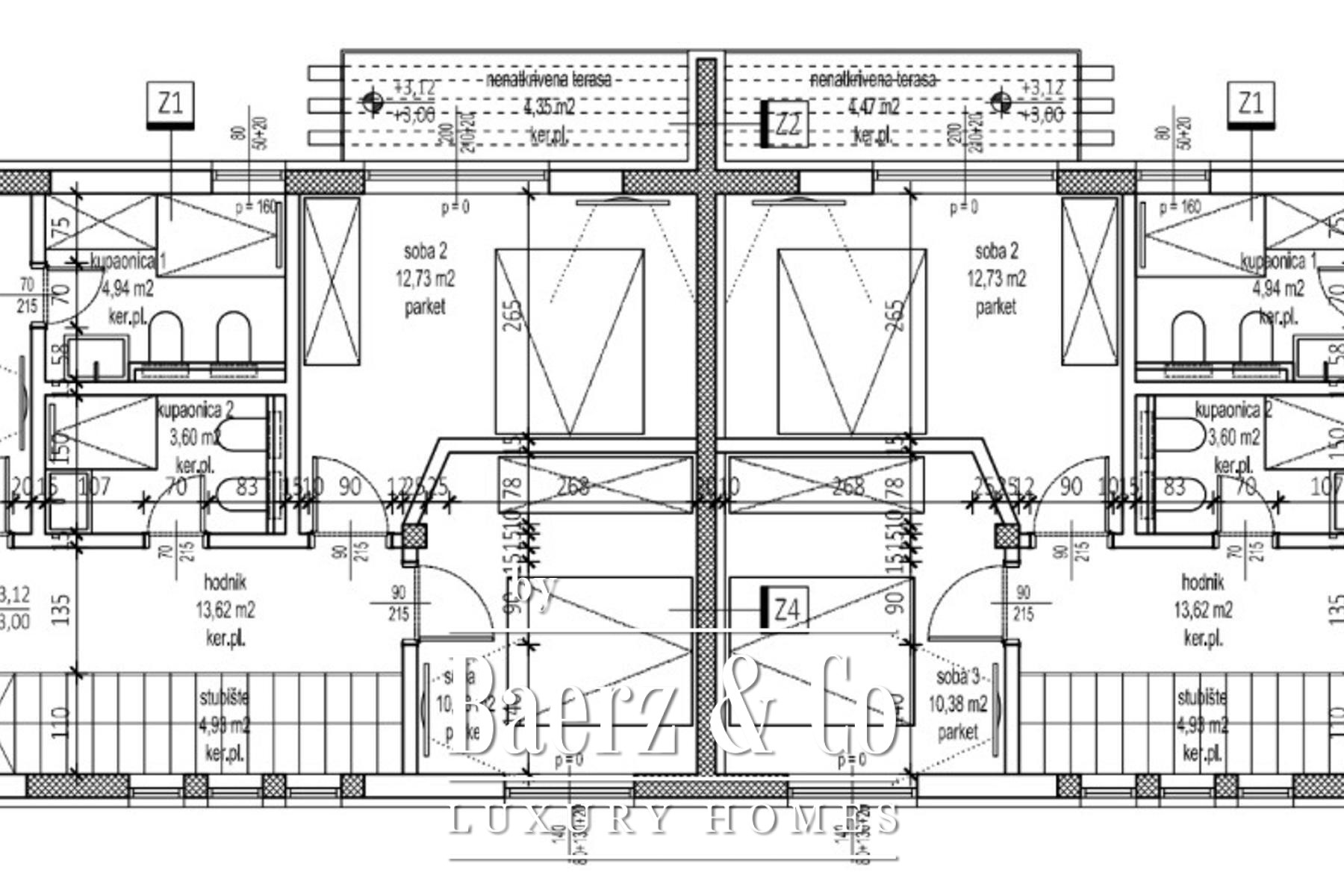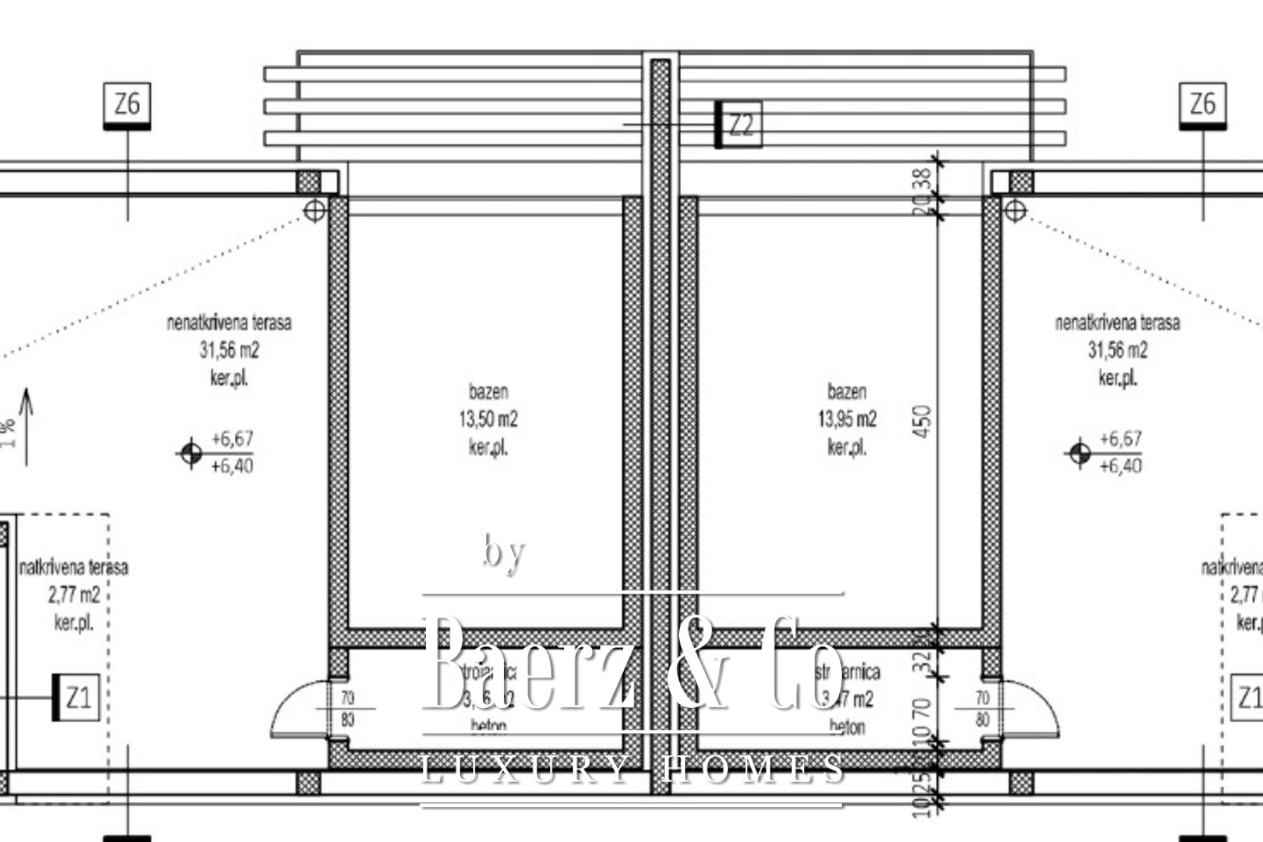 Högst upp avslöjar takterrassen sitt signum: en privat pool inramad av utsikt mot havet och berget Velebit, samt både öppna och täckta uteplatser. Luftkonditionering i samtliga rum, golvvärme i badrummen och noga utvalda material skapar daglig komfort i modern, energieffektiv design.