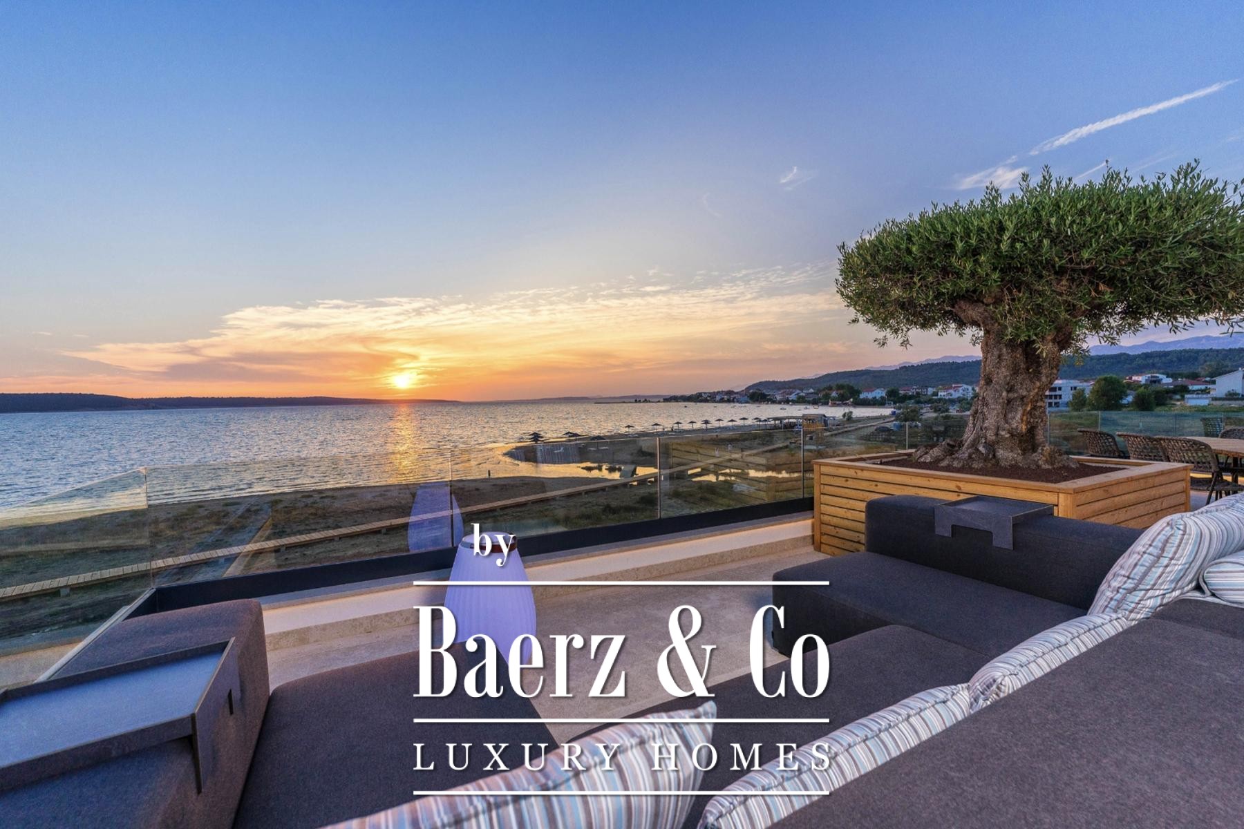 Moderna villa Ražanac är en fastighet på 316 m² belägen direkt vid havet och erbjuder ett avskilt, modernt boende på den kroatiska kusten. Villan stod färdig 2022 och ligger på en tomt om 703 m², omsorgsfullt omgiven av ett medelhavslandskap med olivträd, palmer och lavendel som skapar både avskildhet och ro.