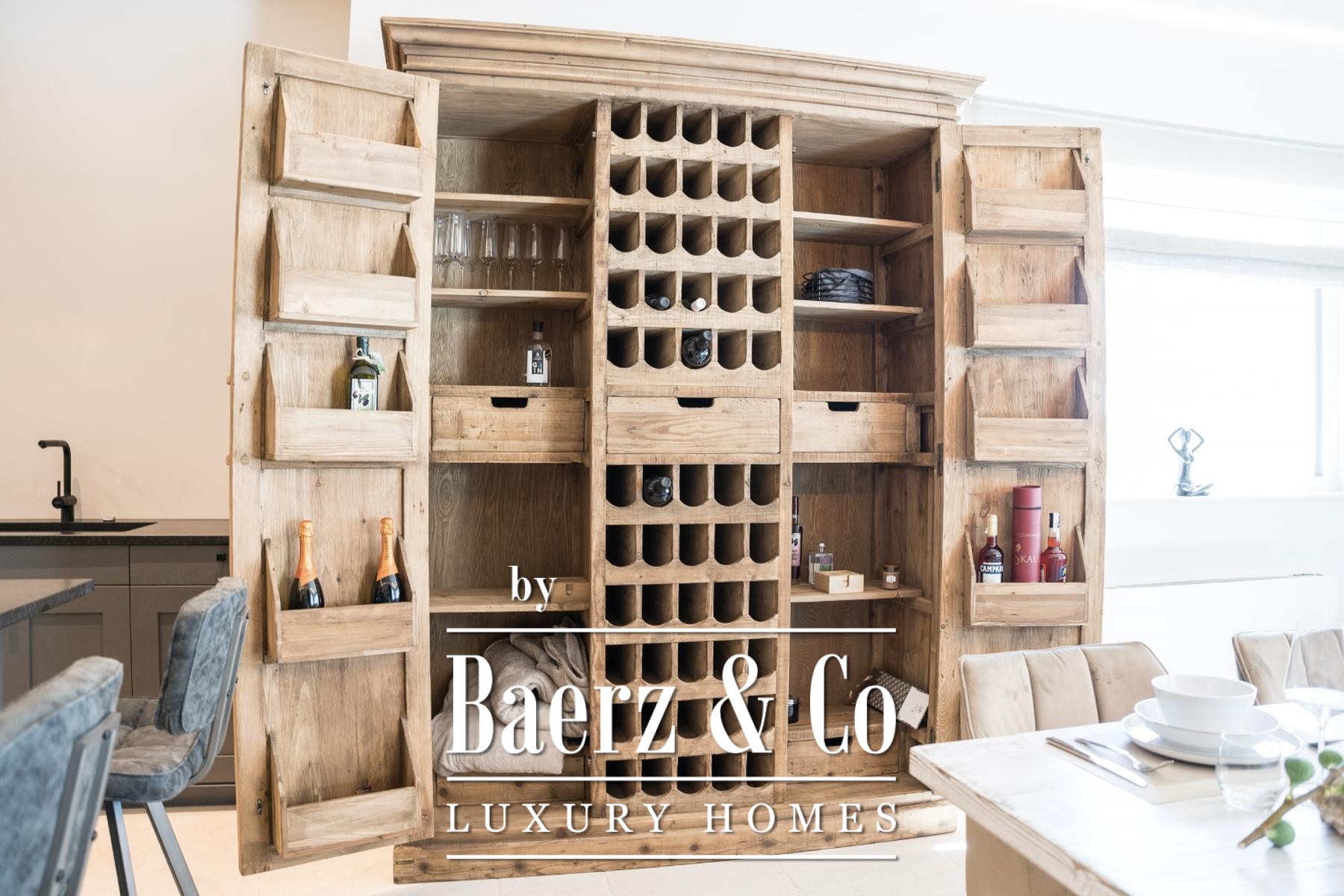 Entréplanet präglas av generösa glaspartier som släpper in naturligt ljus och ramar in panoramautsikten över Adriatiska havet. Vardagsrummet är rymligt och sammanlänkat med matsal och ett fullt utrustat öppet kök. Här finns även ett eget gym med direkt tillgång till terrassen och poolen, vilket möjliggör en mjuk övergång mellan inomhuskomfort och avslappning utomhus.