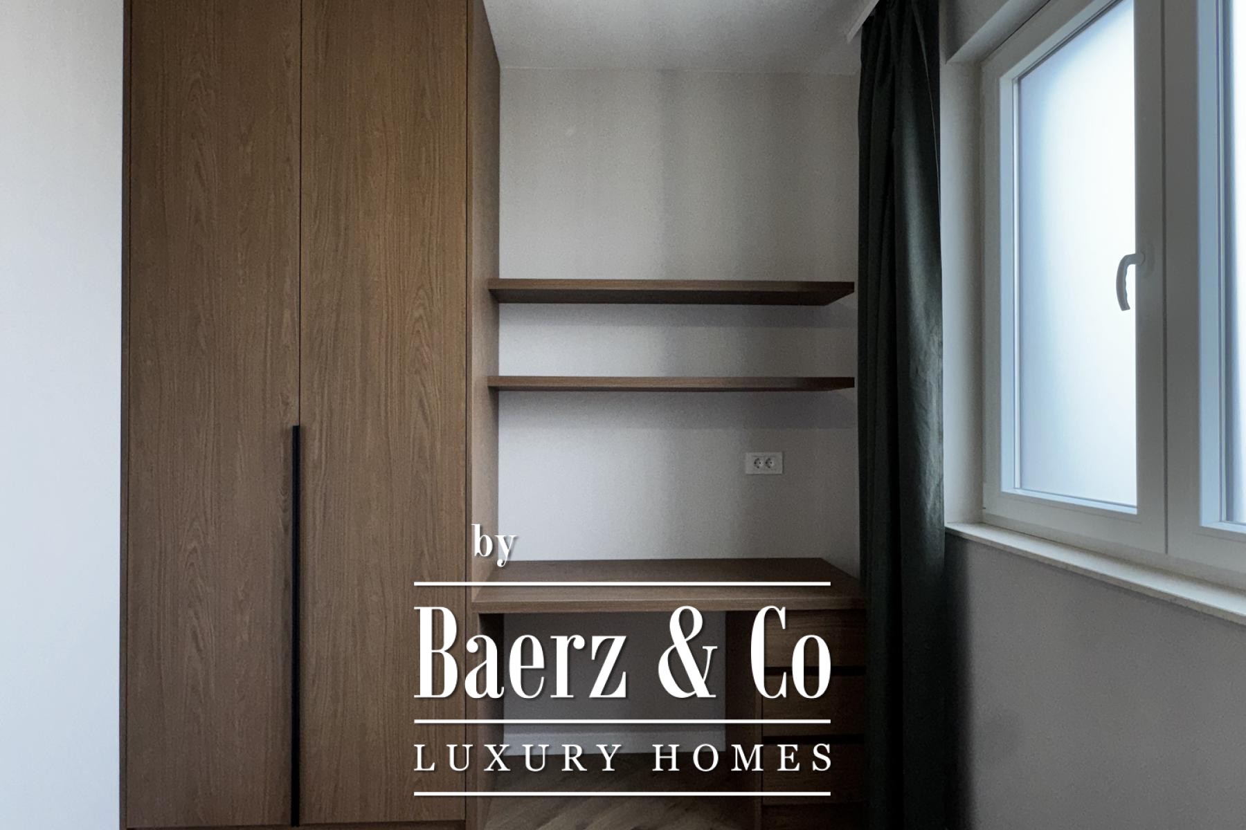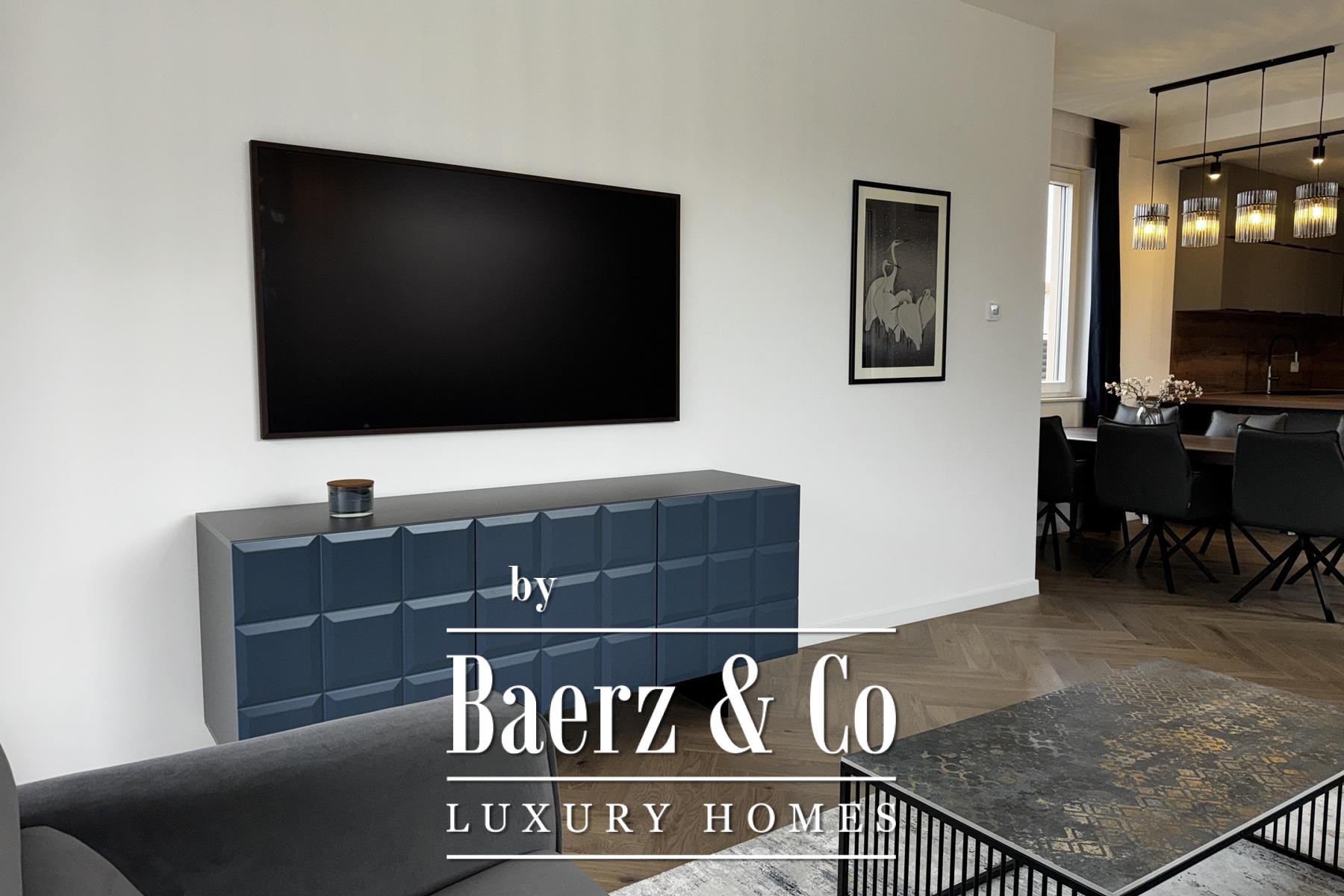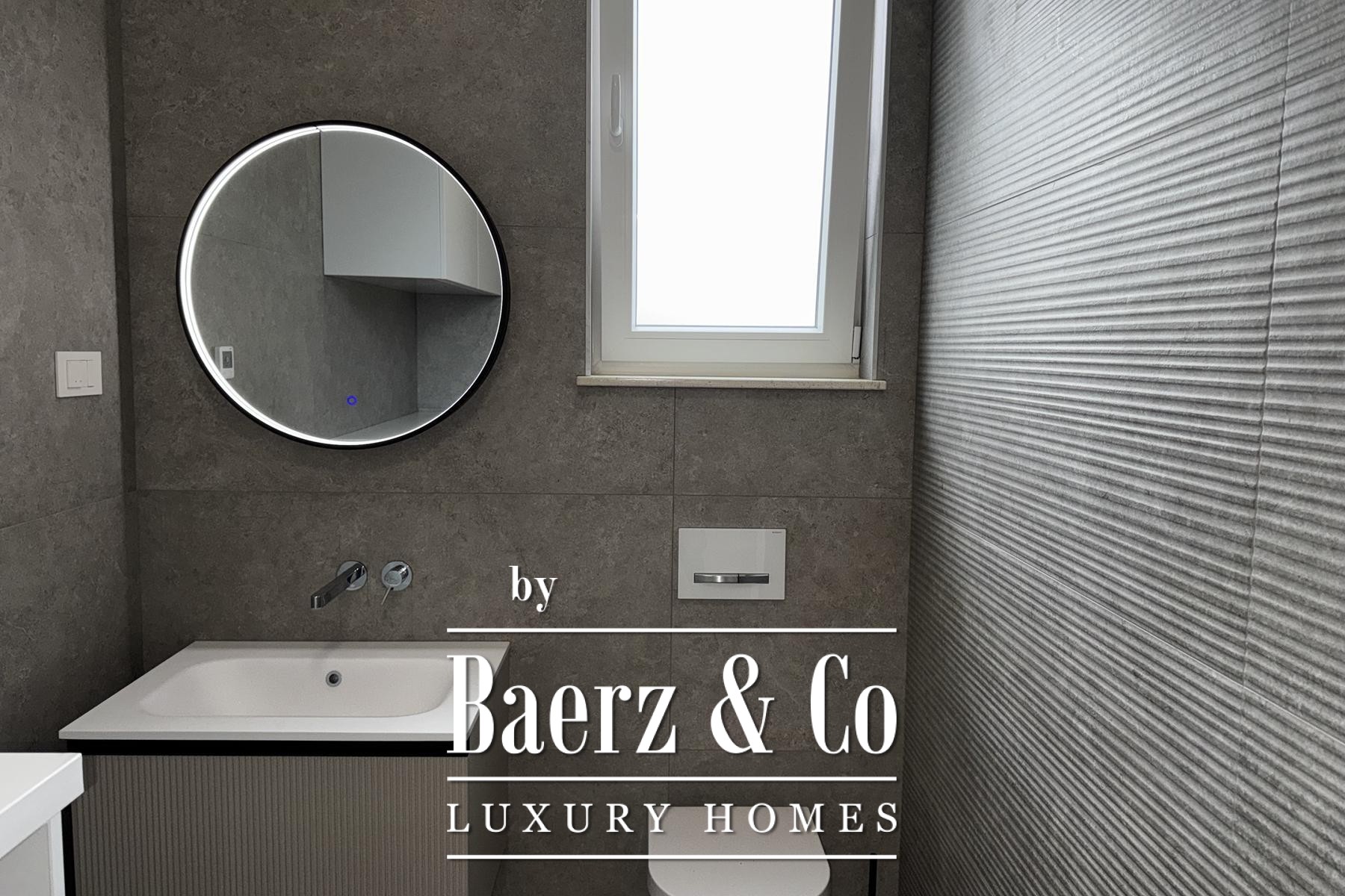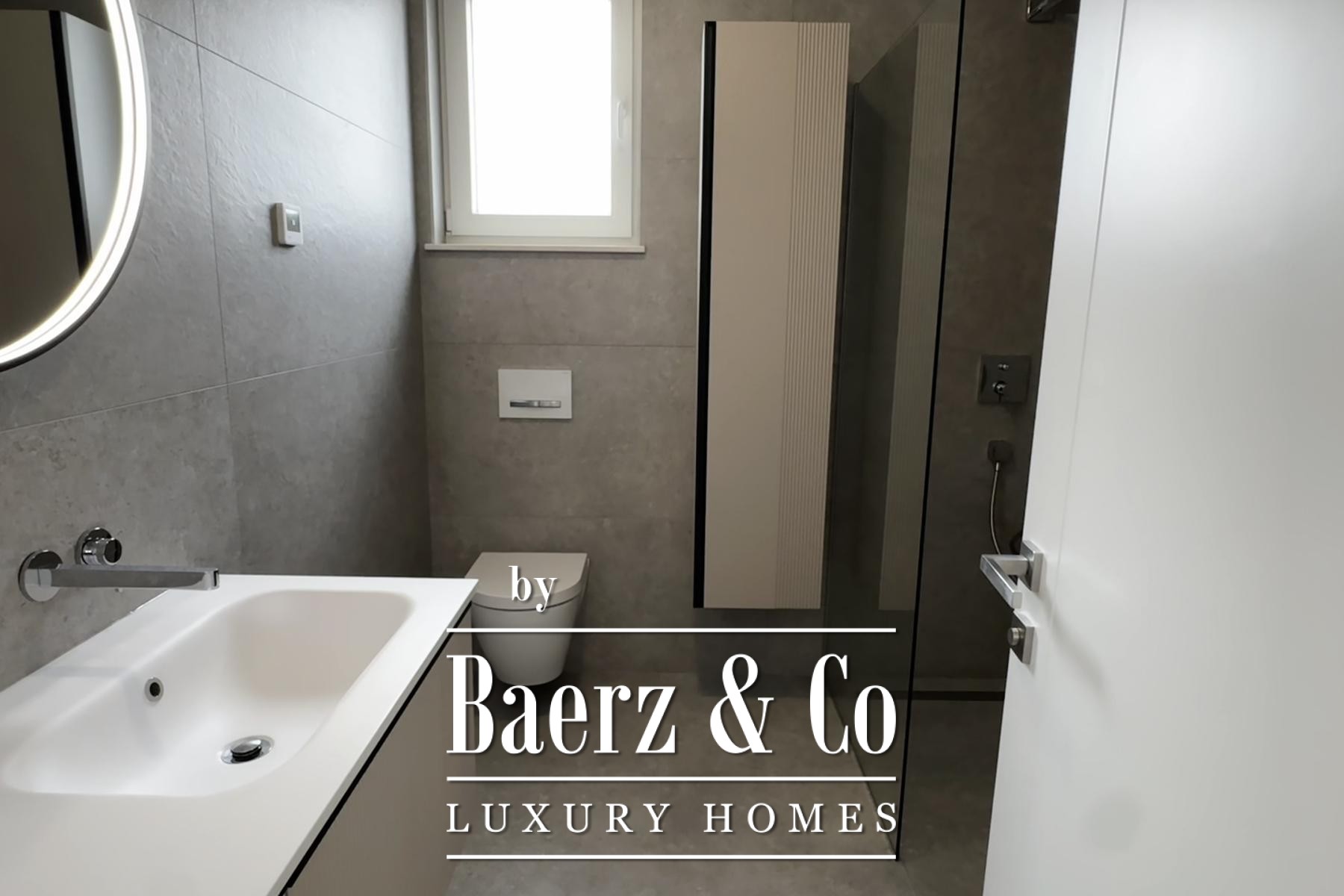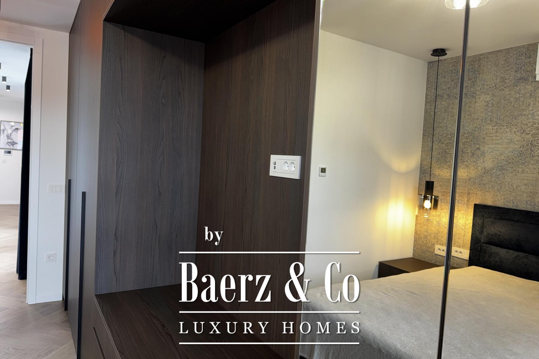 Övre våningen rymmer tre sovrum, däribland en mastersvit med walk-in-closet och en sekundär svit med privat badrum och terrassutgång. Planeringen ger en genomtänkt balans mellan integritet och ljusinsläpp. Materialvalen håller hög klass: trelagersparkett, massiva trappor i trä, dörrar från golv till tak samt kvalitativa ytskikt skapar en atmosfär av diskret elegans.