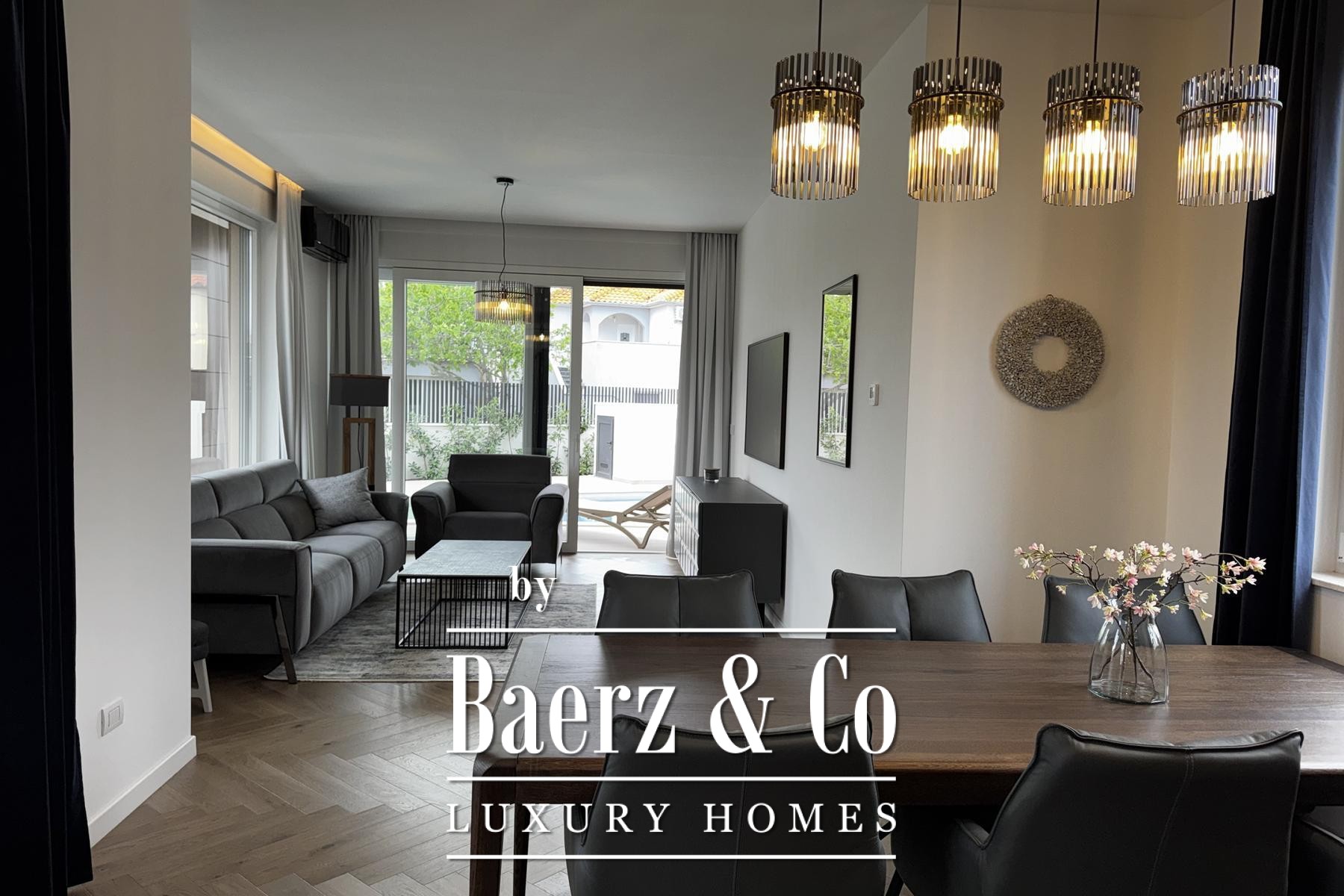 Vitvaror av premiumklass, golvvärme, avancerad poolteknik och smarta styrsystem genom mobilapp bidrar till komfort och modern finess utöver det vanliga. Den anlagda trädgården har automatisk bevattning och säkerheten garanteras av videoövervakning och centralt dammsugarsystem. Ligger i lugnt område, nära service och bekvämligheter — perfekt för privat familjeliv eller som investering.