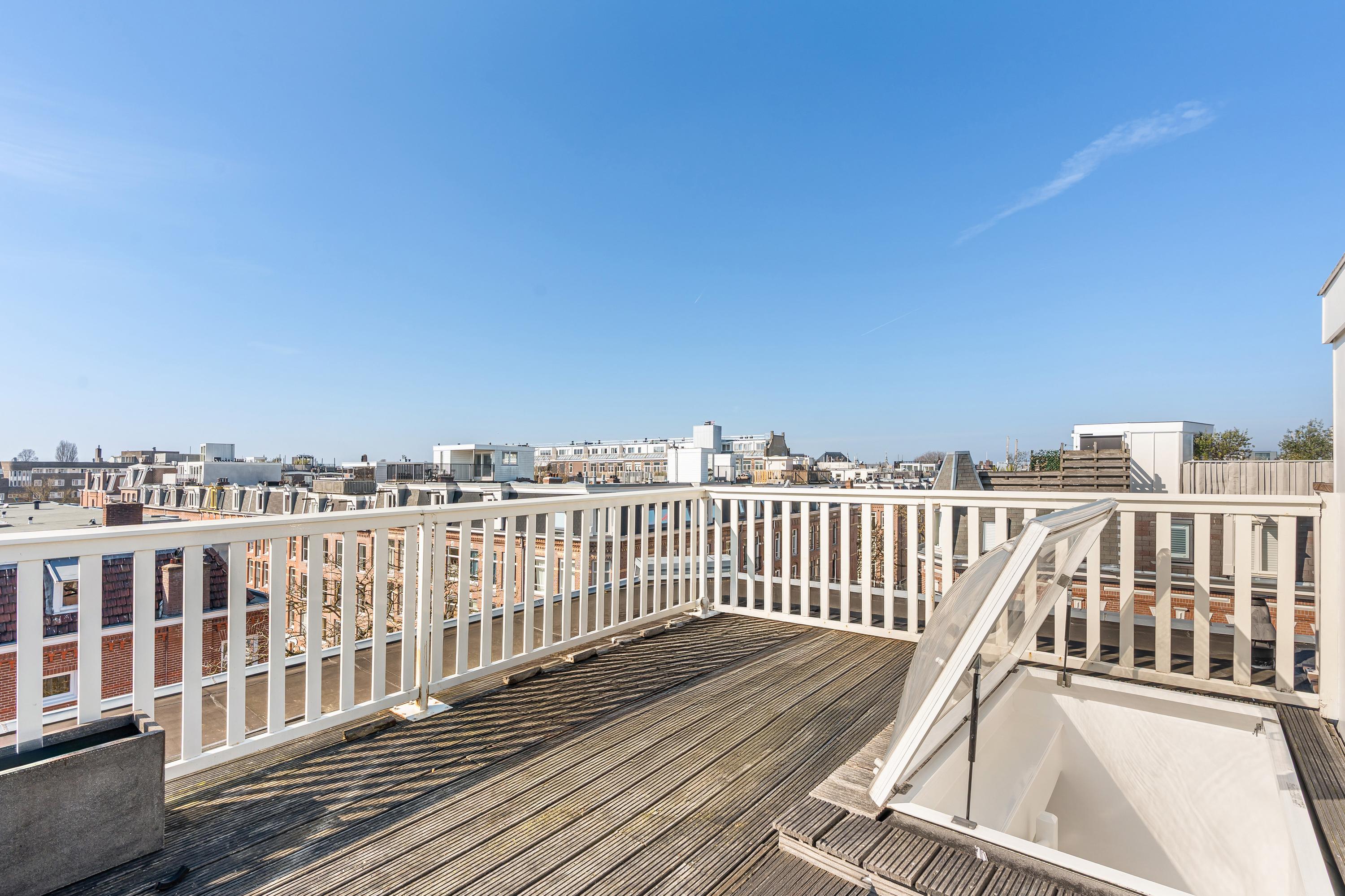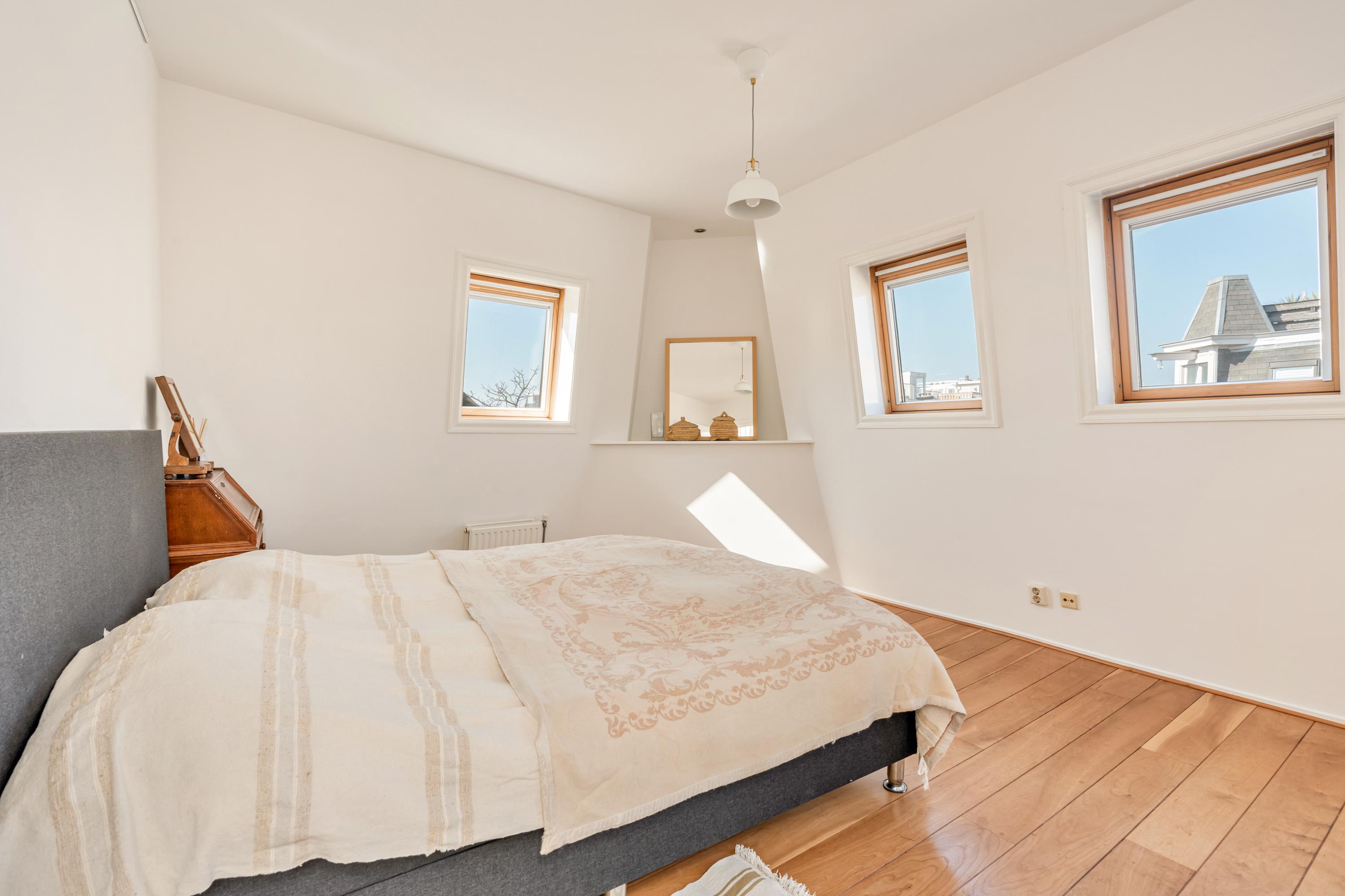 阿姆斯特丹Oud-Zuid区带屋顶露台的公寓,坐落于Balthasar Floriszstraat一处静谧街角,为您呈现约89平方米巧妙布局的高雅居所。该物业分布于三、四层,拥有采光充沛的客厅,大面积双层玻璃窗,现代开放式厨房,配备嵌入式电器及舒适的早餐吧台。法式阳台引入充足自然光,营造静谧雅致的氛围。