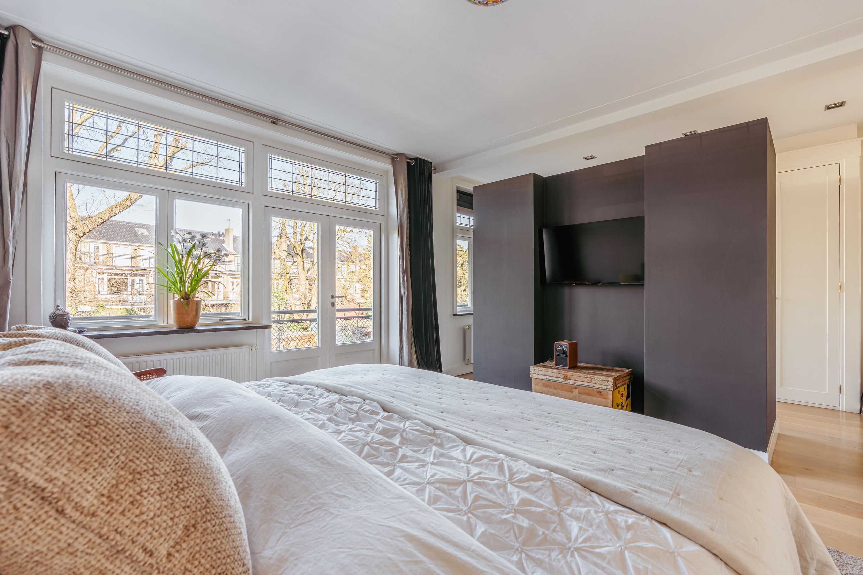 楼上为宽敞卧室,包括带定制衣柜和私密阳台的主卧套房。多间浴室保证舒适与私密。顶层享有充沛的自然采光及令人印象深刻的层高,适宜工作或休憩。高品质精装、天窗“dakraam”增加采光,屋顶隔热“dakisolatie”与双层玻璃等隔热措施提升居住舒适度。
