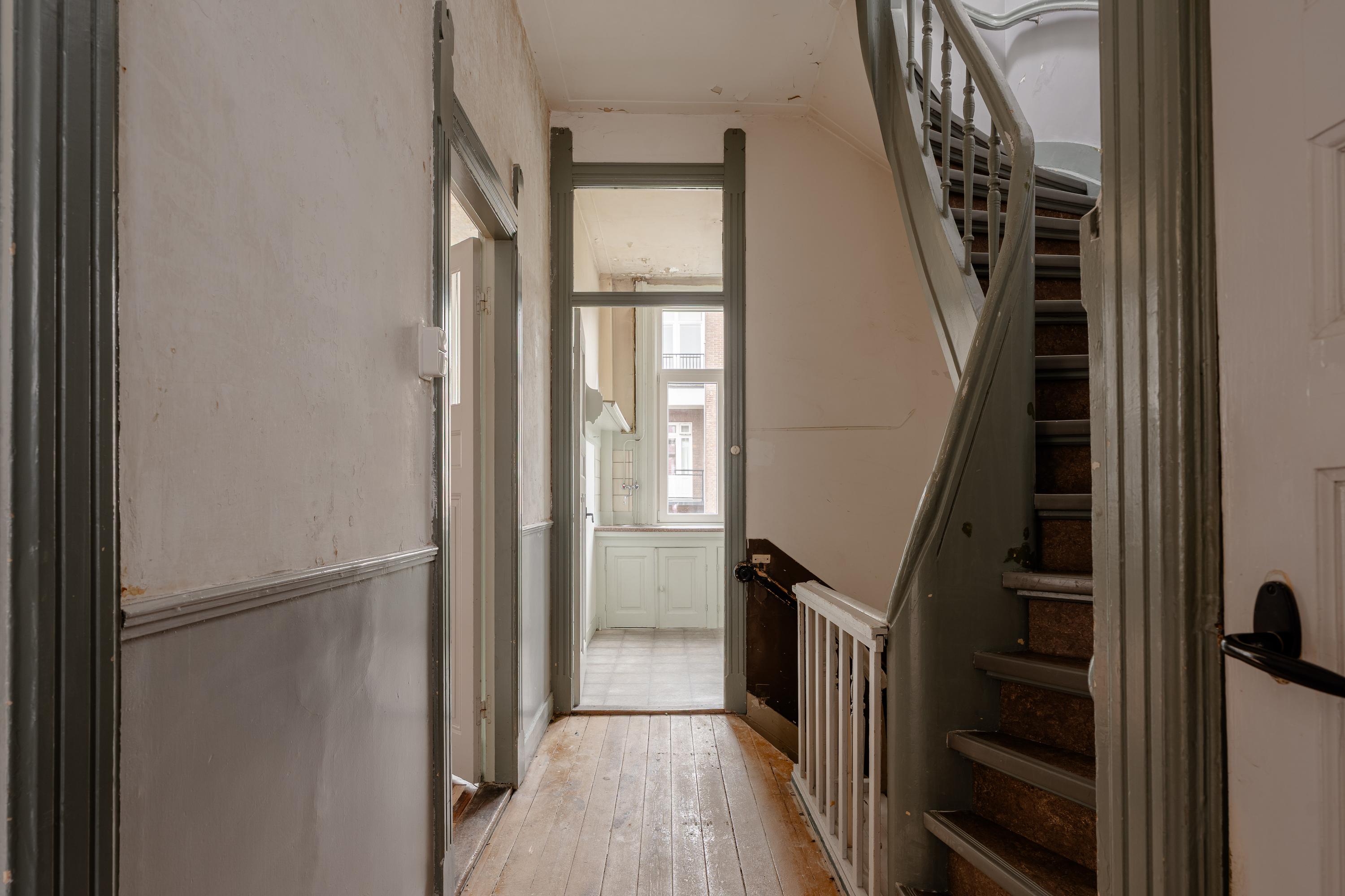 Valeriusstraat街的入口通向专属楼梯,二、三层布局流畅动感。宽敞的起居空间因大窗户和非凡的层高而明亮通透。相邻阳台将室内空间延伸至户外,后侧厨房为后续升级或构想开放式格局预留了丰富可能。该楼层还设有一间卧室,无论是作为客房还是私人书房都极为适宜。