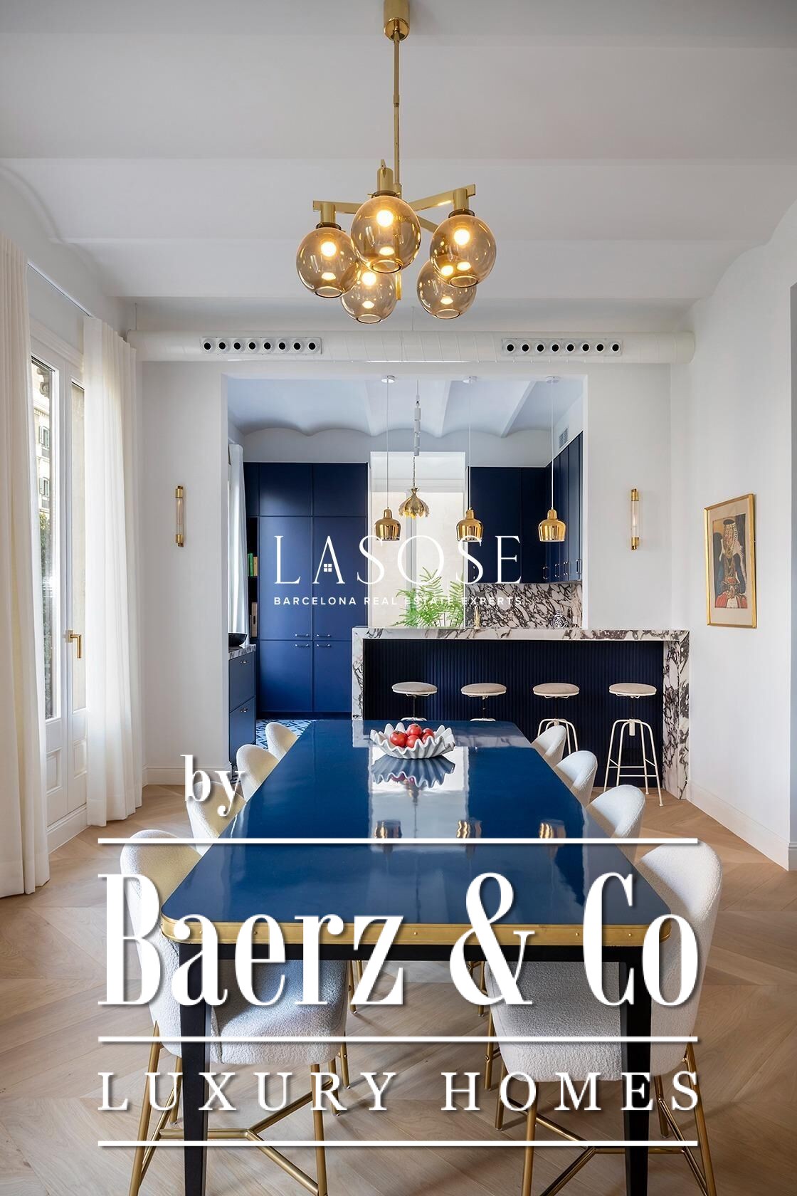 Apartment Barcelona公寓是对精致都市生活的邀约。这套199平方米的住宅位于三楼,近期经过全新翻修,设计细致,充分引入自然光线。四扇阳台门面向Calle Girona,开阔的落地窗让空间更加通透明亮。布局从开放式厨房与餐区顺畅延伸至客厅,客厅设有定制酒吧和储藏室,内配两台酒柜与第二台洗碗机。