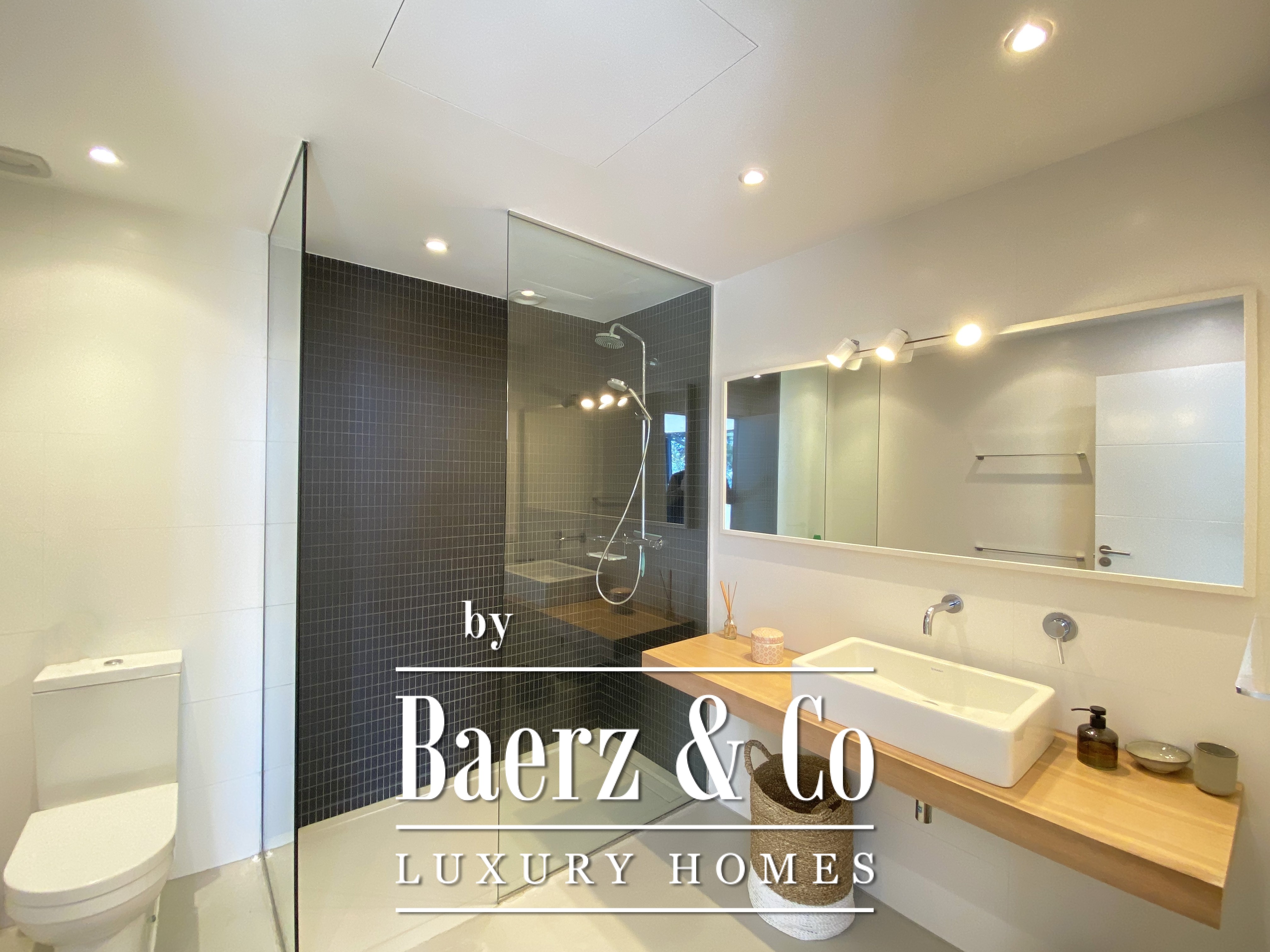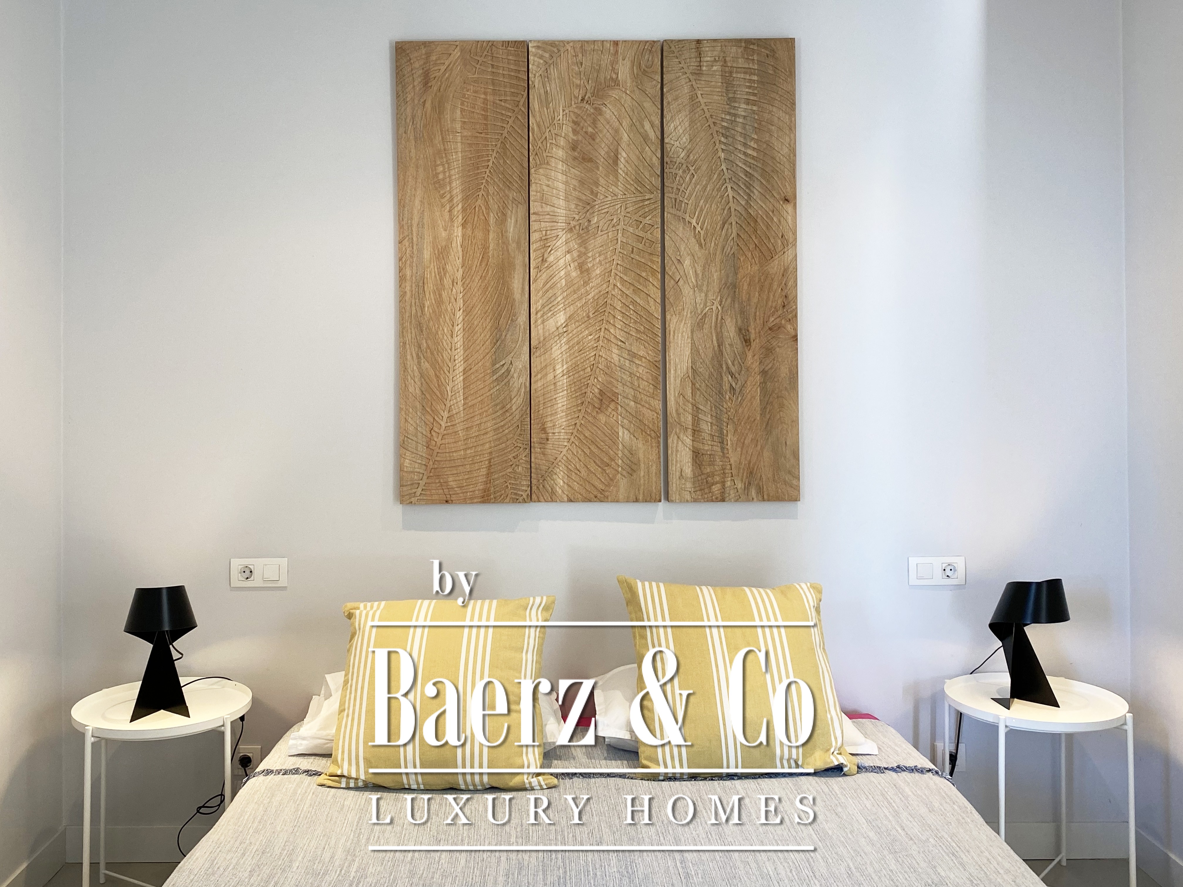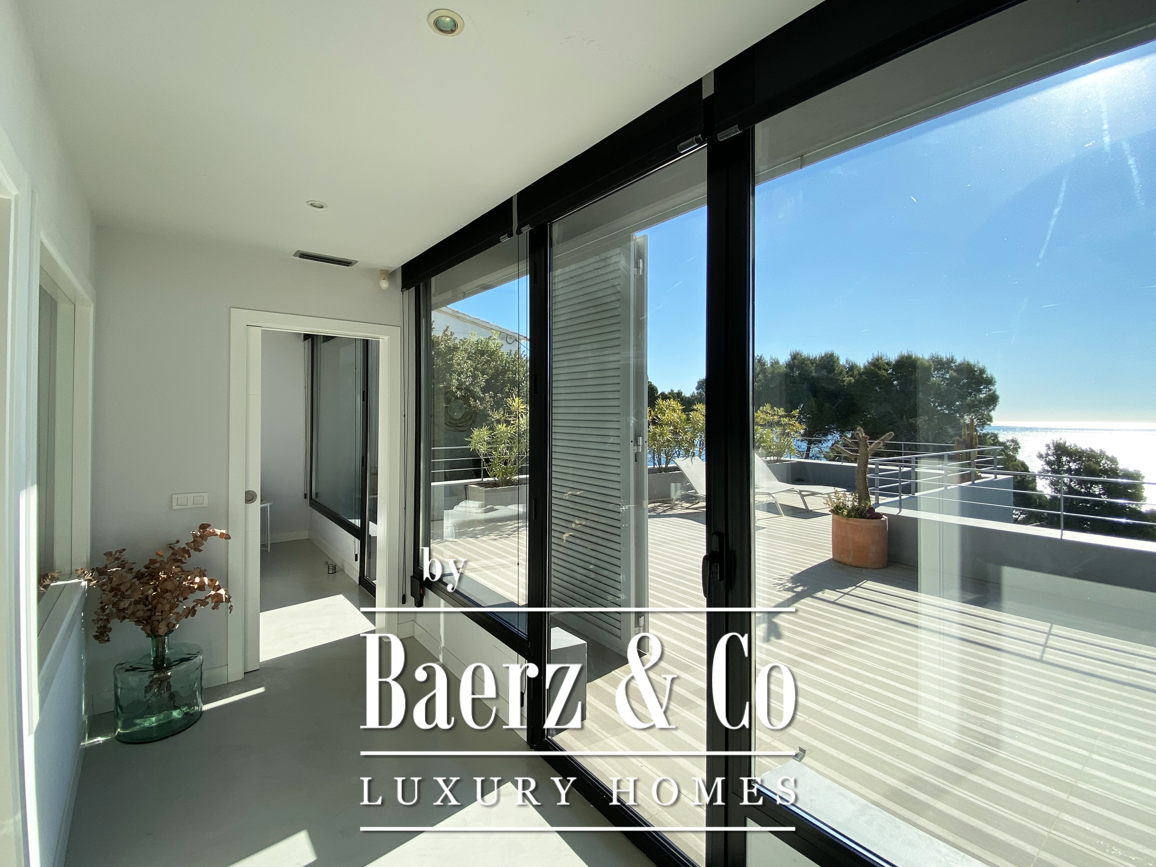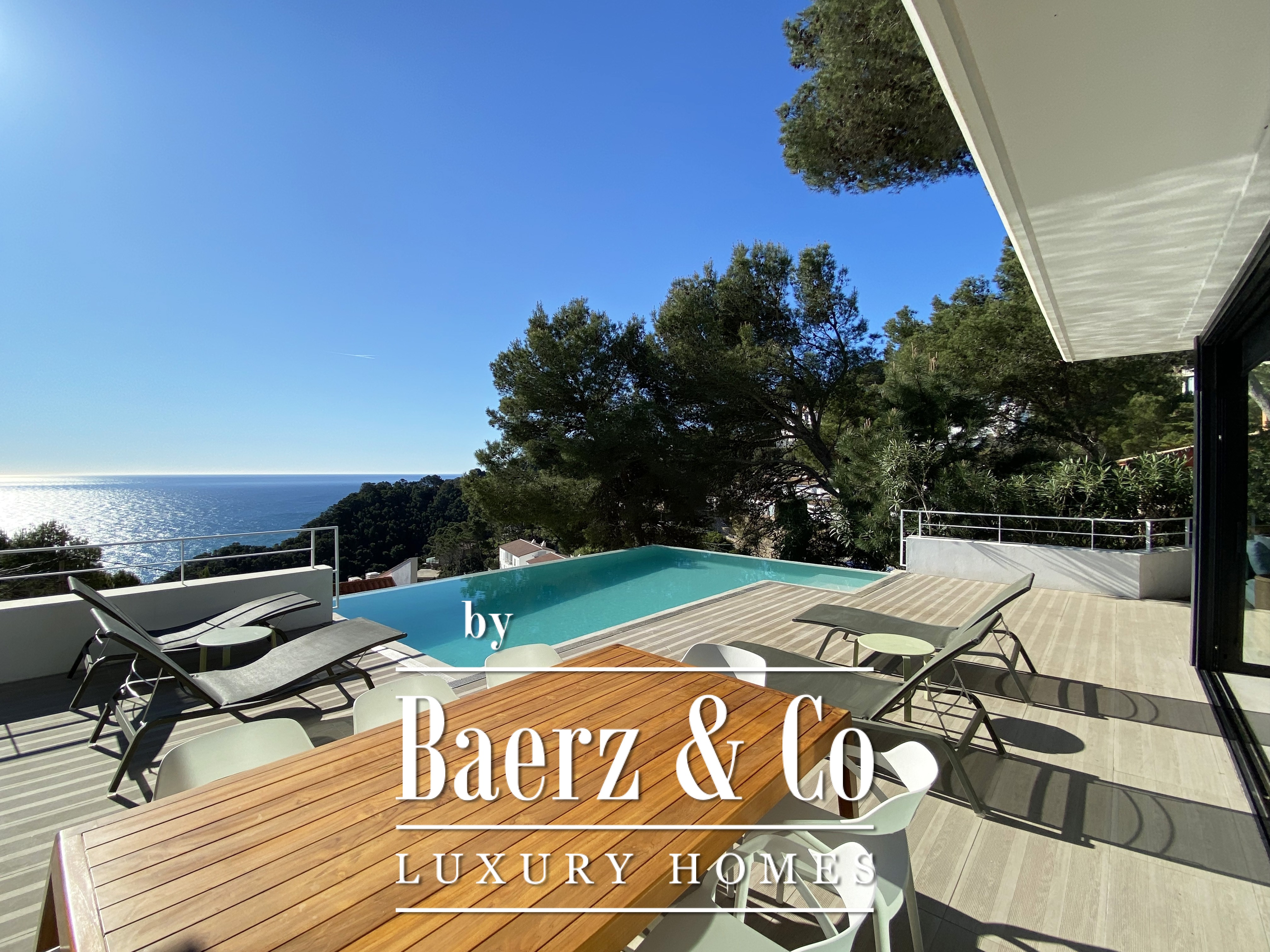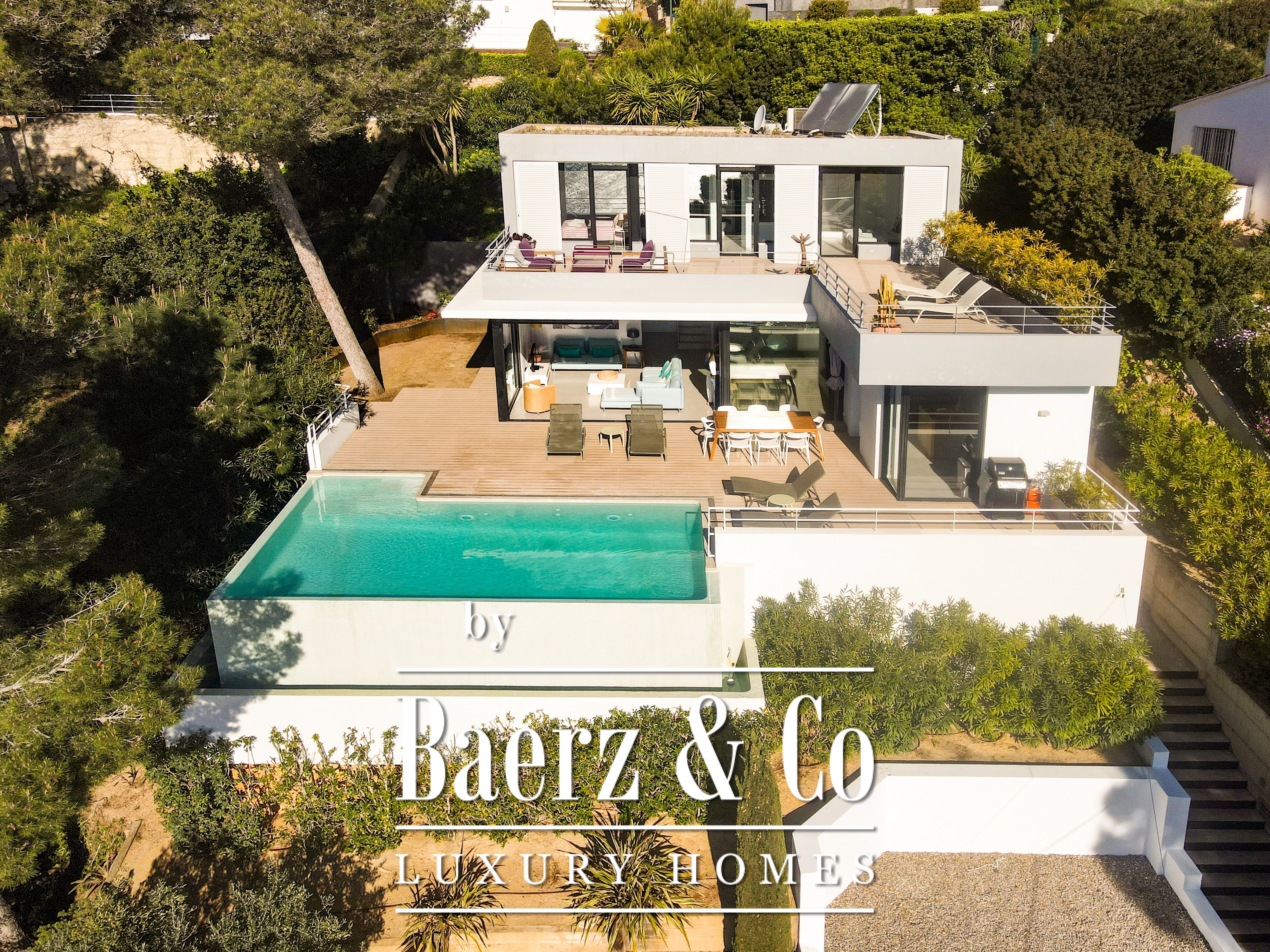 下层布局包括两间双人卧室与一间浴室,每一空间均注重舒适与和谐。楼上还有两间双人卧室共用一间浴室,并均通向 50 m² 露台,享有无敌海景。