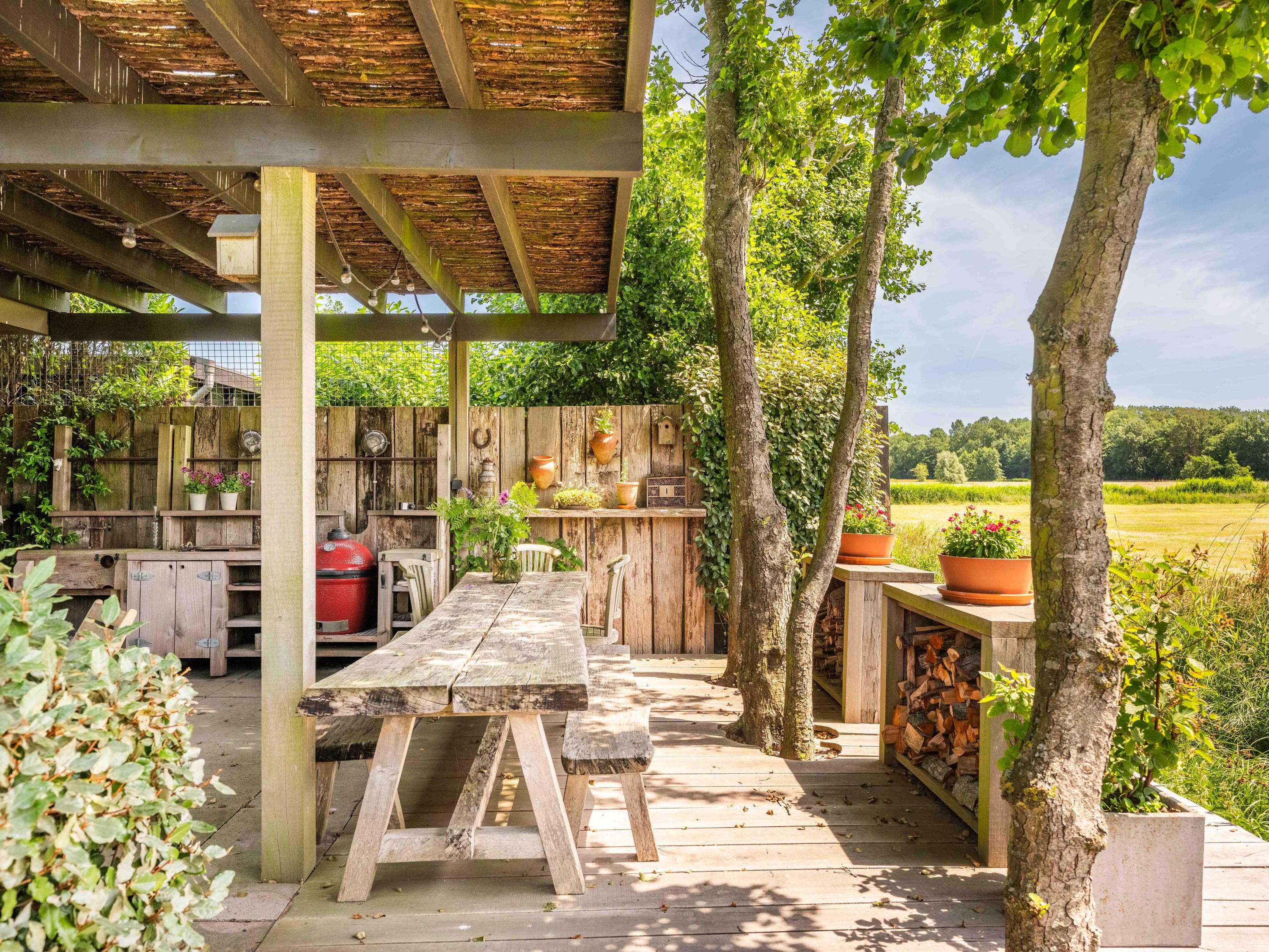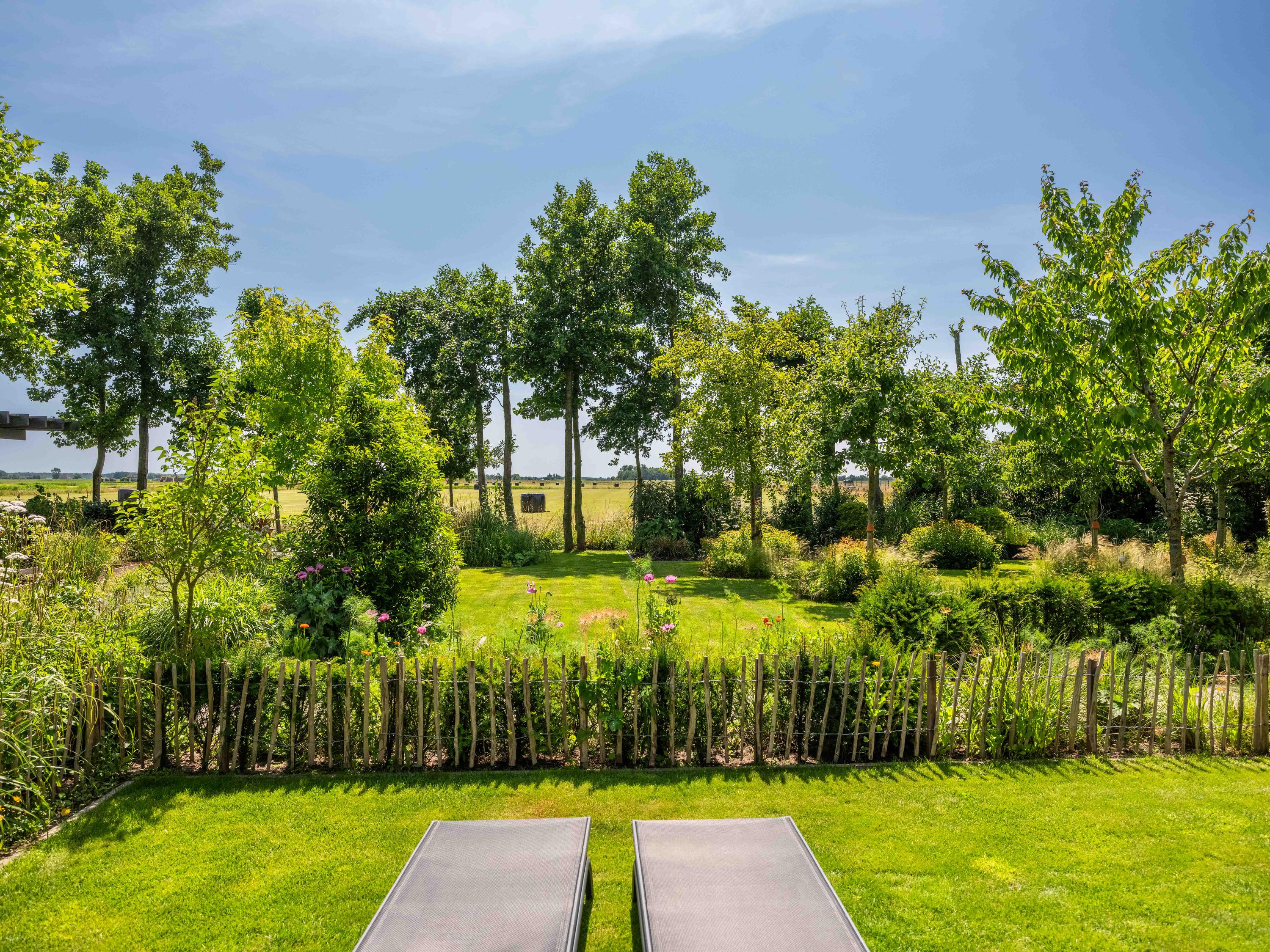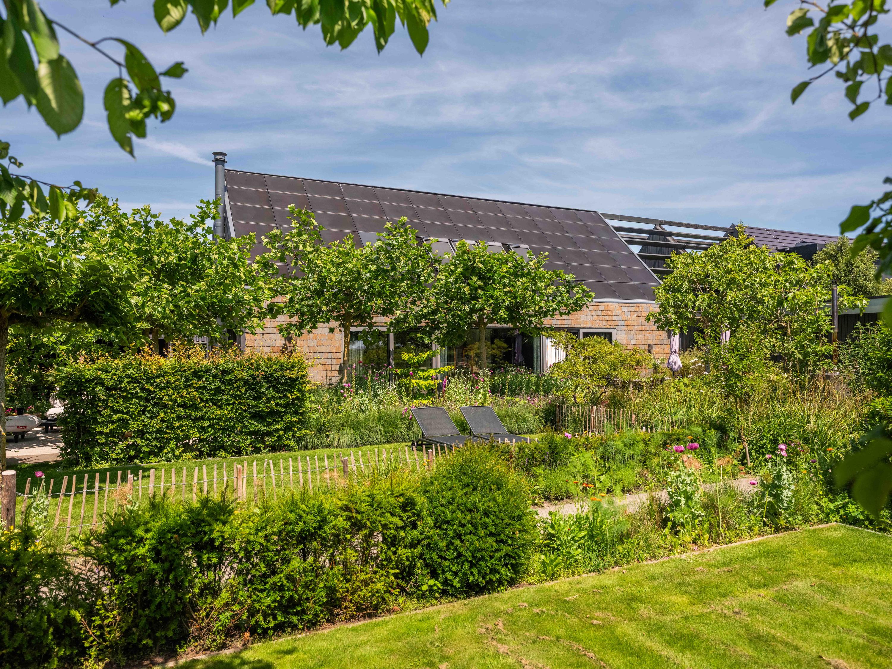 精心规划的庭园设有多个休息或启发灵感的空间,如温室、厨房花园、鸡舍和宽阔露台,专为户外生活而设计。从这里望去,地平线绿意无尽,予人宁静与沉思之美。