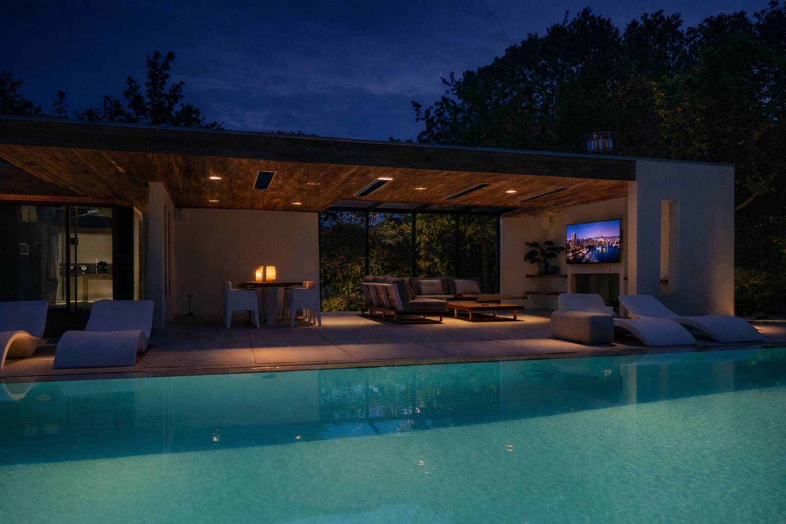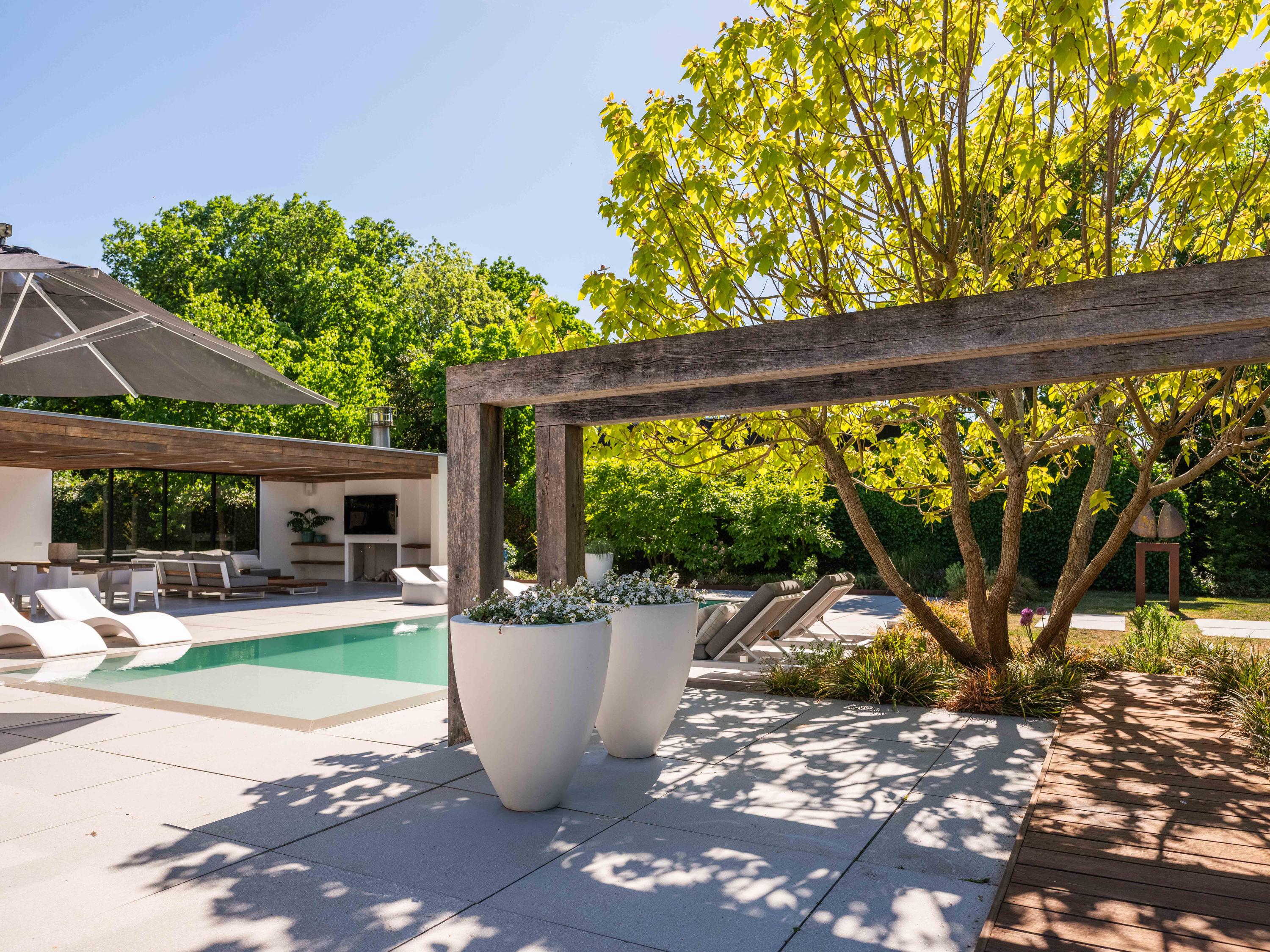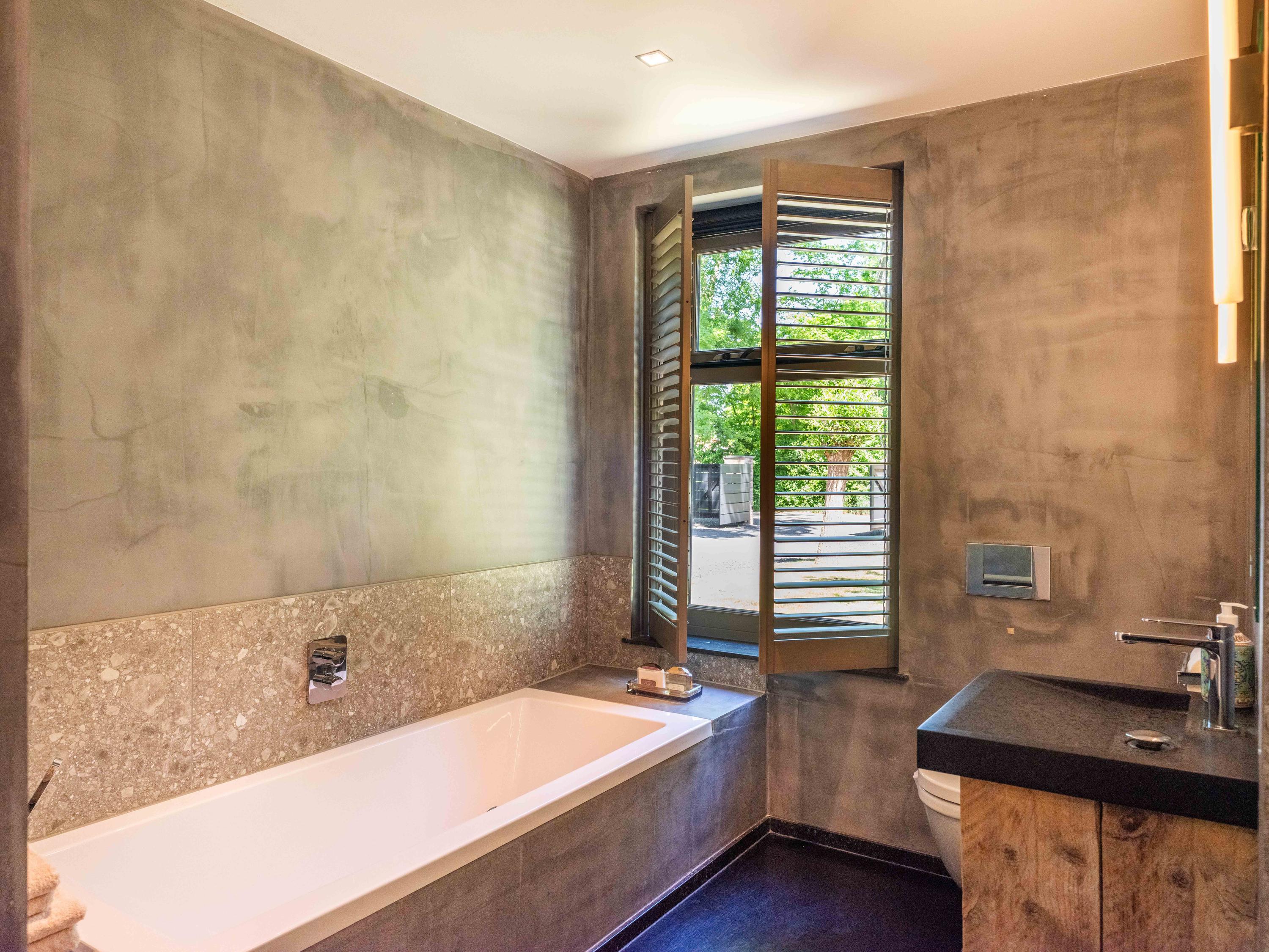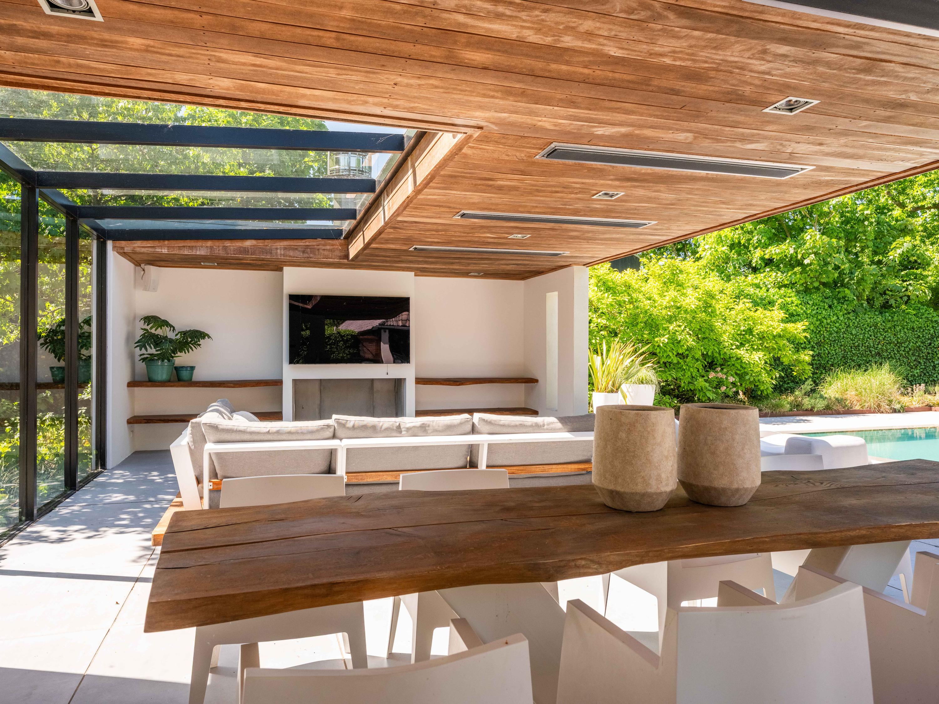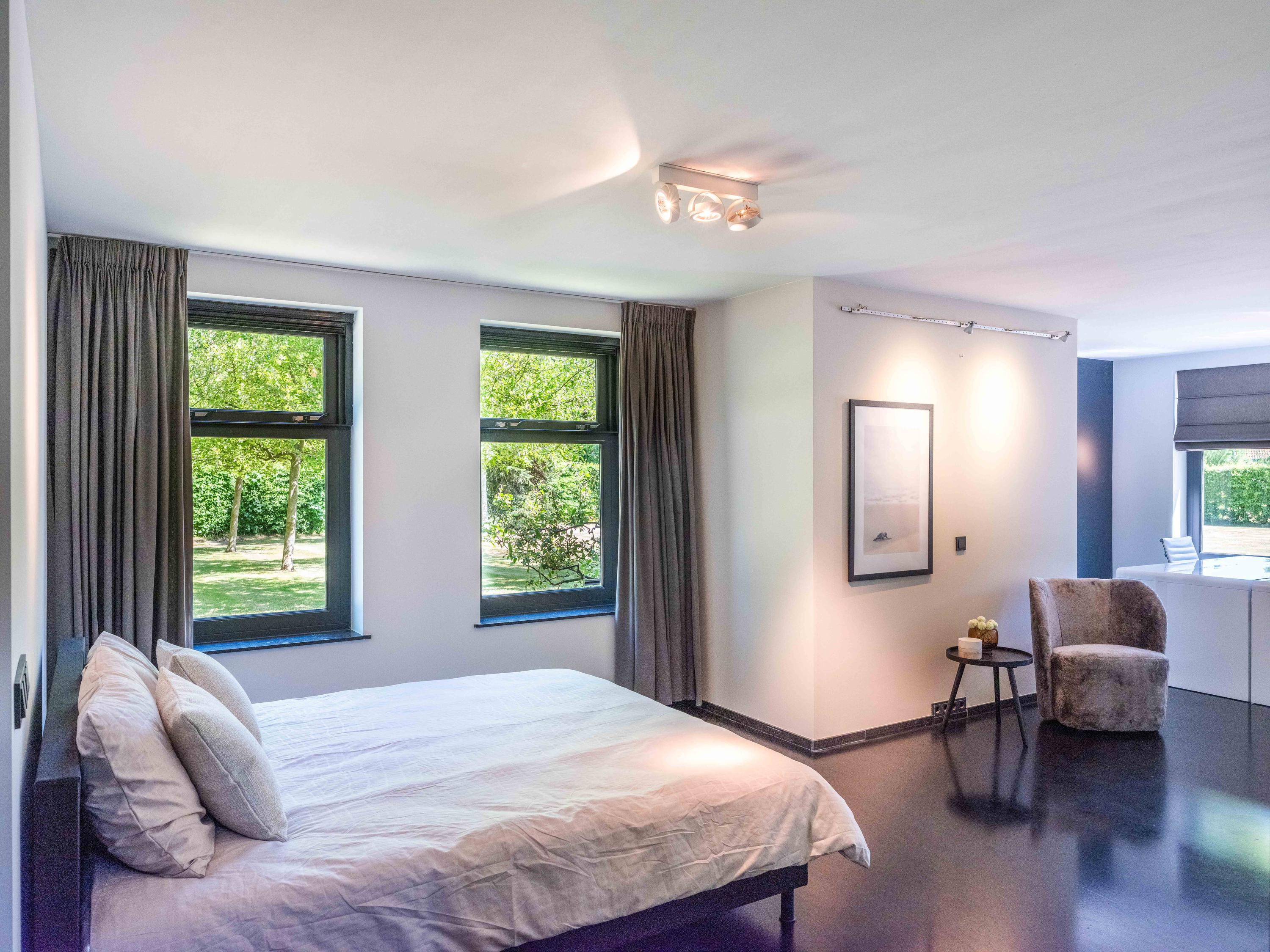 主套房拥有步入式衣帽间和开放式浴室,可饱览泳池景致,进一步提升宁静感。阁楼上方还具备额外办公或静谧空间的潜力。全宅配有地暖、热泵以及A级能效隔热(屋顶、墙体、地面与高效玻璃),确保全年舒适宜居。