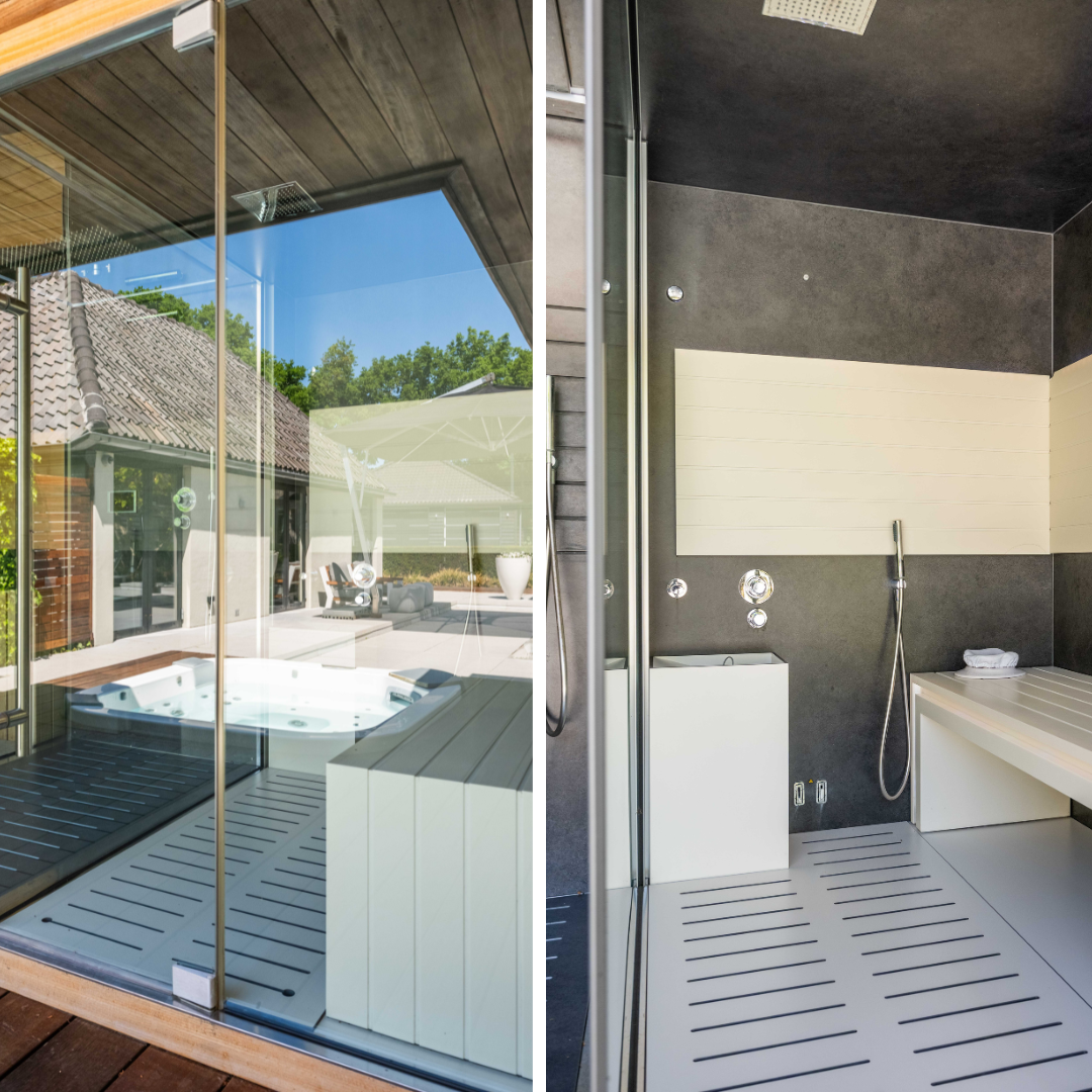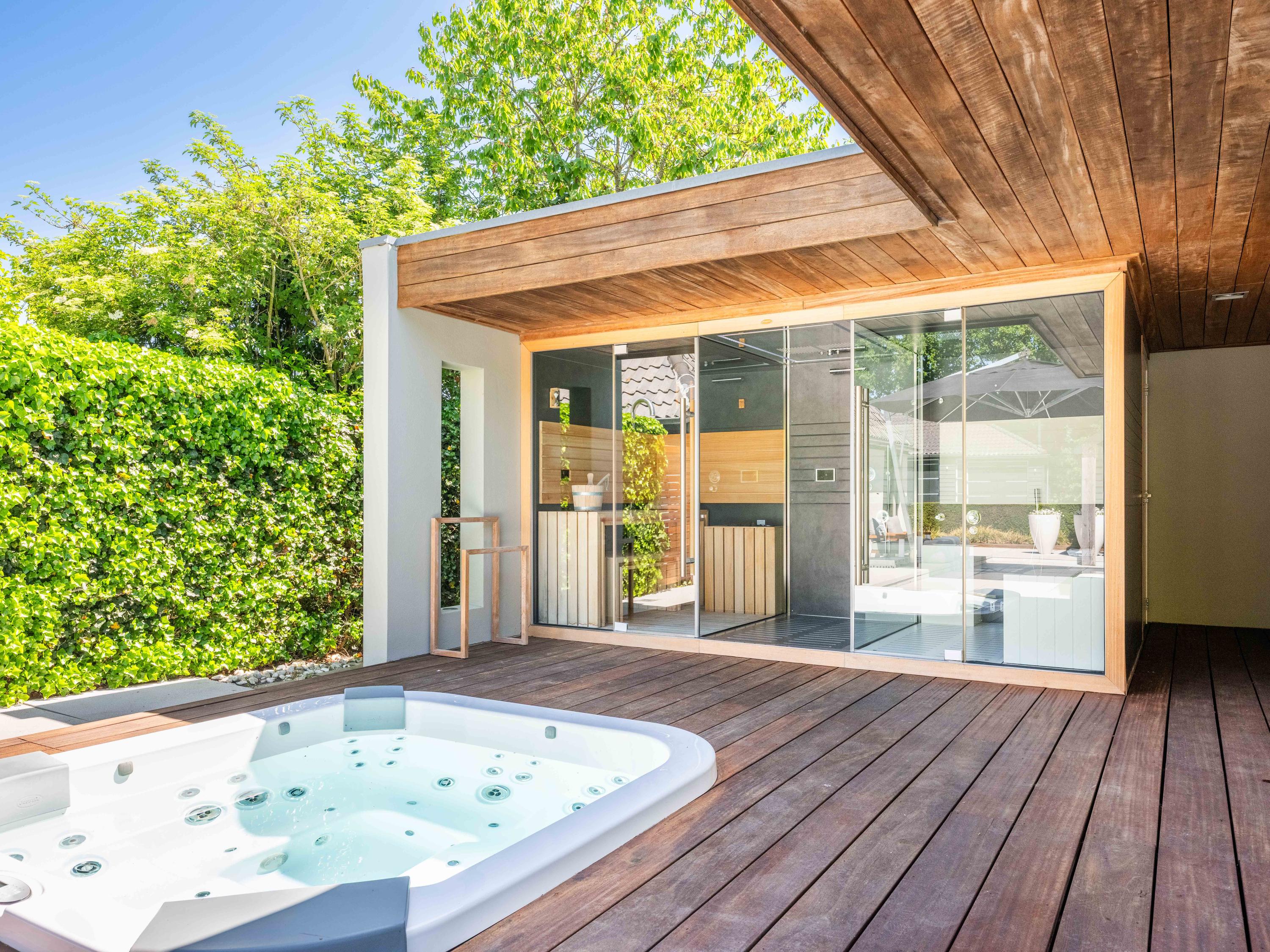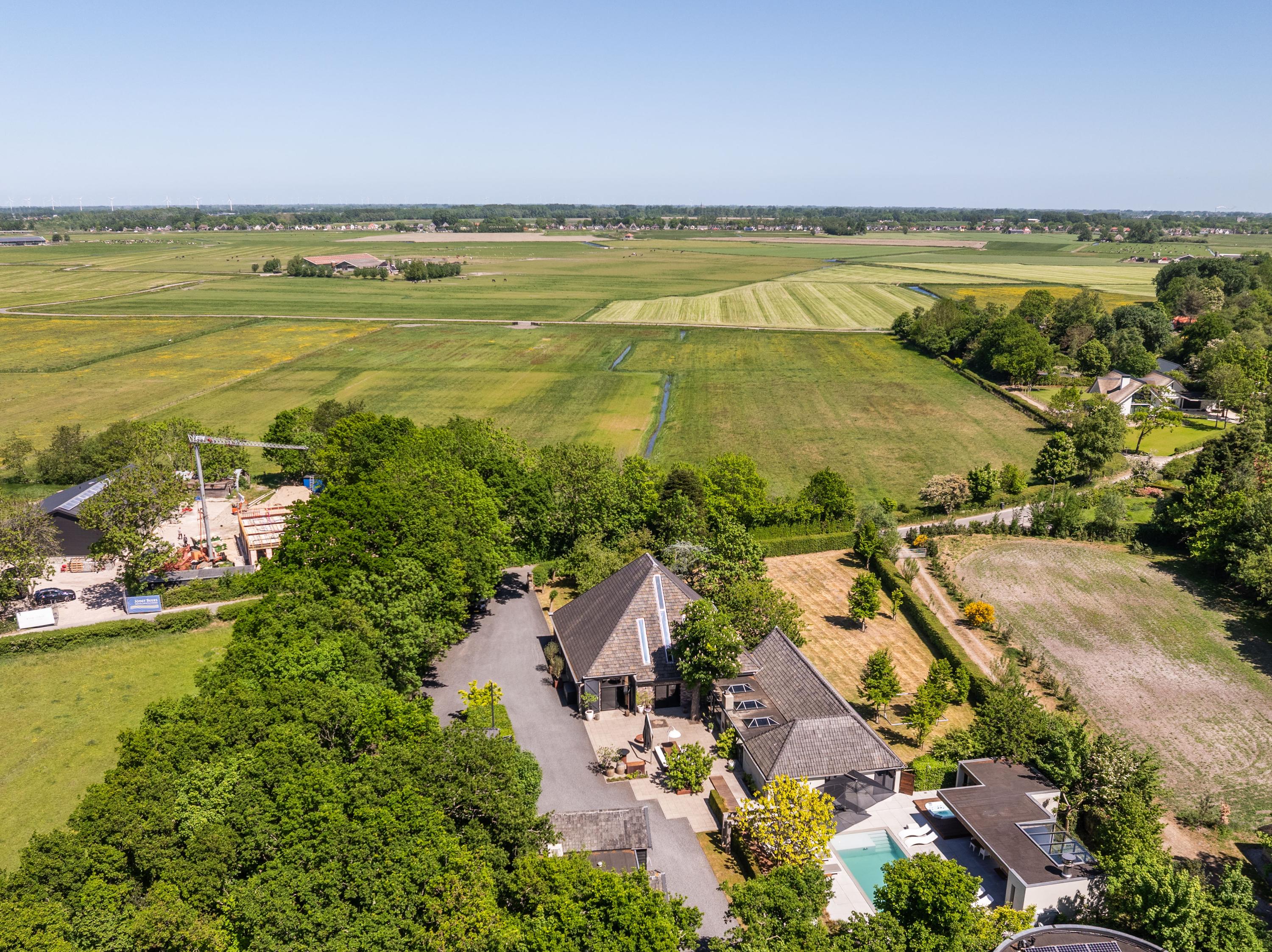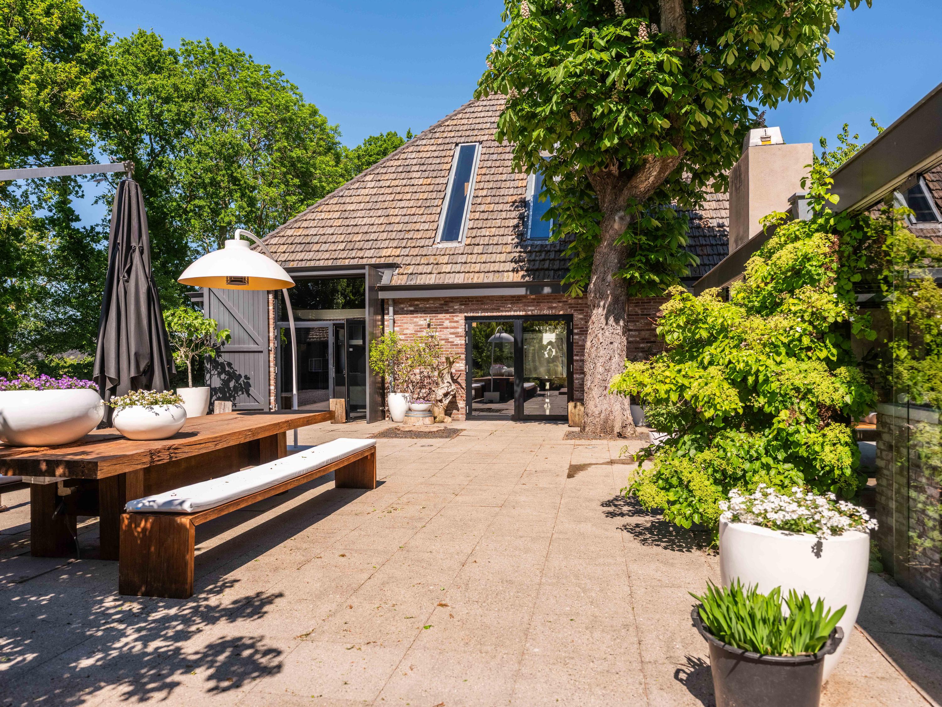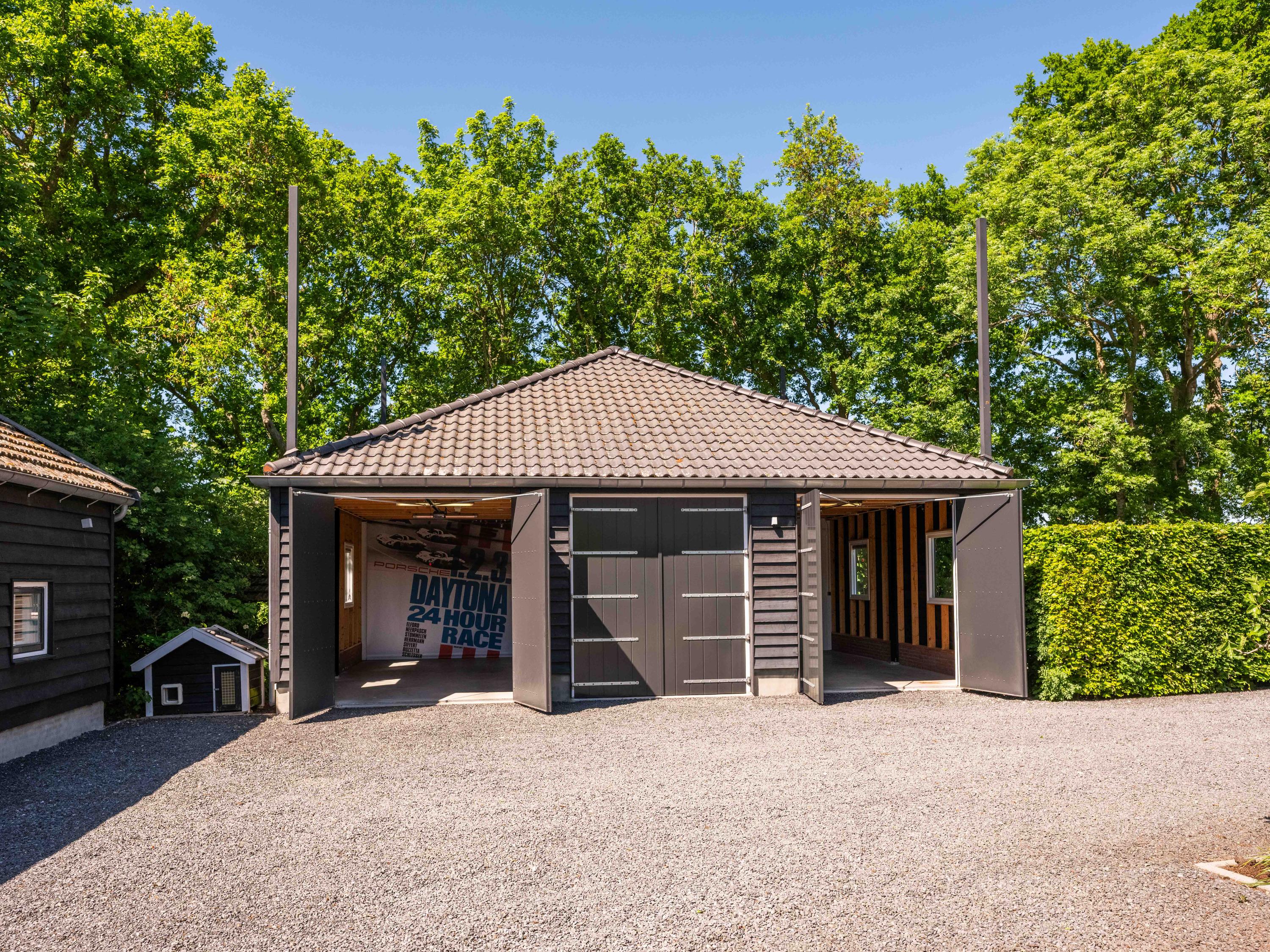附属建筑包括一个多功能小屋(适合作为办公室、工作坊或看护住宿)、一座三车库并带储藏空间,后方草地上还有一间遮蔽马厩——非常适合马术爱好者或收藏家。花园内设有游泳池、按摩浴缸、桑拿、蒸汽房以及宽敞的休息区,营造私密养生时刻。