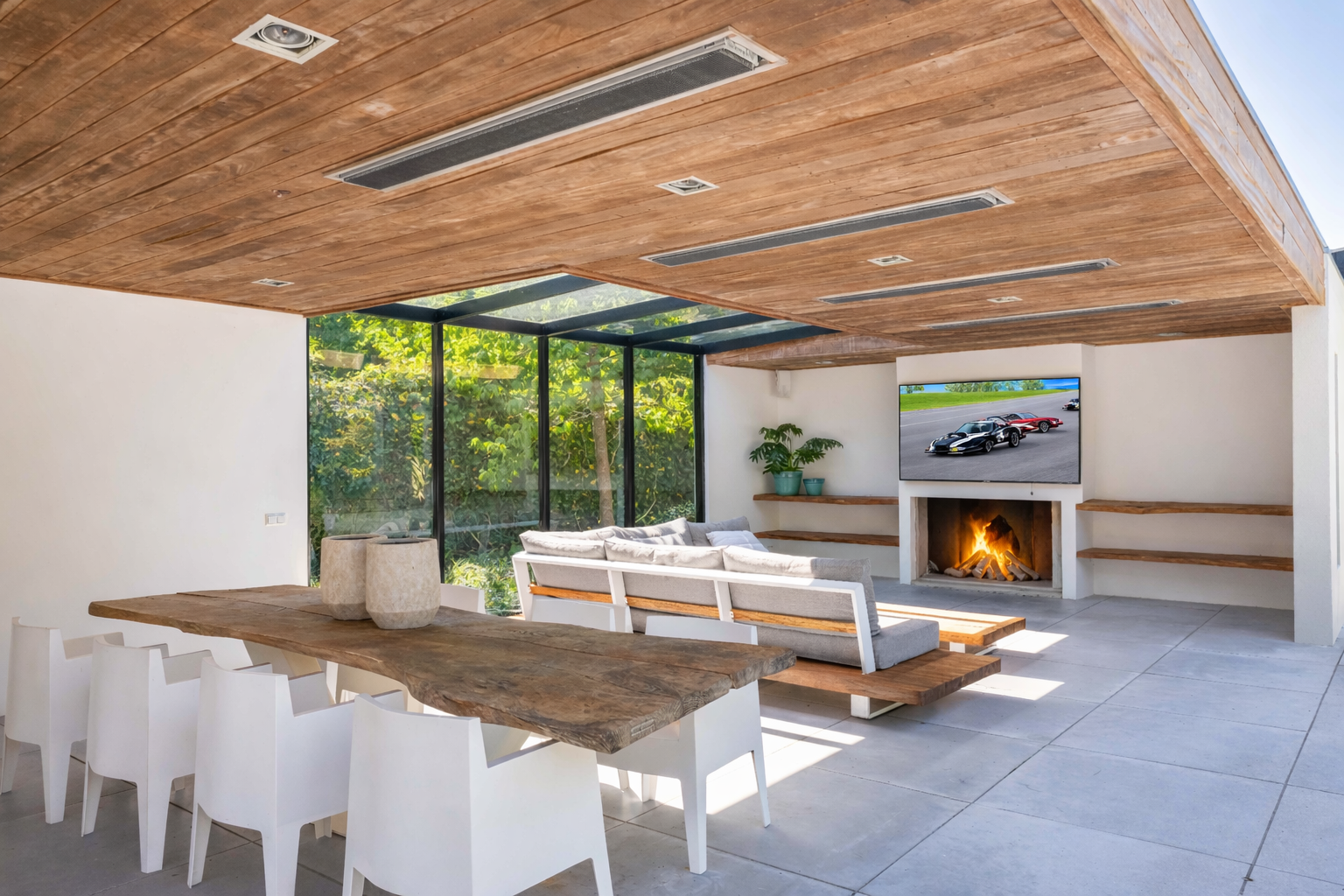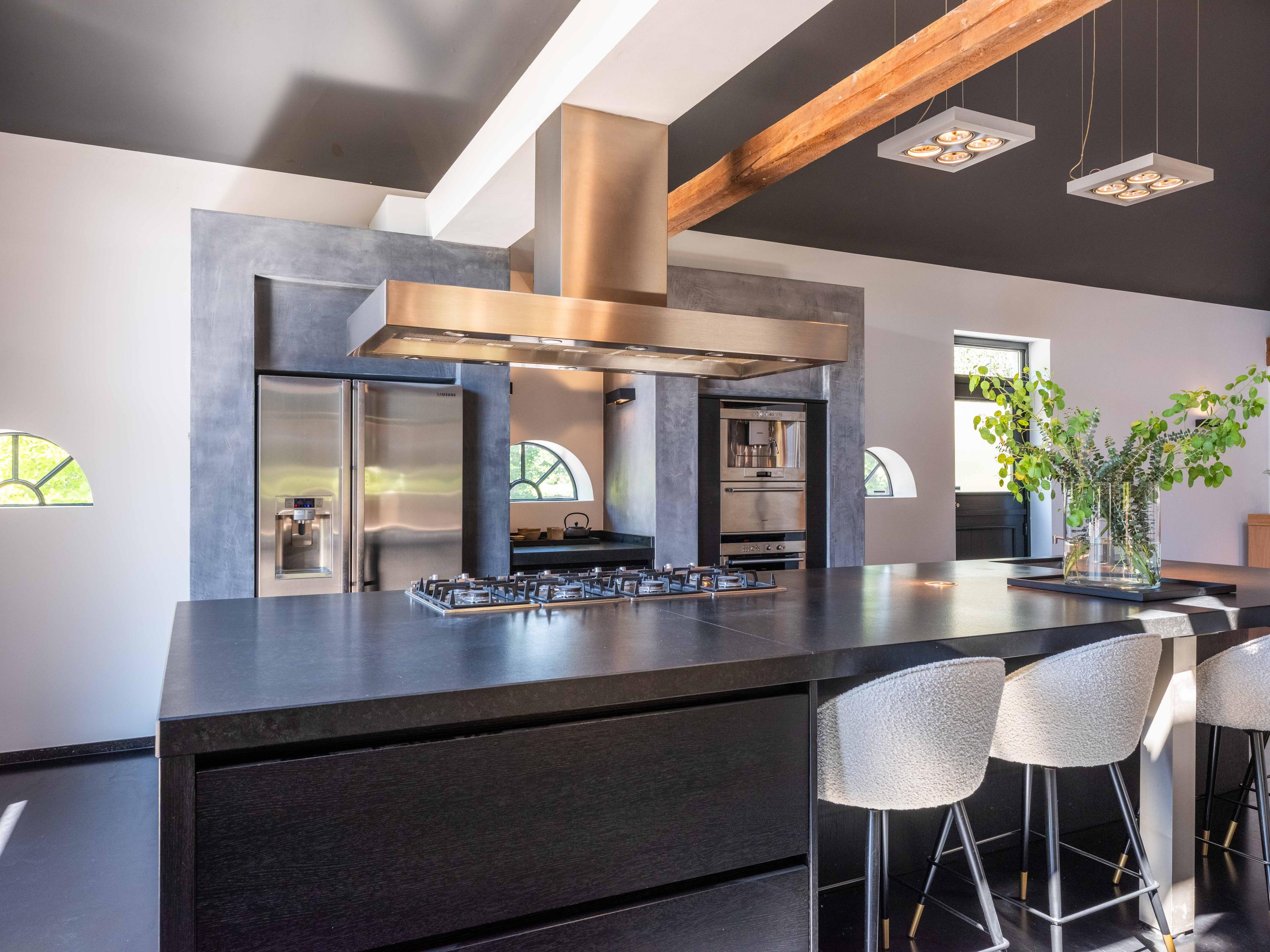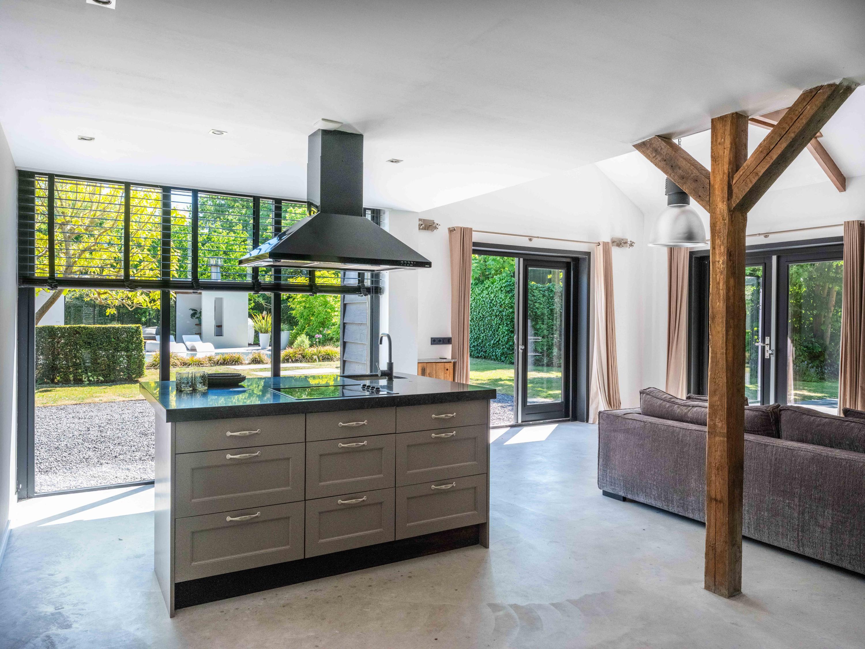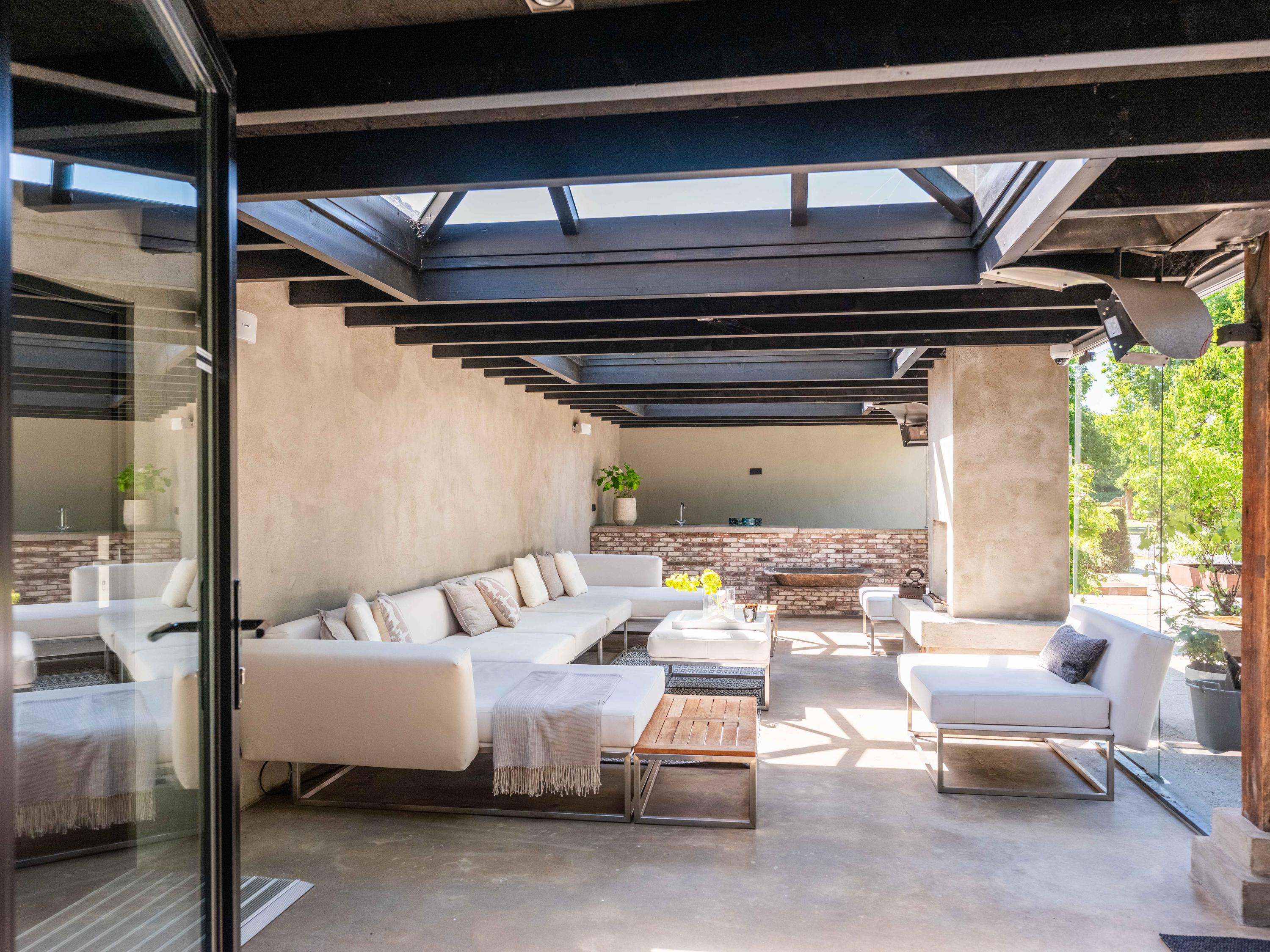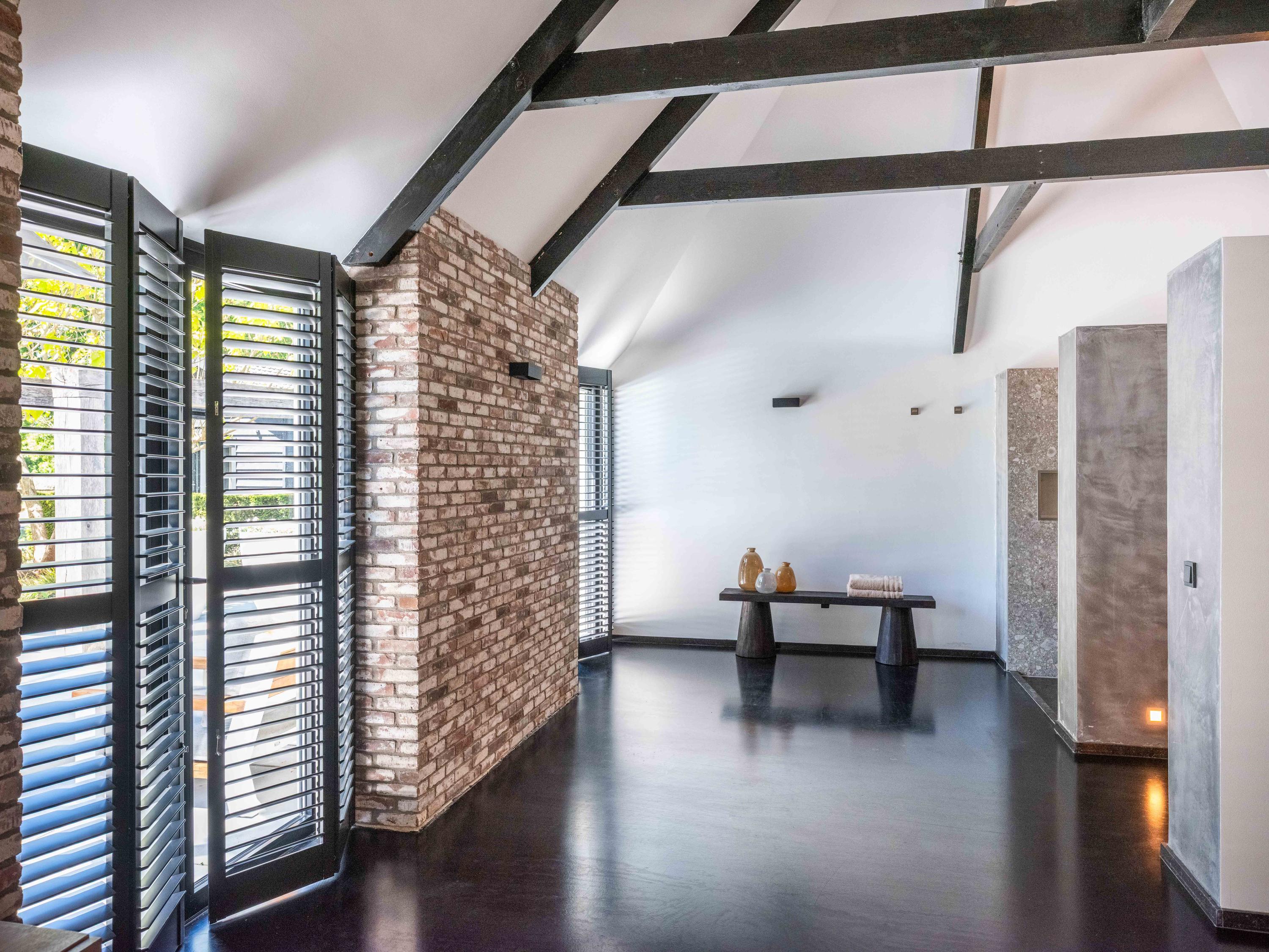 宽敞的前厅引入,一侧通往两间灵活的卧室,其中一间可作为私人书房;另一侧则引导您进入宏伟的客厅。这里,挑高的天花板、现代色彩搭配、壁炉与落地法式门共同框定花园景观,自然采光充沛,营造出静谧的沉思氛围或慷慨待客空间。开放式厨房配备Boretti八头炉灶、美式冰箱(带嵌入式咖啡机与加热盘)、烤箱与洗碗机——每一细节都为功能与体验悉心挑选。