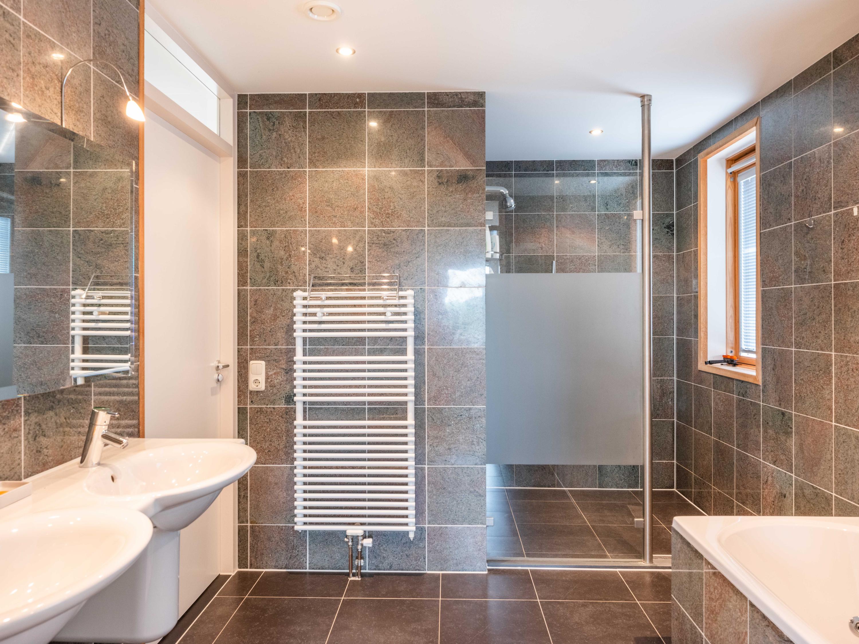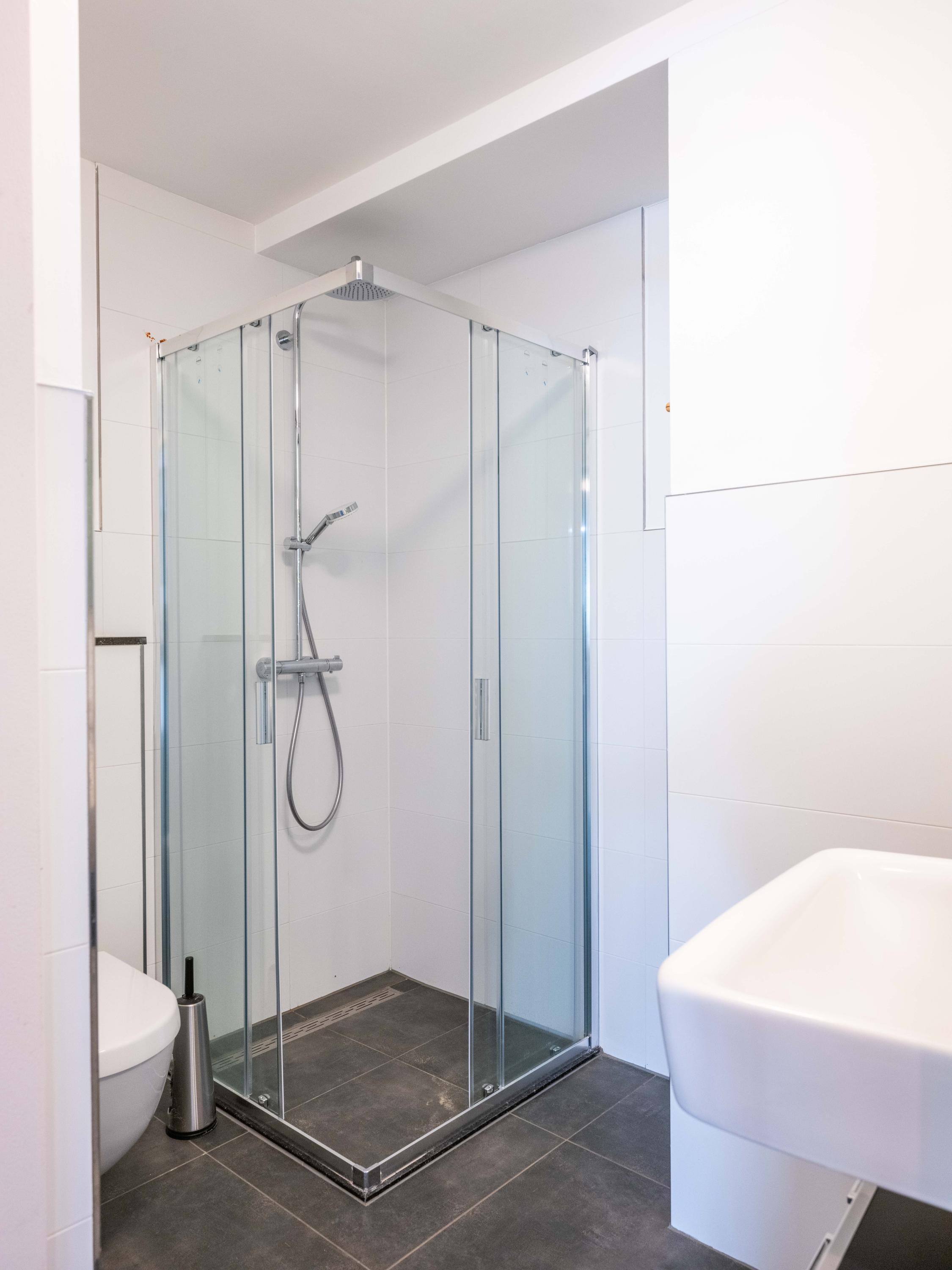 楼上两间额外卧室设有衣柜空间并灵活可变。主浴室配备步入式淋浴、双台盆和浴缸。后侧卧室通向一座朝南的私人阳台,享有静谧的城市景致。宽敞的车库(独立车位)安全设于下层,配合大楼电梯、机械通风及平衡通风系统,令日常生活更加便捷。