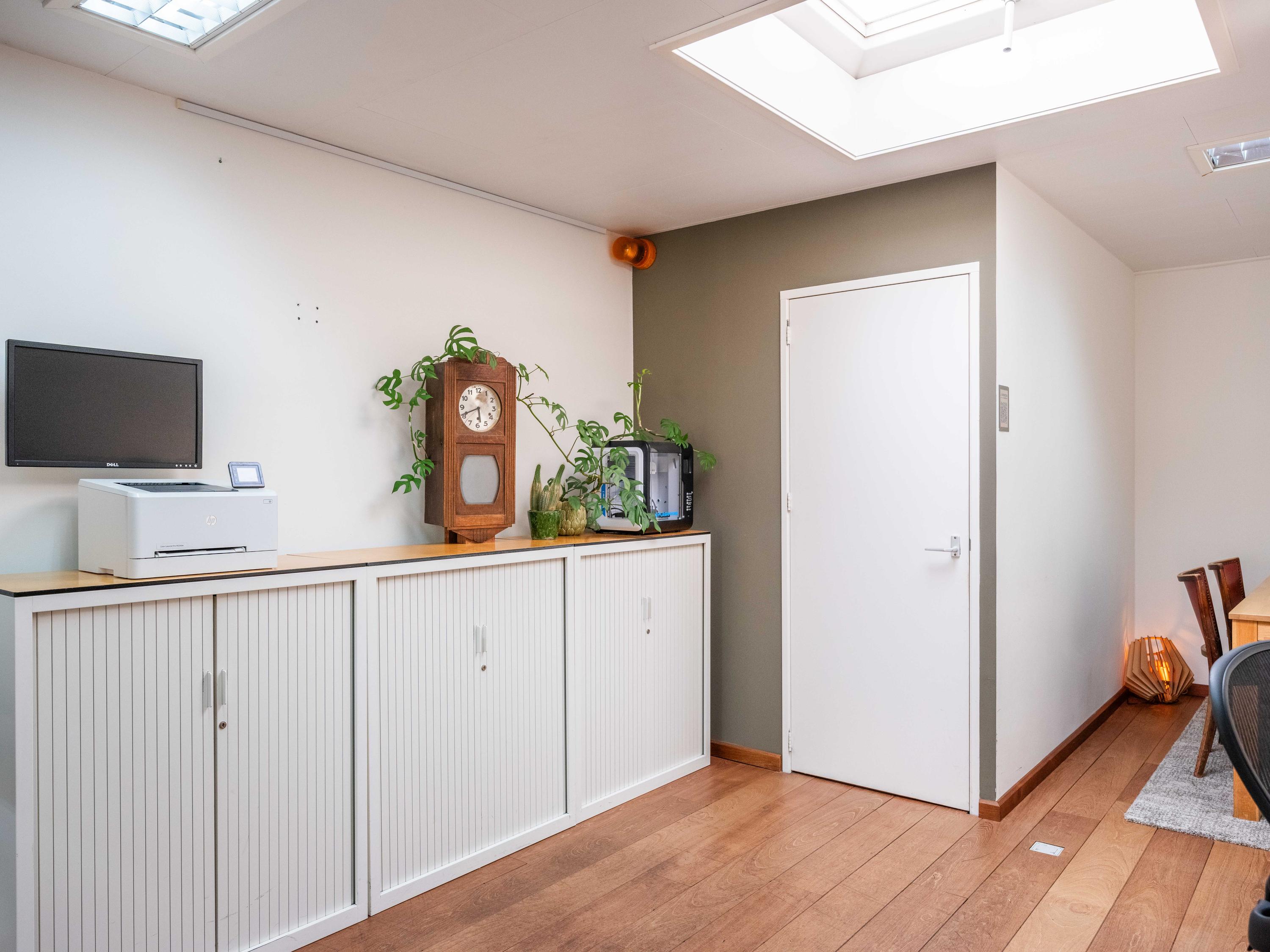 下层近100 m²的商业空间正对热闹的购物街,适合多样商业愿景。平滑的抹灰墙面、小厨房、独立设施及私家入口定义了这一空间。毗邻的43 m²办公室拥有新立面和法式门,极具灵活性,非常适合创意或专业用途。所有区域可内部贯通,便于实现居家与事业的无缝对接。