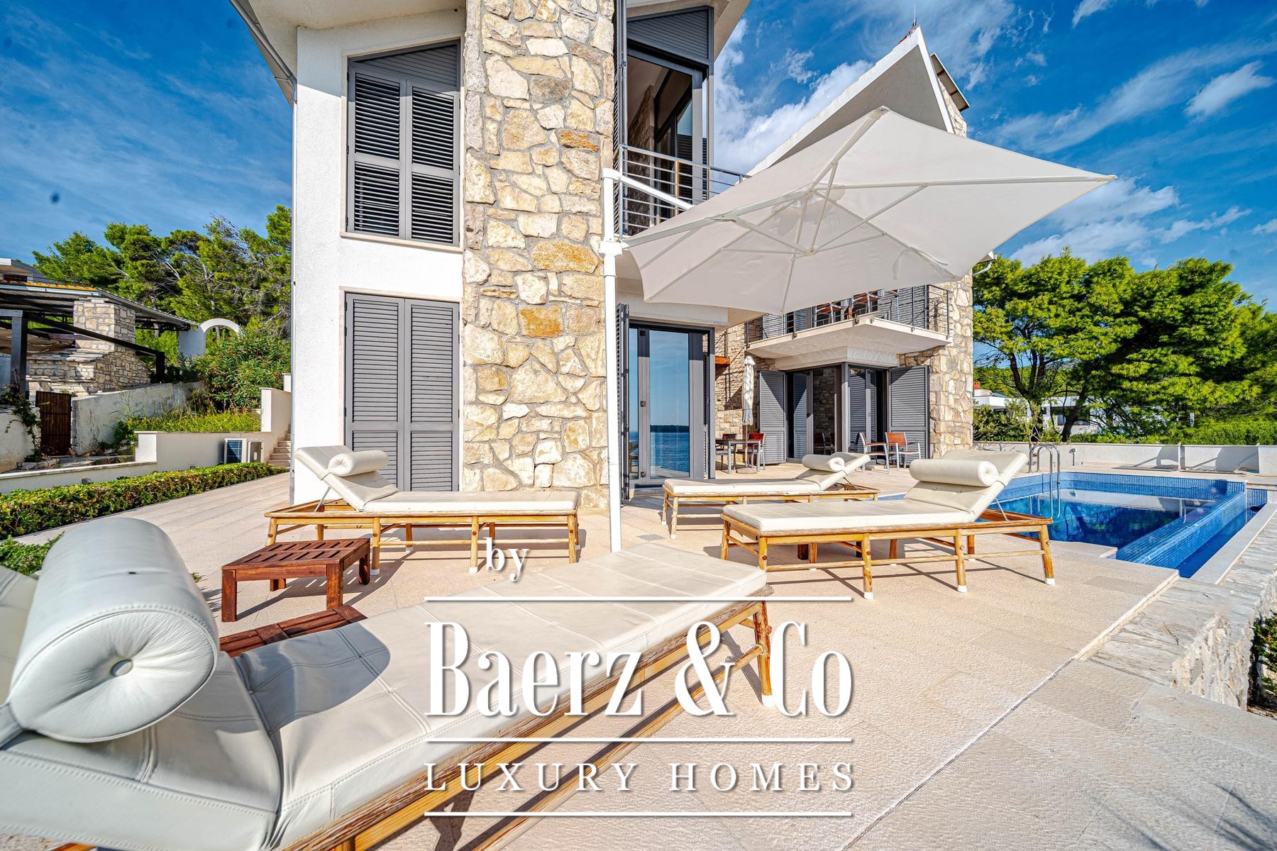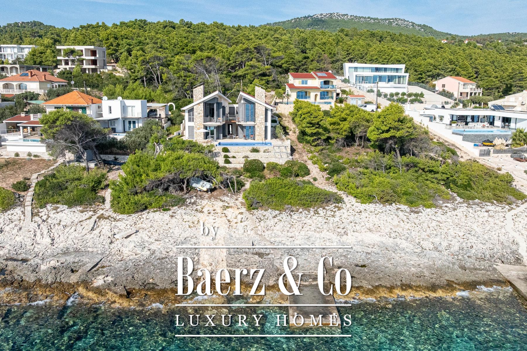 别墅前方景观铺设有浅色石材,设有游泳池和独立日光浴区,整体规划令临海生活自在惬意。步行道距离海水仅15米,小型码头便于泊船,并提供私密的安歇空间。全屋所用材质与内饰精挑细选,质感细腻,低调彰显尊贵格调。
