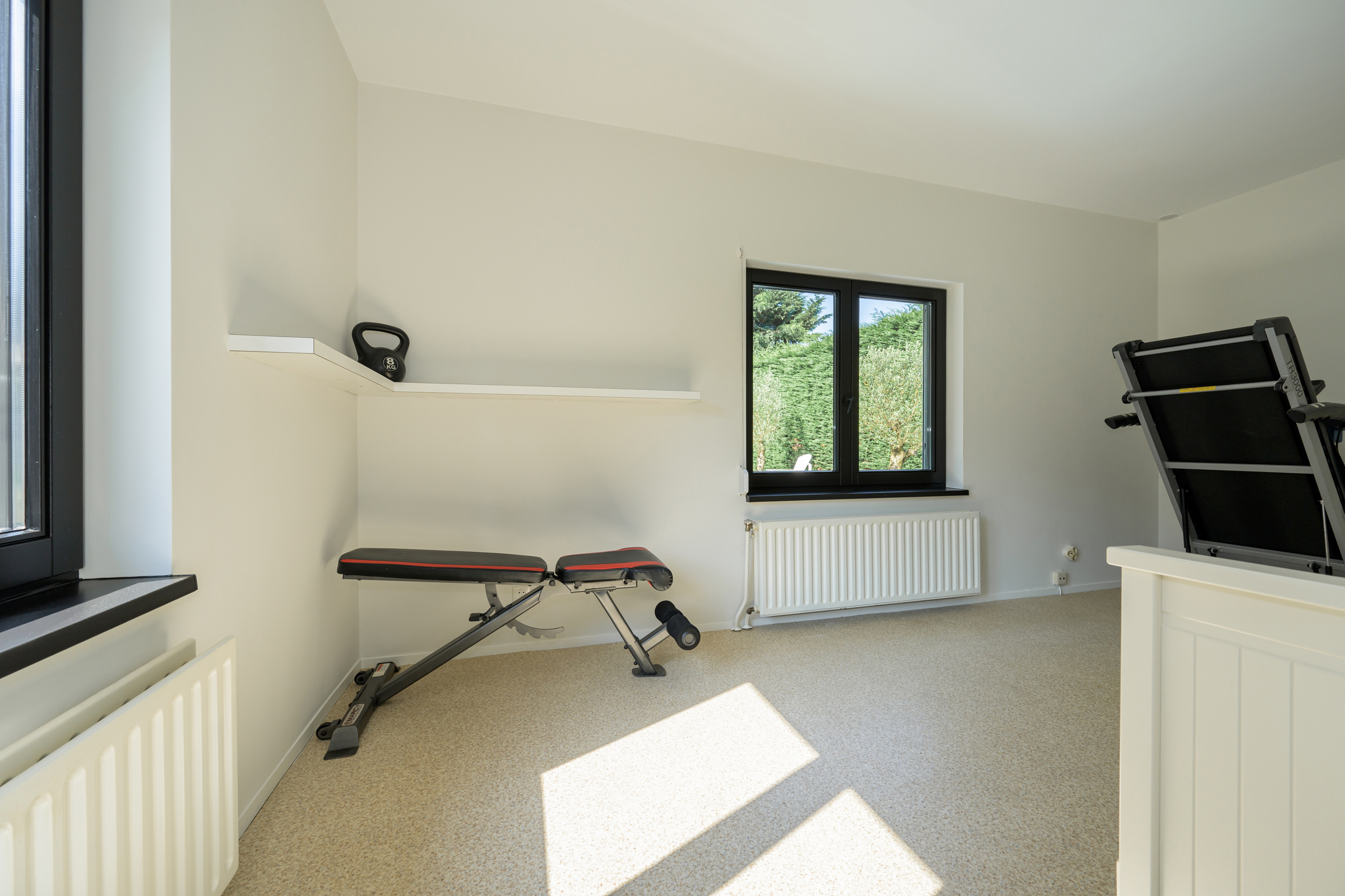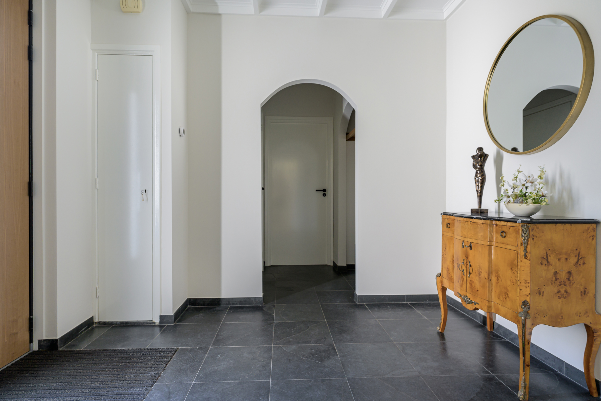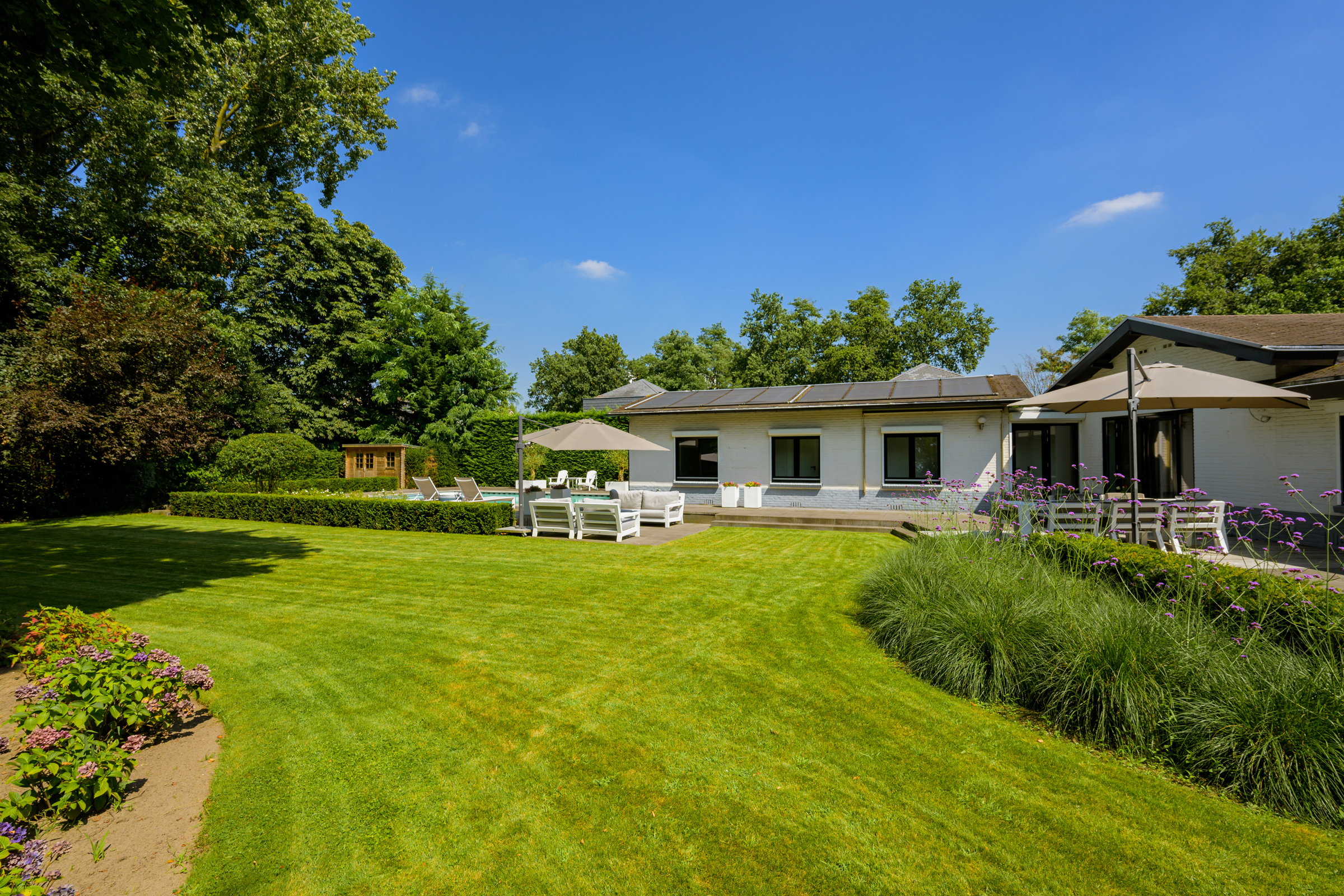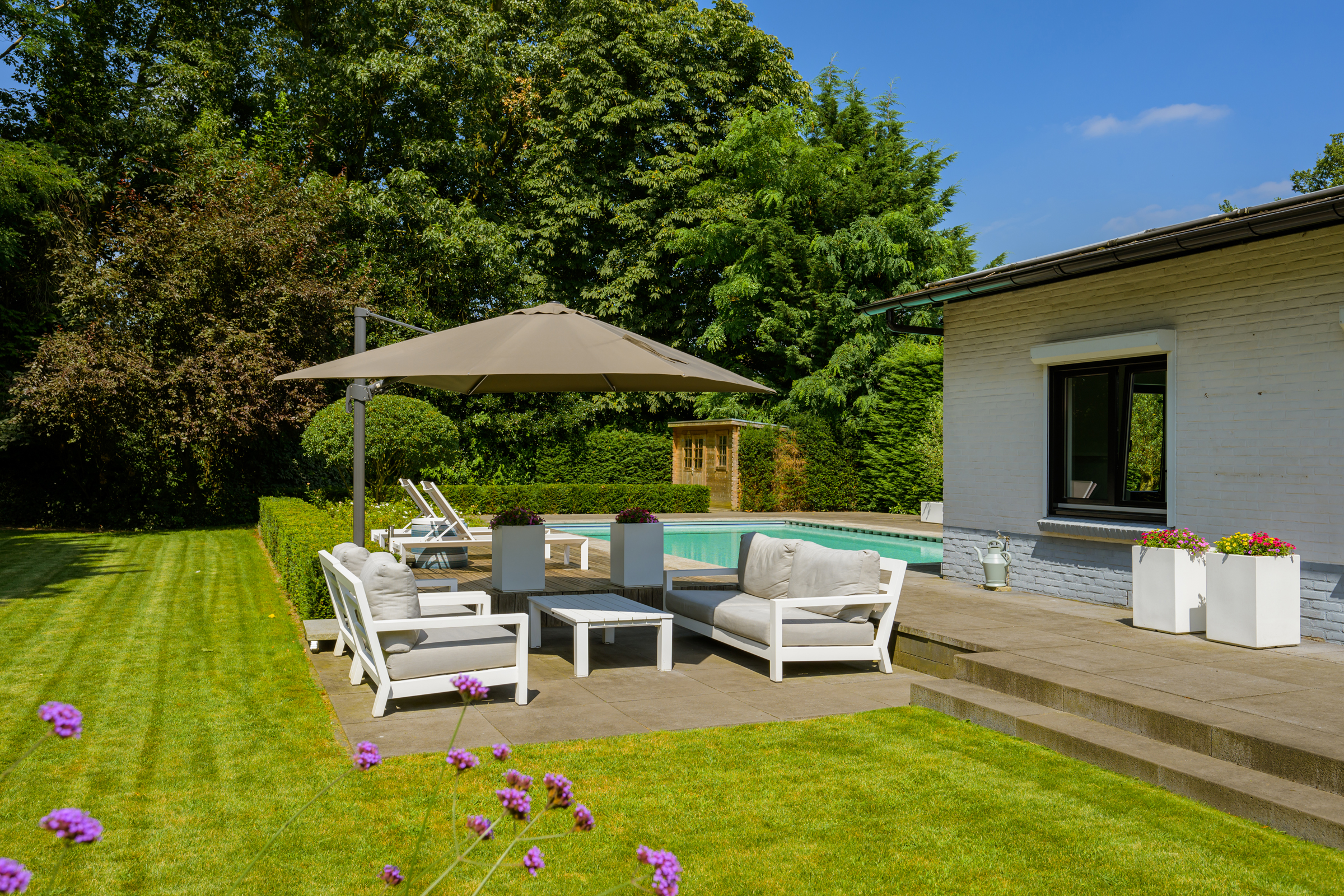 宽敞的景观花园如同私密的静谧绿洲,配有宽阔草坪、多重露台、成熟树木、丰富植被,以及一座 6 x 9.5 米的恒温游泳池。宽敞车库、安保储藏间及隐蔽技术设备(如报警装置、百叶窗、泳池加热及灌溉系统)均体现了对舒适与私密的精心考量。