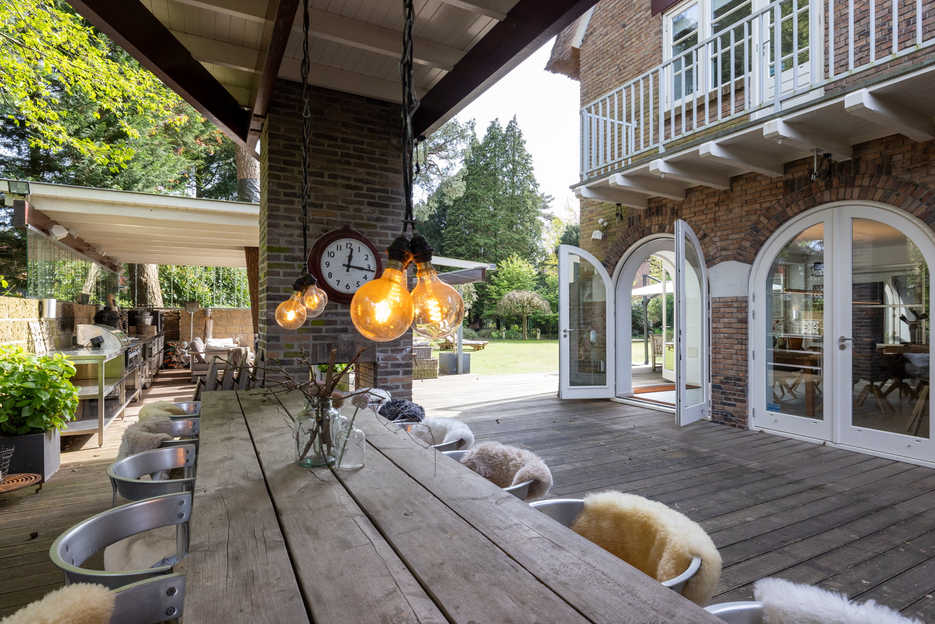 Breda乡村别墅珍罕呈现于Ruitersbos住宅区,静谧地坐落于2830平方米私家土地之上,环抱于成熟林木之间。茅草顶别墅将1932年原始的墙体木饰与当代匠心工艺相融合,成就了私密、舒适与设计静谧共生的生活方式。住宅面积达521平方米,拥有七间卧室和三间浴室,旨在满足家庭起居与高雅款待的双重需求。