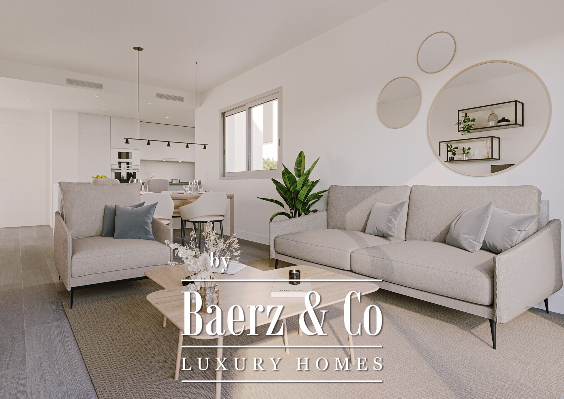 居住布局包括三间明亮卧室和三间高雅卫浴,开放式厨房与客厅、餐区自然相连。专用洗衣及杂物区提升了日常便利。每层各有一个私人露台,在地中海天空下享受宁静时光。