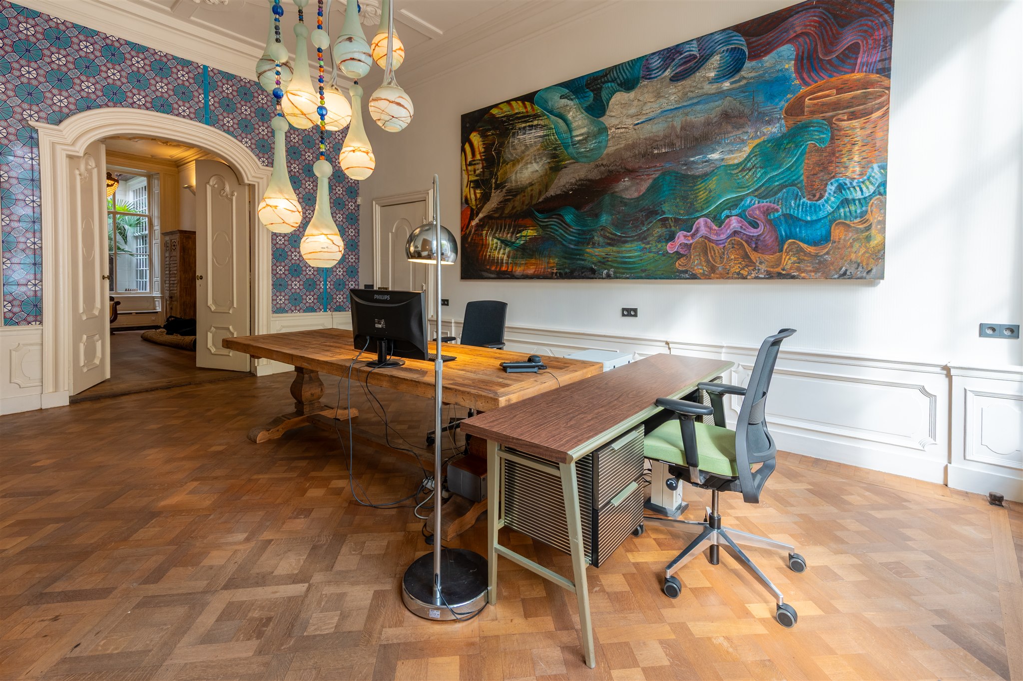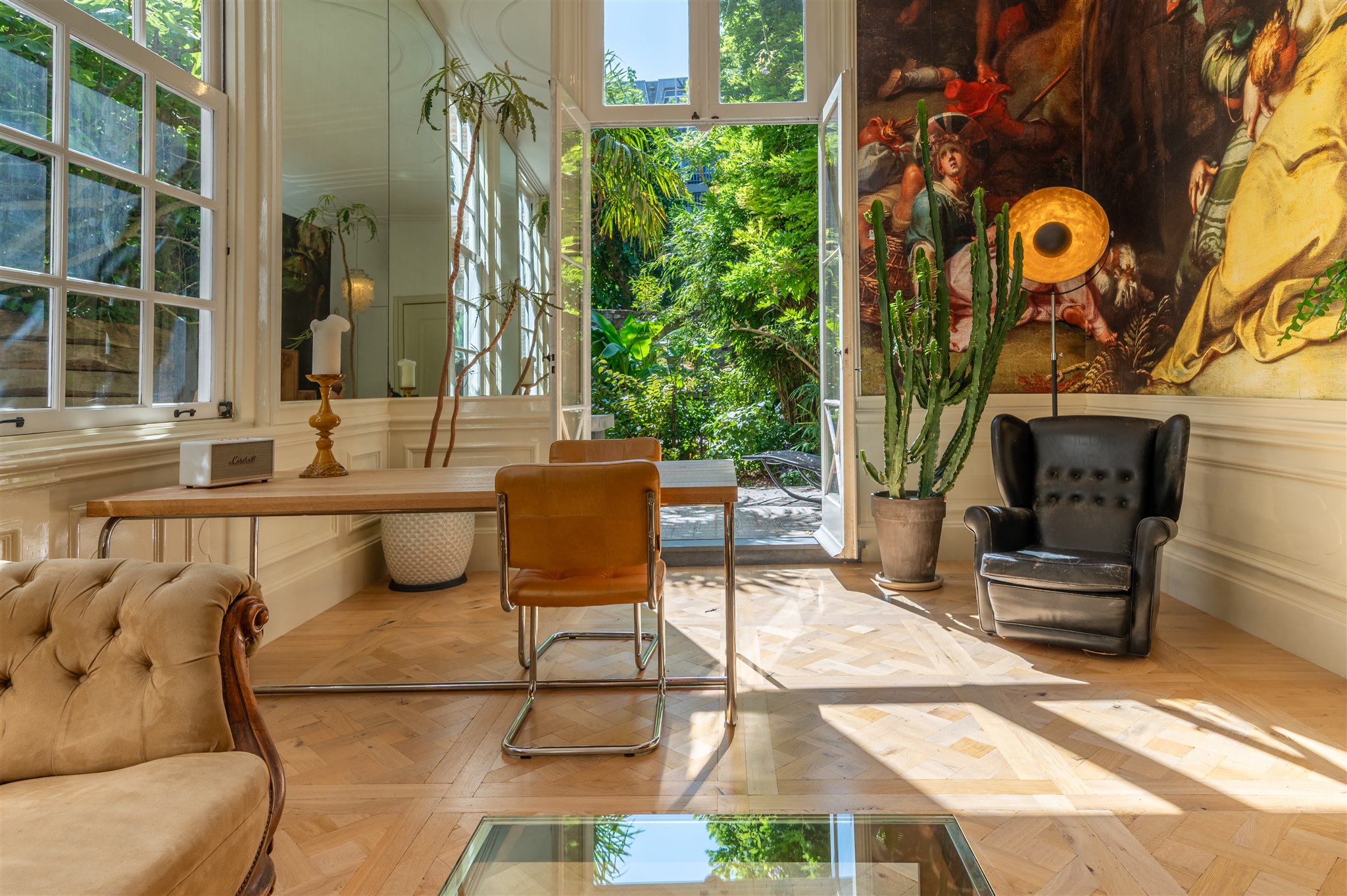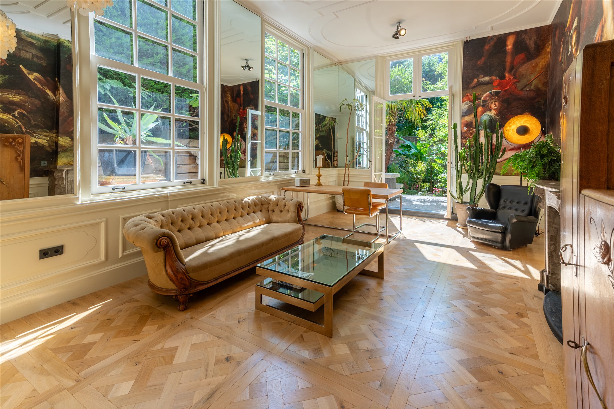 近期的修缮工程精心保留了历史时期的细节,同时引入天然材质、有机饰面与可持续创新——如热泵系统与太阳能板。家中空间手感丰富,室内气候卓越,高挑天花与原有装饰元素尽显大宅非凡气度。