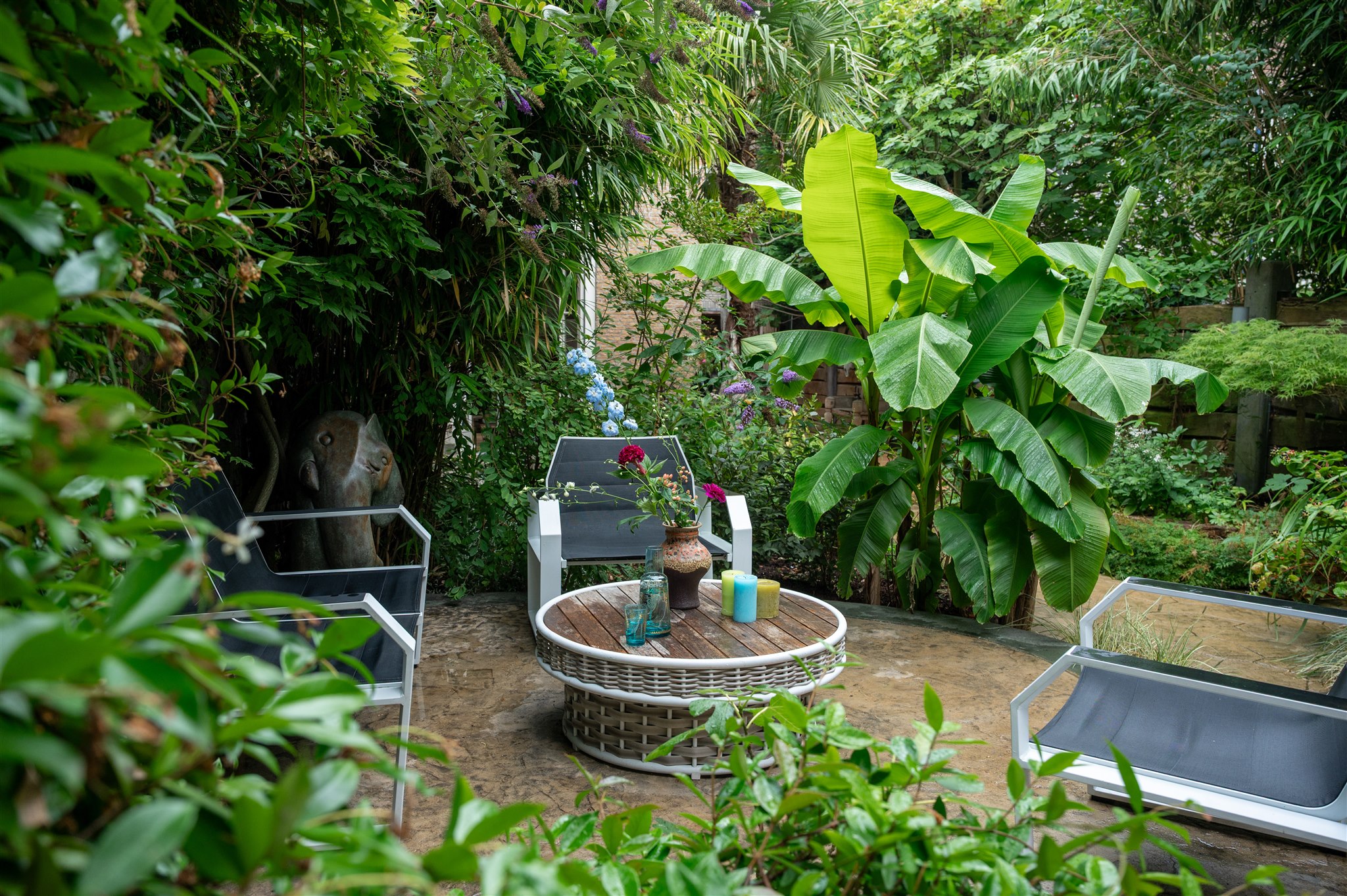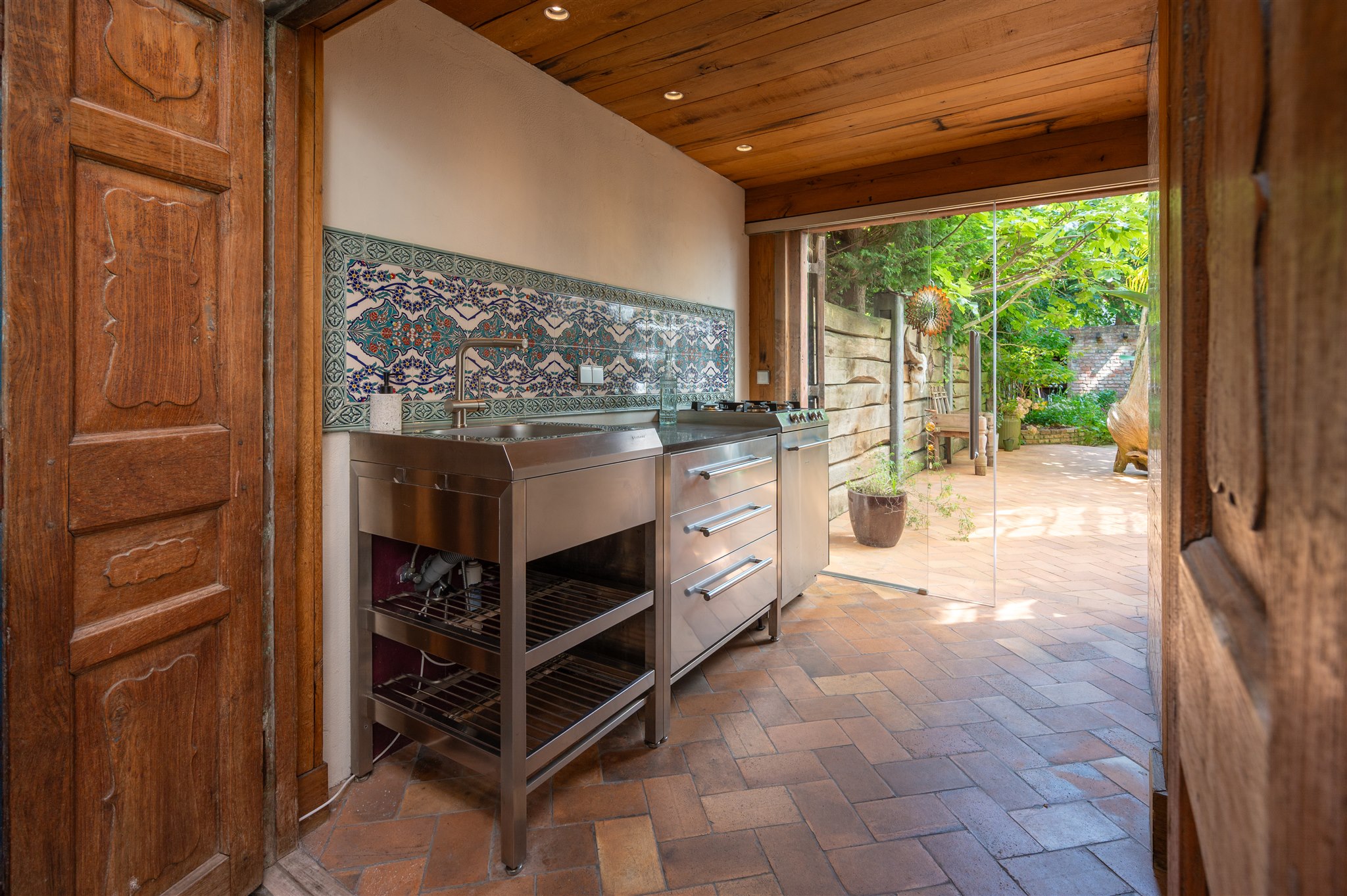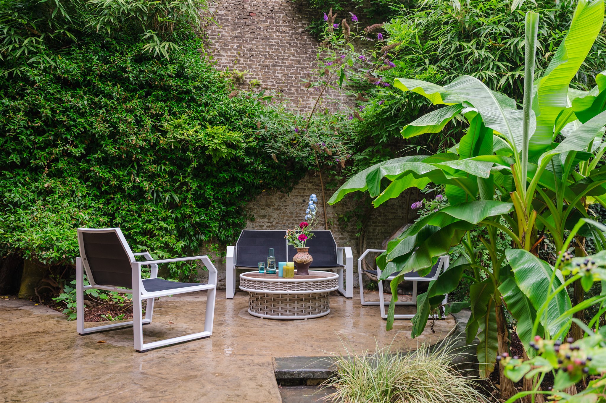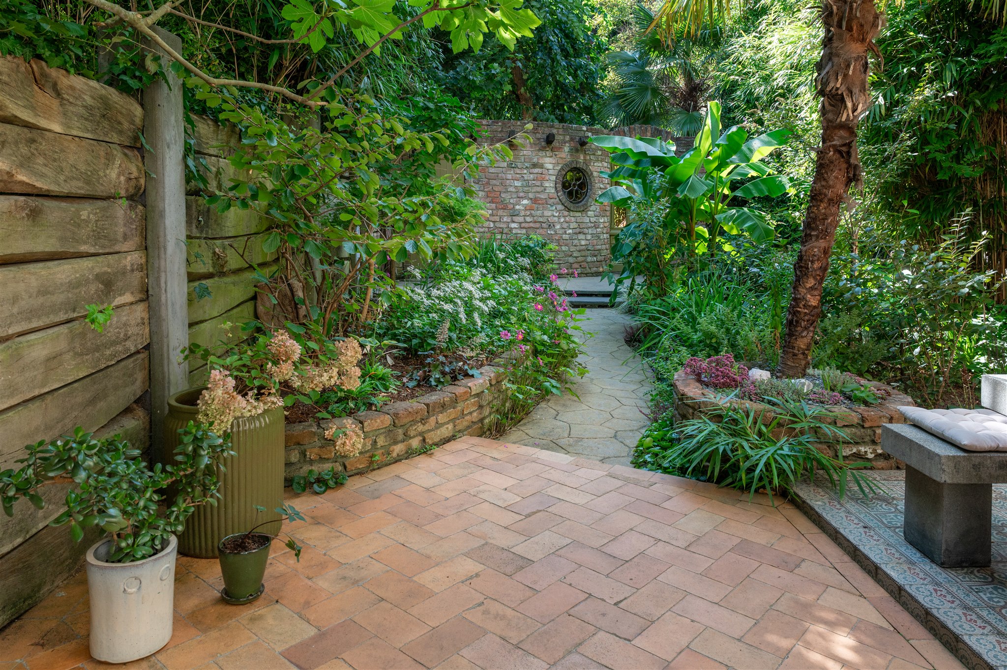 底层以大理石门厅、庄重的办公区及拱形地窖迎宾,通向 100 平方米的热带园林,配备石制储物间,并有隐蔽通道通往三个私人停车位。花园房配备地暖与画作般的墙面,自然衔接室内外。家居与待客生活在铺设橡木地板、四米高顶的起居室中展开,后部为配备 Gaggenau 器具的 Bulthaup 厨房。