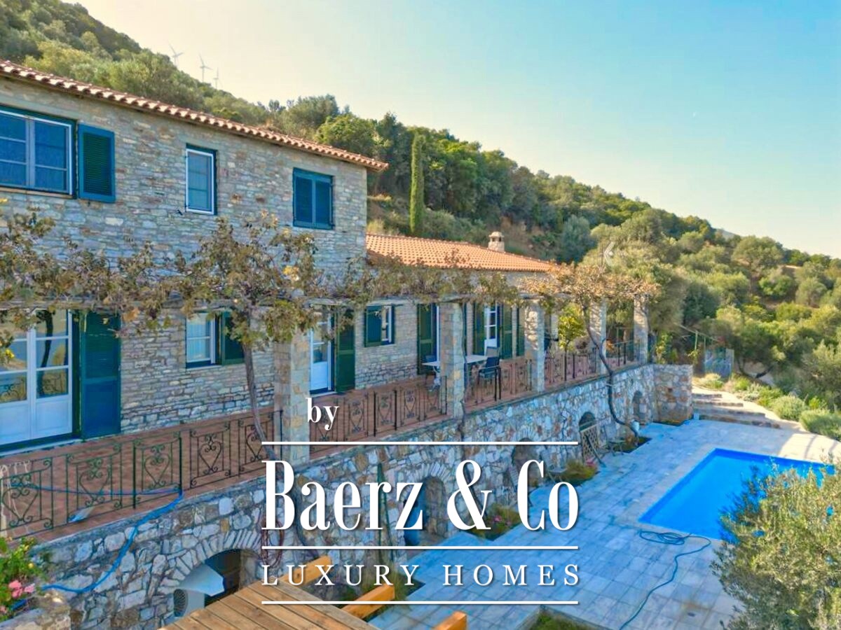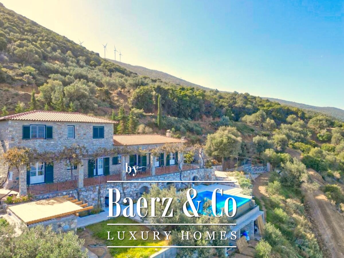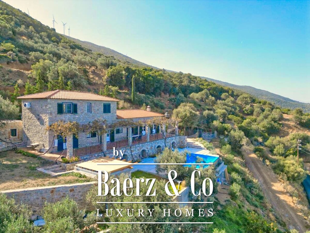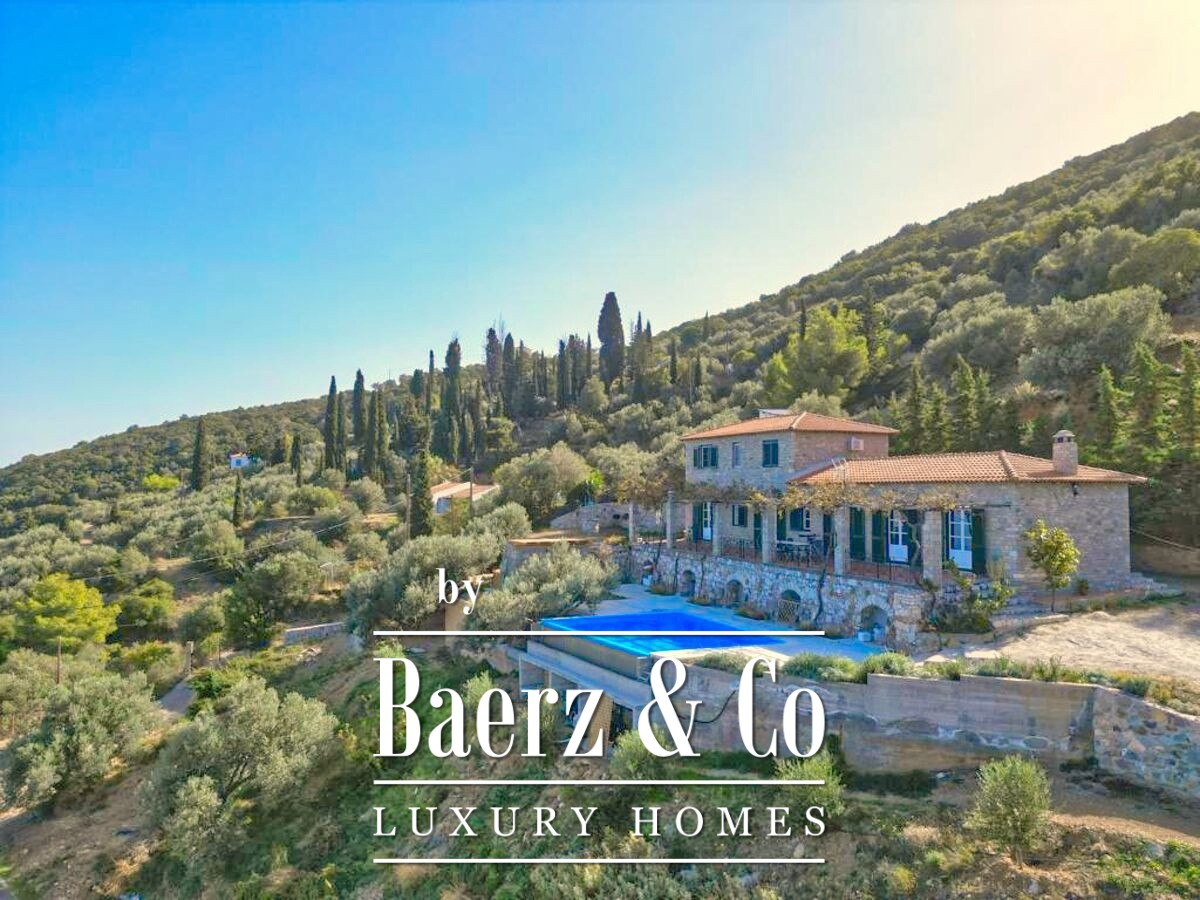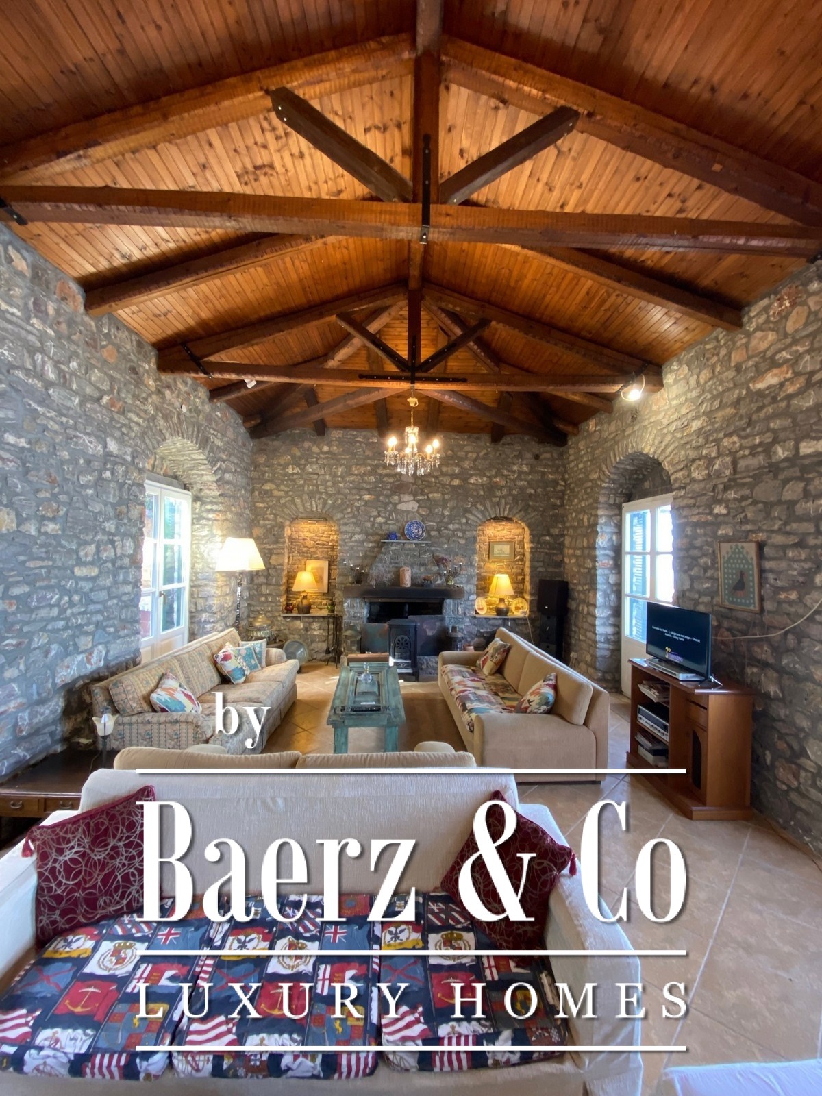 石砌别墅 Galatas 坐落于静谧山坡之上,融合了传统希腊建筑与内敛的现代舒适,俯瞰海景,景色开阔。180 平方米的室内空间宽敞明亮,自然光倾泻而入,中央起居区配有令人印象深刻的石质壁炉。所有房间—from 独立厨房到三间卧室与两间浴室—都兼顾实用性与内在的精致格调。