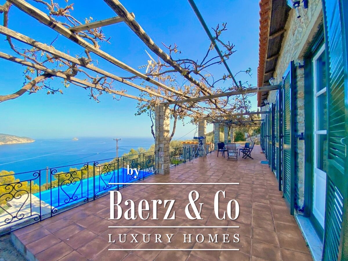 别墅占地面积 4,000 平方米,私密性极佳,自由感油然而生,地中海式园林和无遮挡的海蓝景致更添氛围。50 平方米的阳台由葡萄藤棚遮荫,适宜静享悠闲时光;30 平方米的泳池则是感受宁静的另一处空间。石砌别墅 Galatas 还设有一栋未完工的石质客用小屋和宽敞封闭的储藏区,布局细致周到。