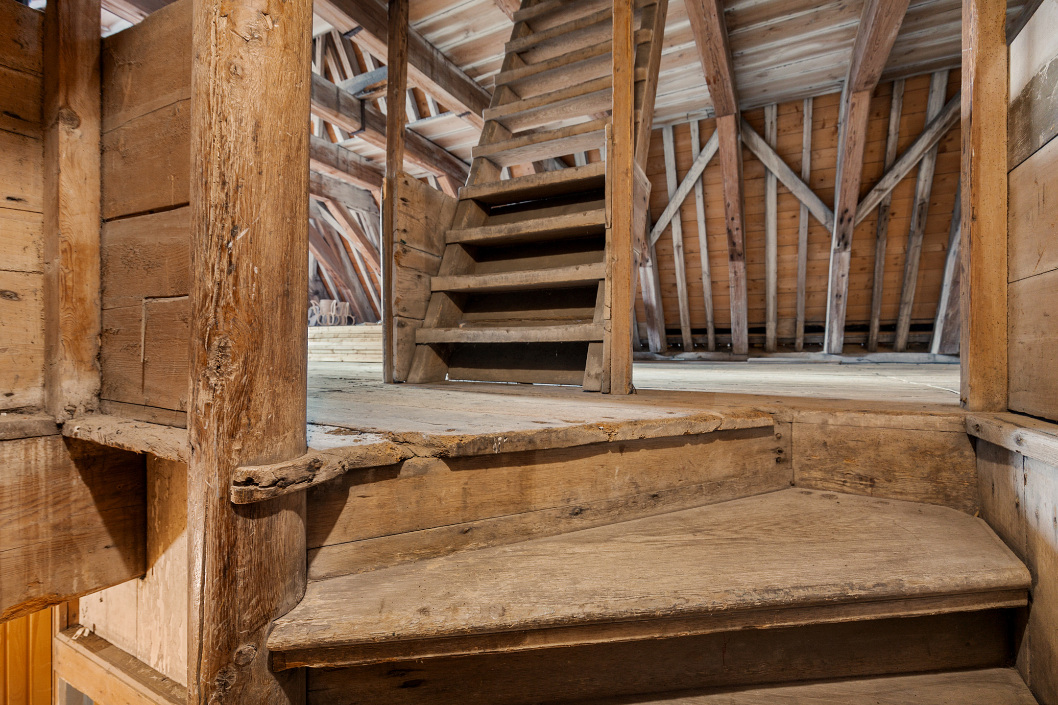 踏入宅邸,大理石地面与回音十足的前厅通往三大主空间:一间可欣赏运河美景的画廊、柔和光线的套间卧室(内设衣帽间)、以及后方设有夹层并直通历史教堂的执业空间。首层设有宽敞的起居厨房,可俯瞰水景;隔壁的拱形厅堂层高与采光充裕,是聚会或展览的多功能精选场所。二层配置有工作室公寓、技术间及大量储物空间,均享有落地大窗与自然通风。向上而行,是106平方米的特色阁楼,原始桁梁裸露,适合改作现代Loft,其下更设有一处坡顶阁间。20平方米的地窖进一步完善整体布局。配套设施涵盖垂直通风、天窗、烟囱及现代化隔热。采暖由中央系统供应,亦具备开放式壁炉的潜力。
