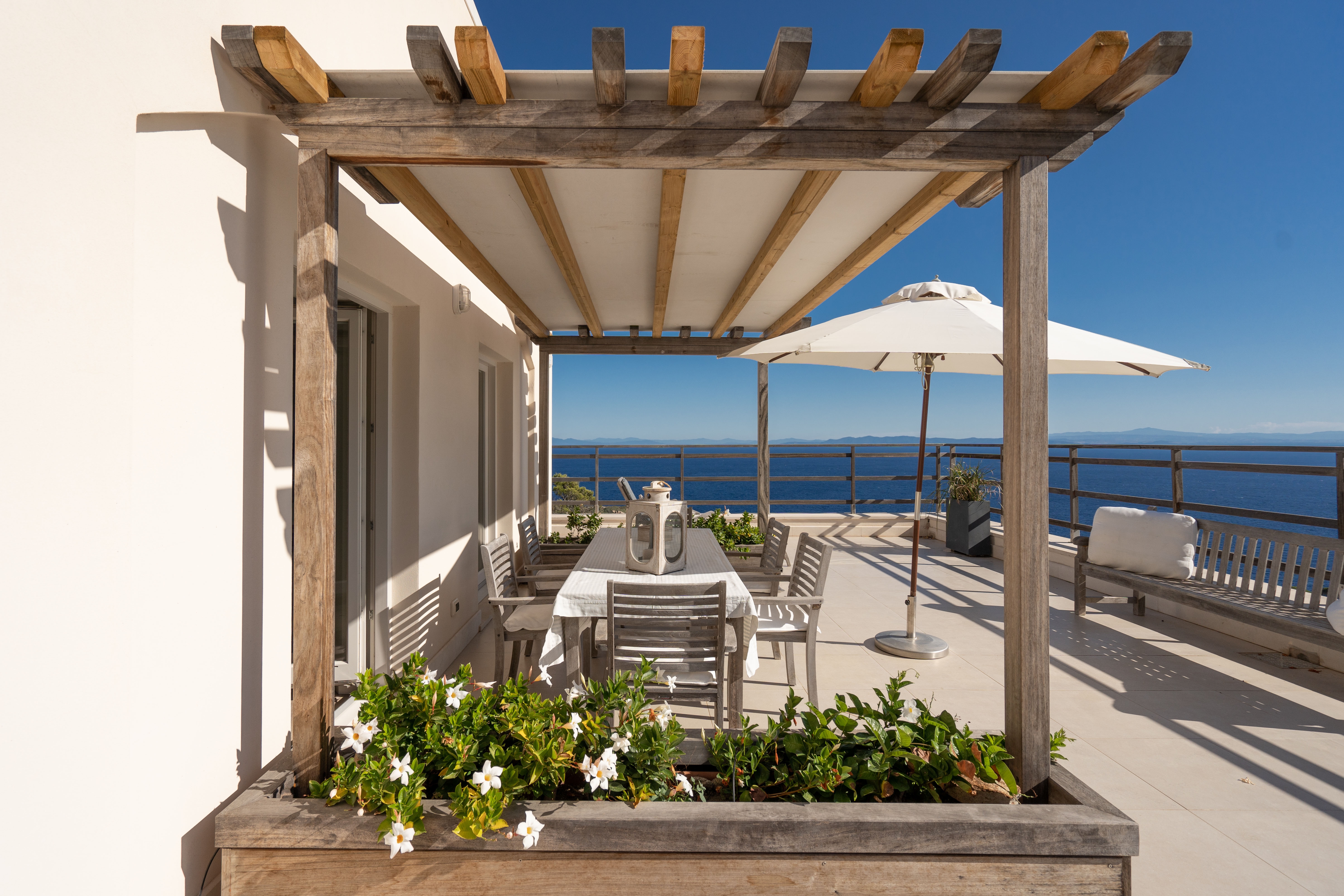 最初的别墅由知名建筑师于上世纪50年代设计,2000年代初进行了修复,保留了原有的风貌与建筑完整性。9000平方米的地块被层叠花园、地中海植被与成熟橄榄林环绕,私密静谧。主露台远眺蔚蓝海面、Arenella海滩、阿尔真塔里奥山与Giannutri岛。