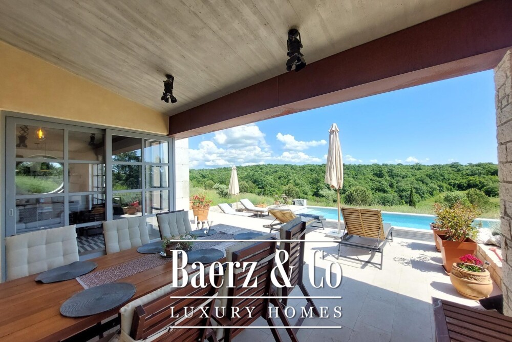 details, such as 50 olive trees that produce around 130 kg of fruit and a variety of Mediterranean herbs that you can also use to prepare delicacies.This residence offers an impeccable blend of comfort and sophistication. Enhanced security measures, including video surveillance and an alarm system, provide peace of mind for any discerning owner.But that is not all! In addition to the main plot, there are two construction plots of a total of 6,193 m2 for which there is already a conceptual solution for the construction of an additional residential building for all those who see this property as an investment.And finally, what makes this property unique on the market, in addition to the construction land, is the additional agricultural land of as much as 26,000 m2. At the same time, it should be noted that it consists of several plots that are located next to each other, which gives the future owner either the opportunity to live in seclusion with a wonderful view of the greenery and the forest or, with a little ingenuity, use the full potential of this property and return the invested money in a very short time.The location offers convenience, with Pula Airport 33 km away. The beach is easily accessible, either in the Lim channel, 6 km away or in Rovinj, only 10 km away. Nearby there are well-known restaurants, as well as grocery stores in Rovinjsko Selo, only a 7-minute drive away.For additional information or viewing, feel free to contact us.