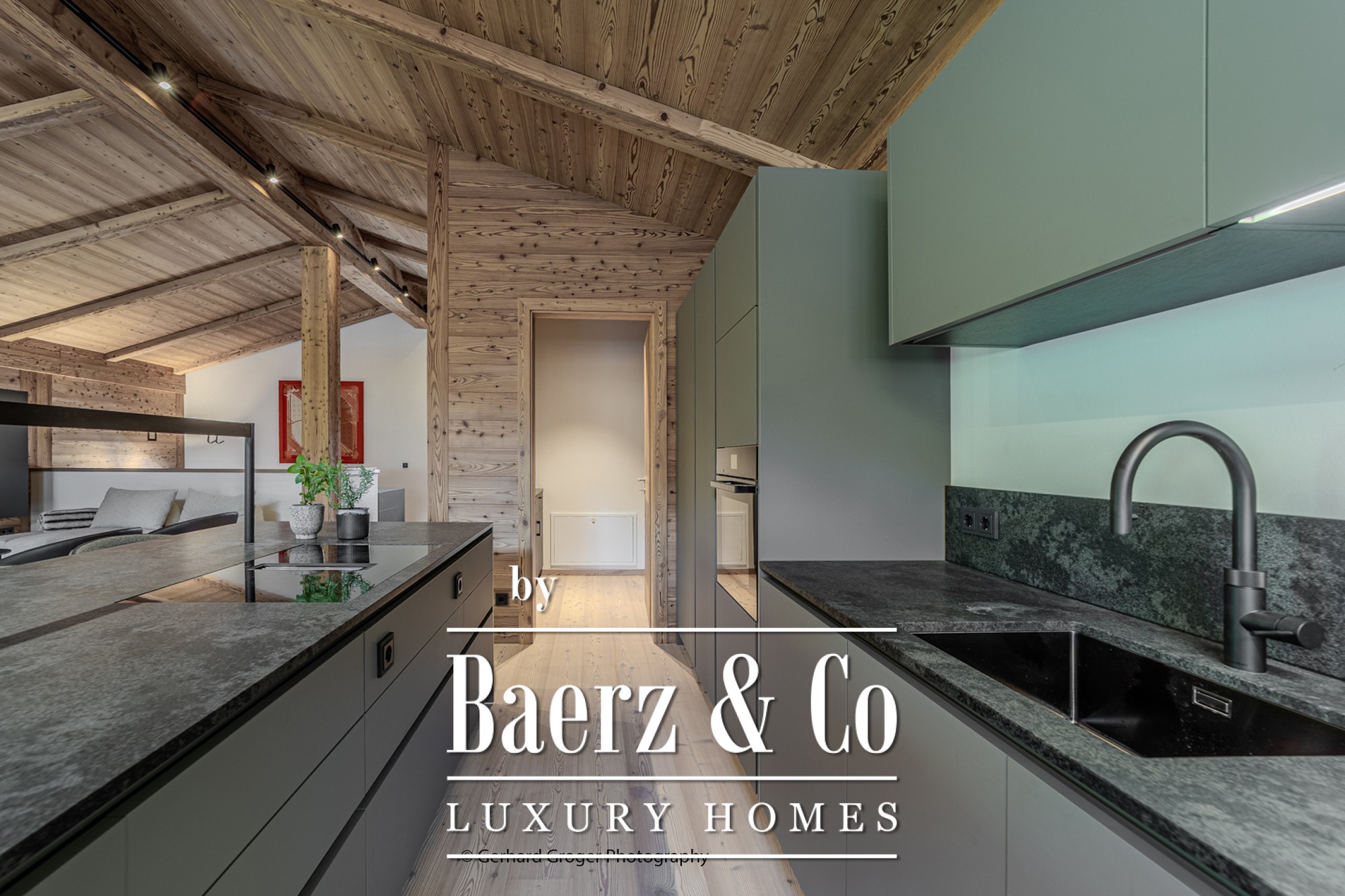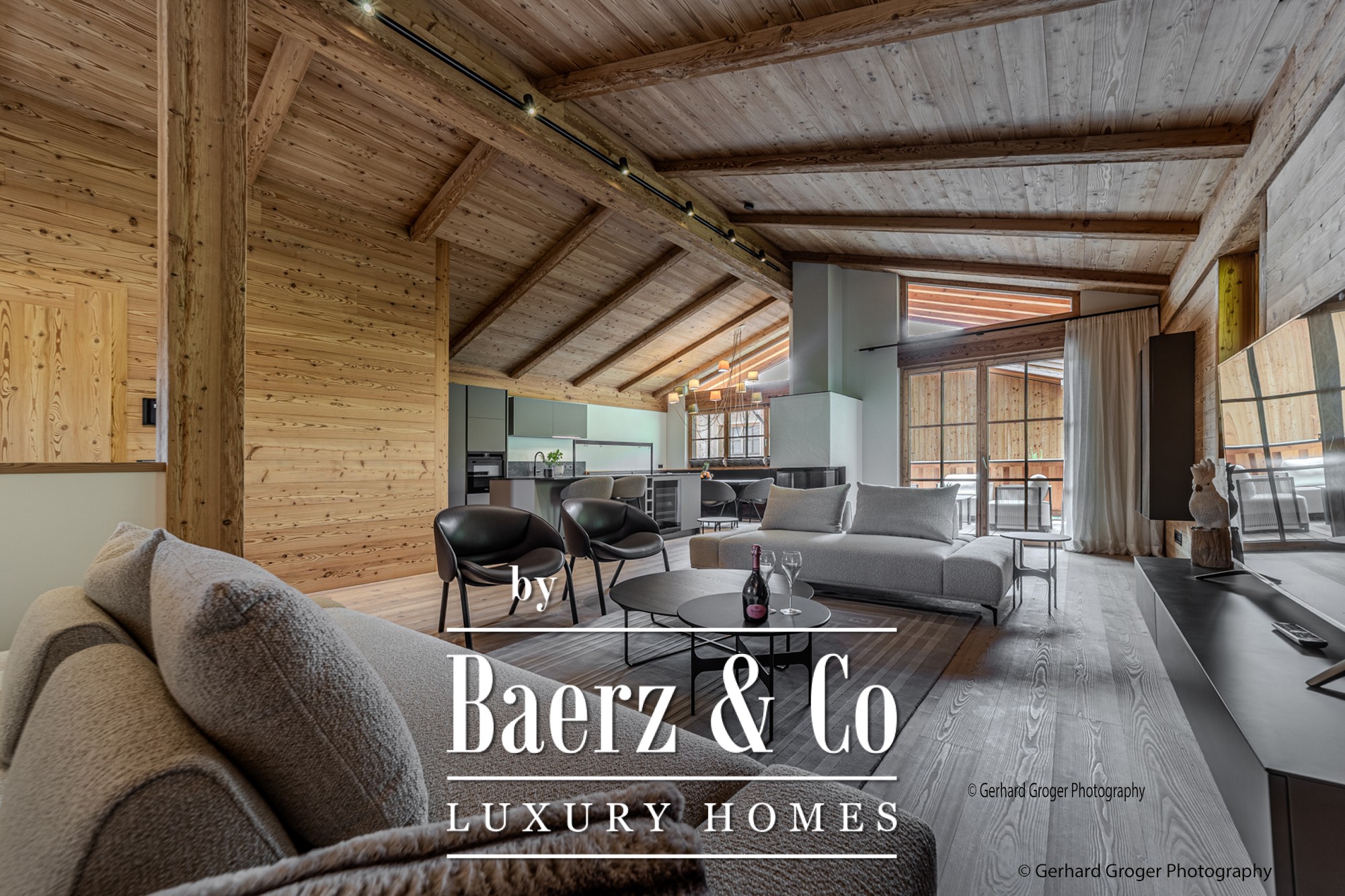 内部空间融合优质落叶松地板与陶瓷瓷砖、地暖系统和高端定制厨房。诸如电梯、可控通风、BUS 系统、地下停车场及充裕储物空间等贴心配套设施,进一步提升了日常生活品质。该物业步行即达 Kirchberg 小镇中心及 KitzSki 滑雪区,兼具热闹村落生活的便捷与山居环境的宁静。