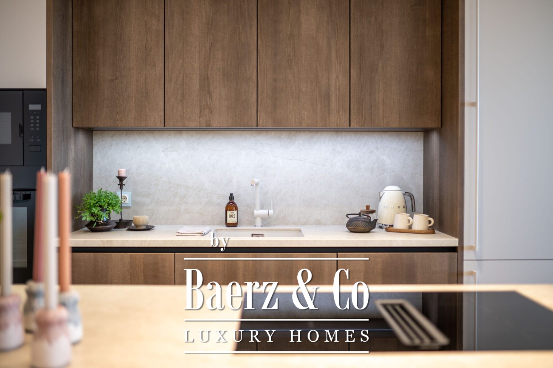 室内空间巧妙布局,124平方米起居区层次分明。无缝开放式布局通向现代厨房,甄选高端电器与宽阔操作台,无论日常烹饪还是欢庆时刻皆得心应手。三间卧室各自构建私密空间,主卧套房作为安享静谧的庇护所,享有极致景观与卓越卫浴。两间精致浴室兼具实用体验与宁静氛围。