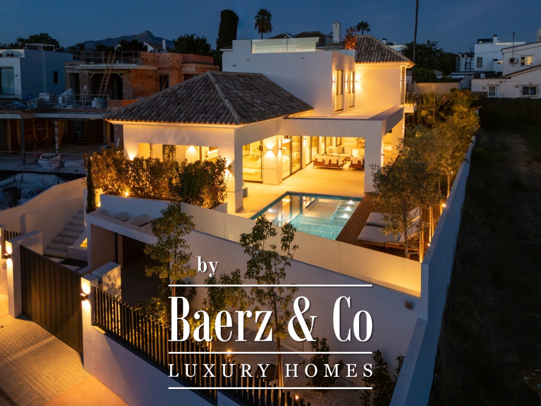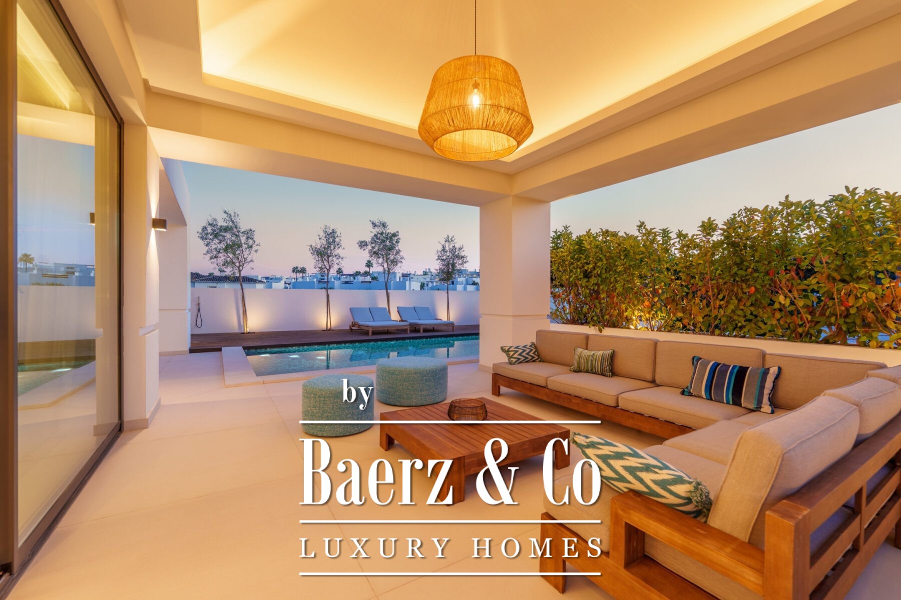 当代风格的Marbella别墅隐匿于备受推崇的San Pedro de Alcántara社区,是一处静谧而优雅的隐居佳所。这里,隐私与建筑美学定义着居家每一日。别墅室内面积达446平方米,坐落在洁白的墙体与修剪整齐的绿植之后,展现出一方郁郁葱葱的世外桃源,包括私家泳池、木质露台,以及宽阔的遮蔽式平台,专为用餐与静心休憩打造。屋顶日光露台诠释了海滨休闲的精髓,带来充裕空间,无论是社交娱乐还是私密安逸都恰到好处。