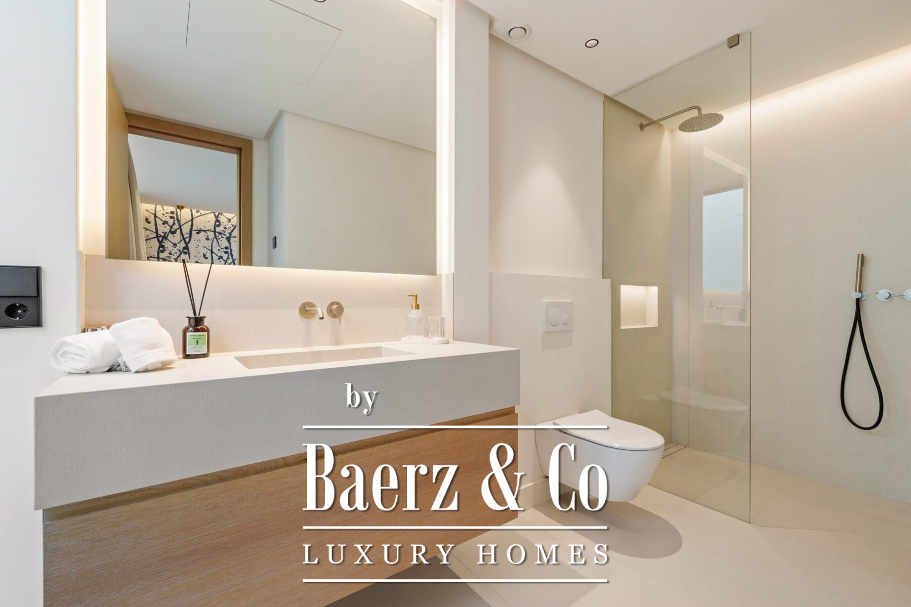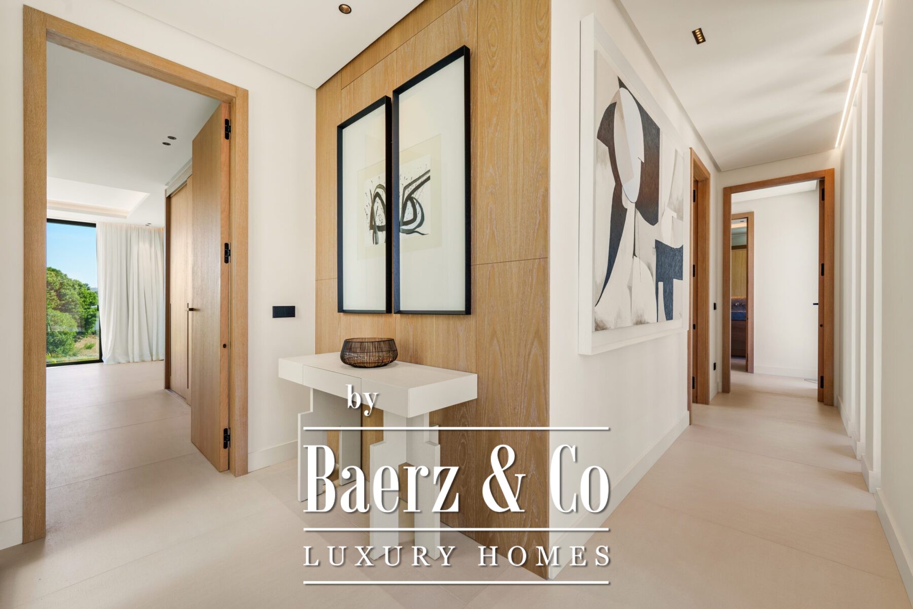 五间静谧卧室均直通露台,各设独立卫浴,采用大理石饰面、悬浮浴柜和独立式浴缸。主卧套间以宽敞舒适、朝阳私属露台,呈现一片宁静的专属天地。下层配有全套健身房、玻璃桑拿房和蒸汽室,成就专属的健康休憩空间。安全车库、尊贵入户及山景为这片612平方米的土地更添格调,现代化生活便利触手可及,临近Marbella的高尔夫球场、海滩及本地设施。这座待售奢华别墅代表了地中海当代表达的生活新高度。