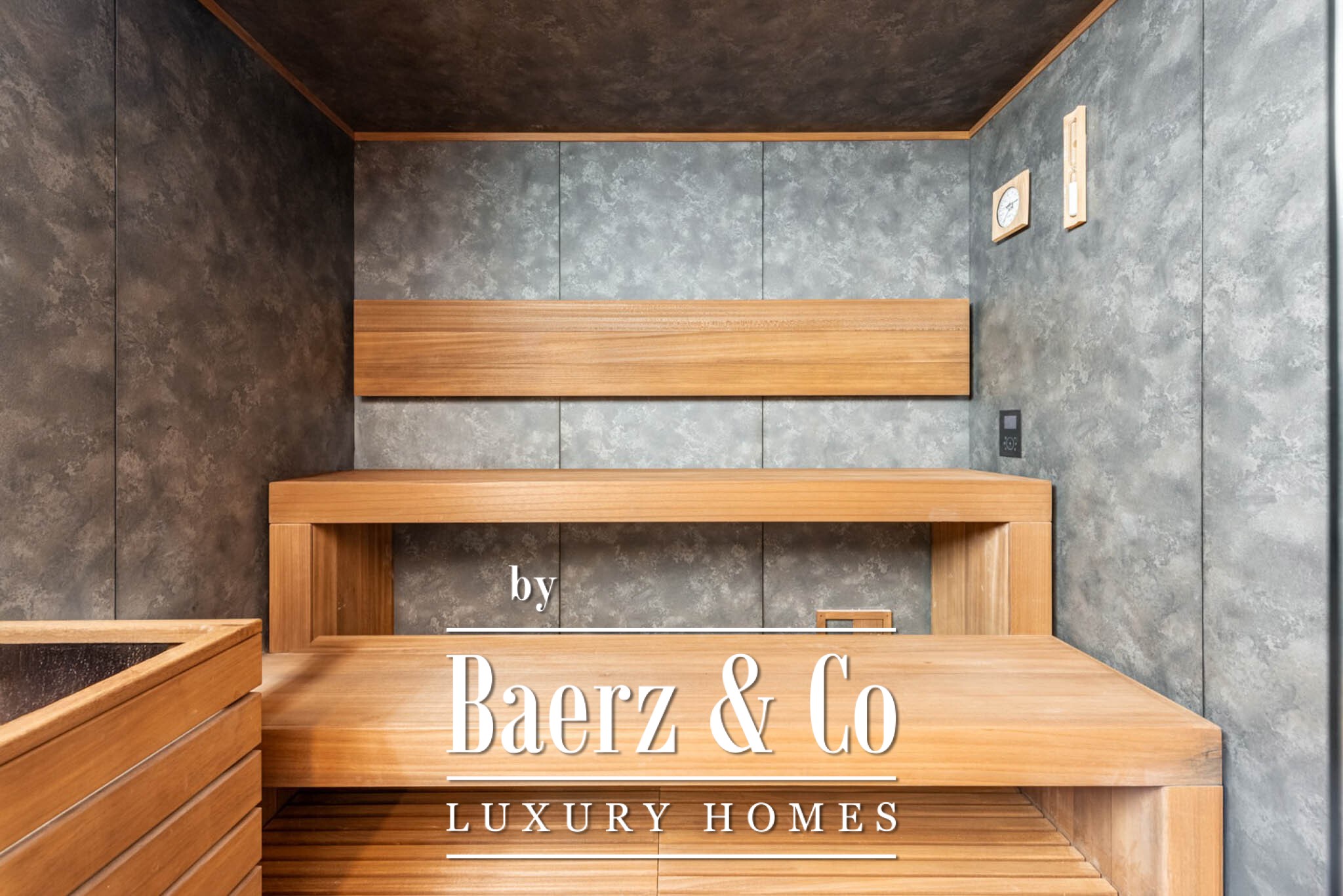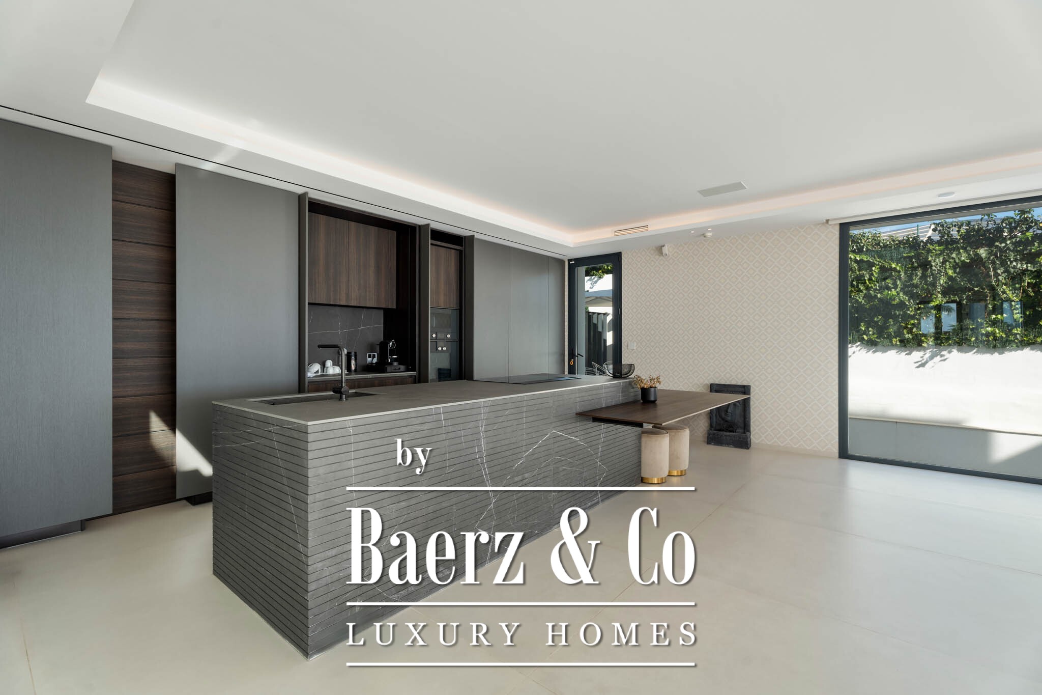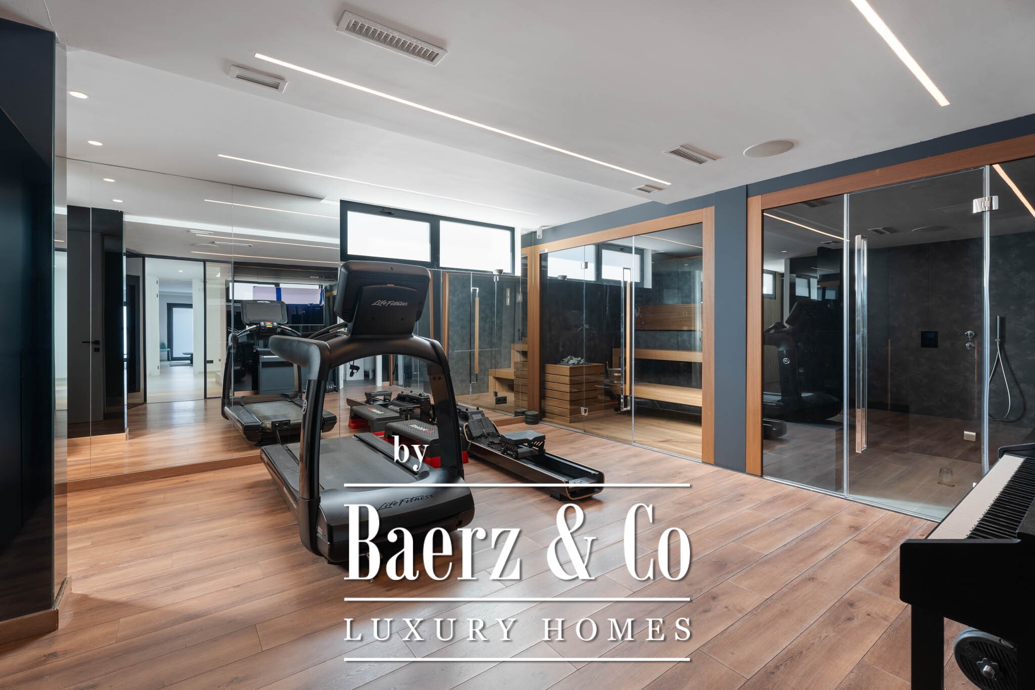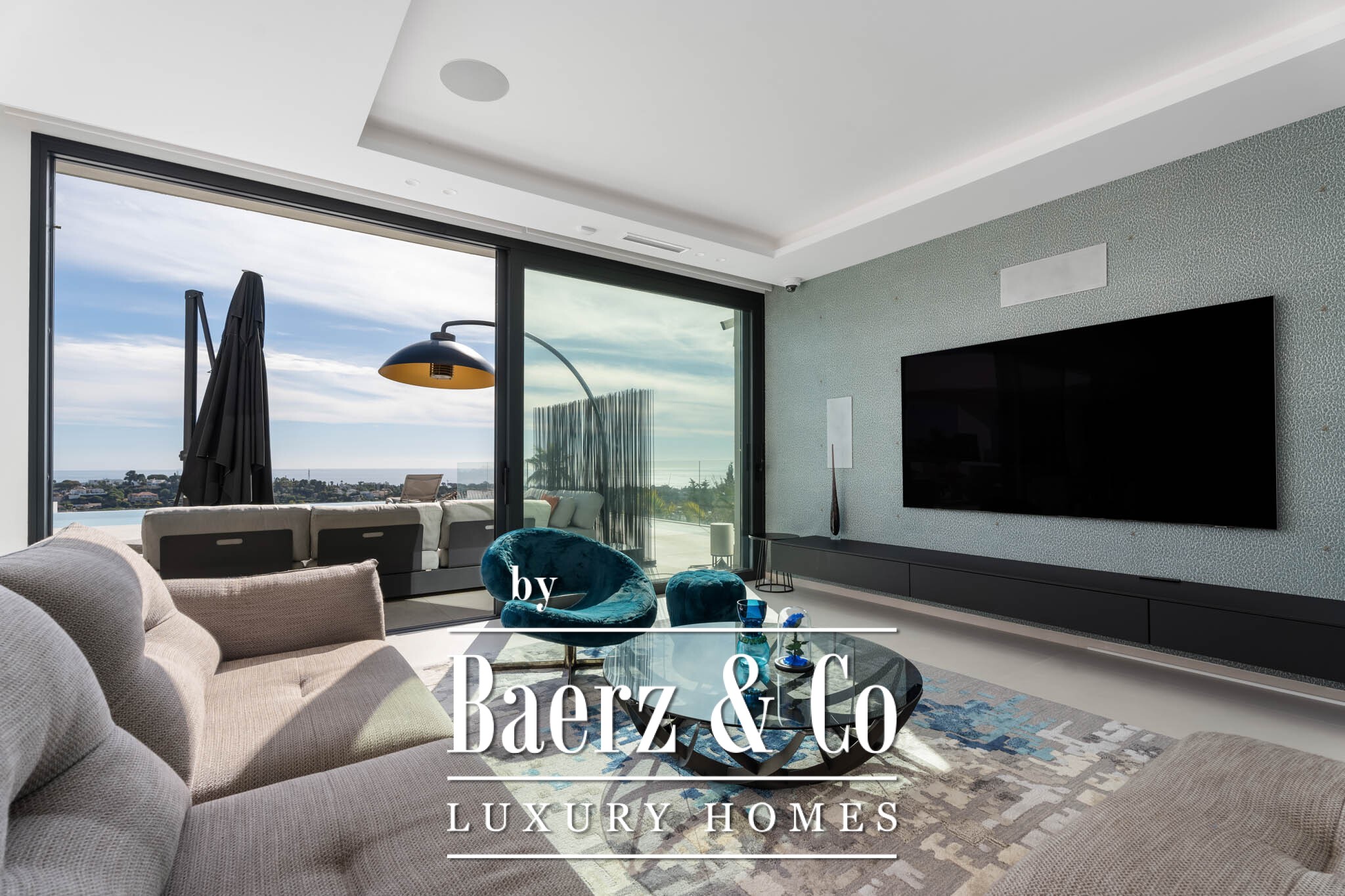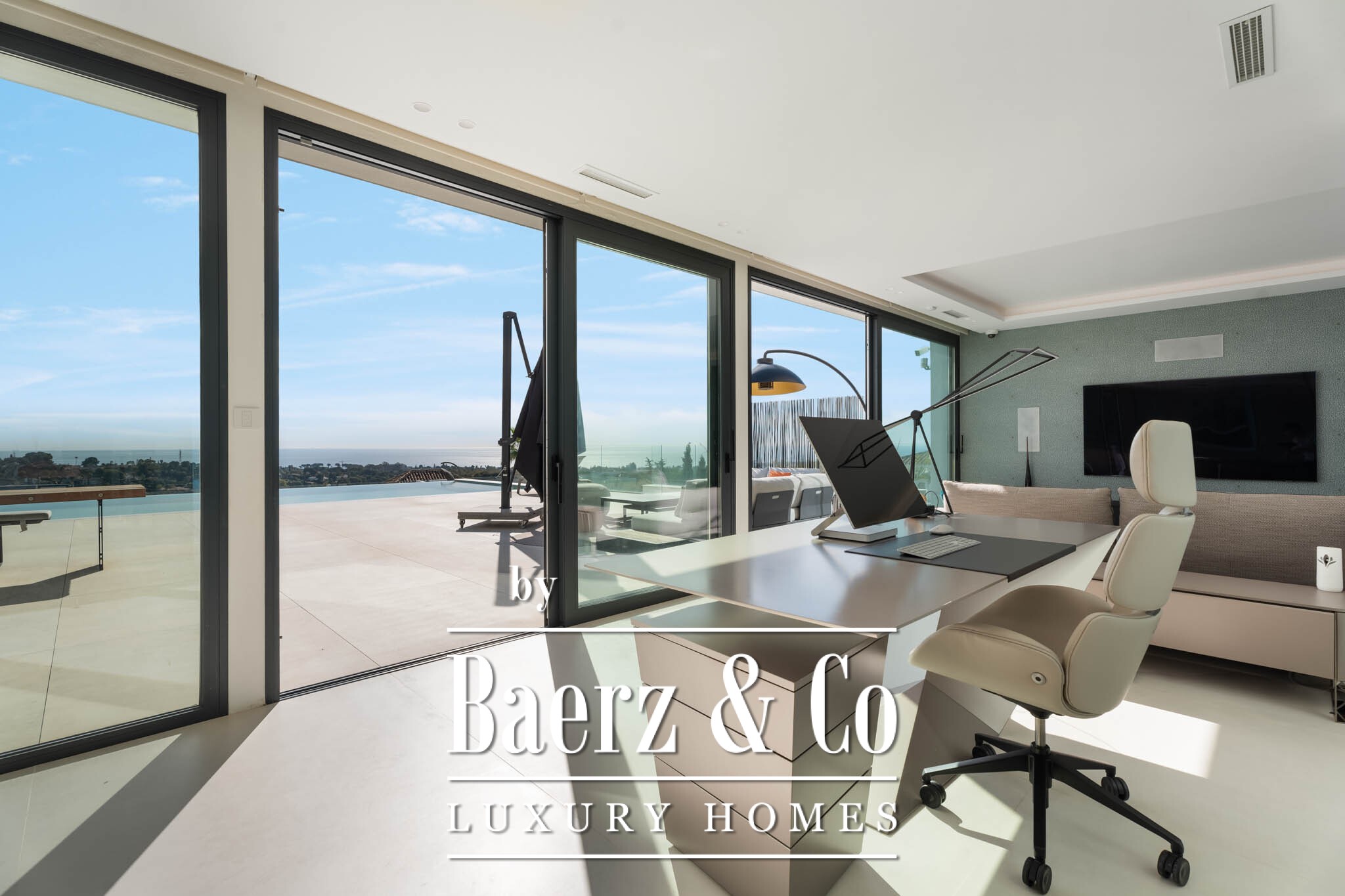六间卧室均设有独立卫浴,保障舒适与私密。主套房享有无遮海景并可直通私人露台。更高层设有带按摩浴池的日光浴区,可俯瞰高尔夫球场及遥远的非洲海岸风光。下层设有娱乐与康体空间,包括健身房、桑拿房、影音室及专属会客区。大型车库配备旋转平台,便捷实用。