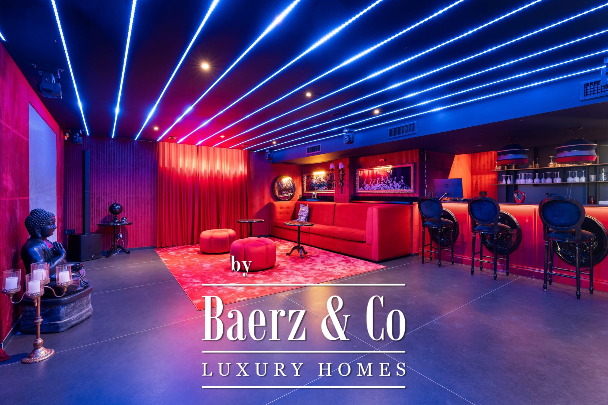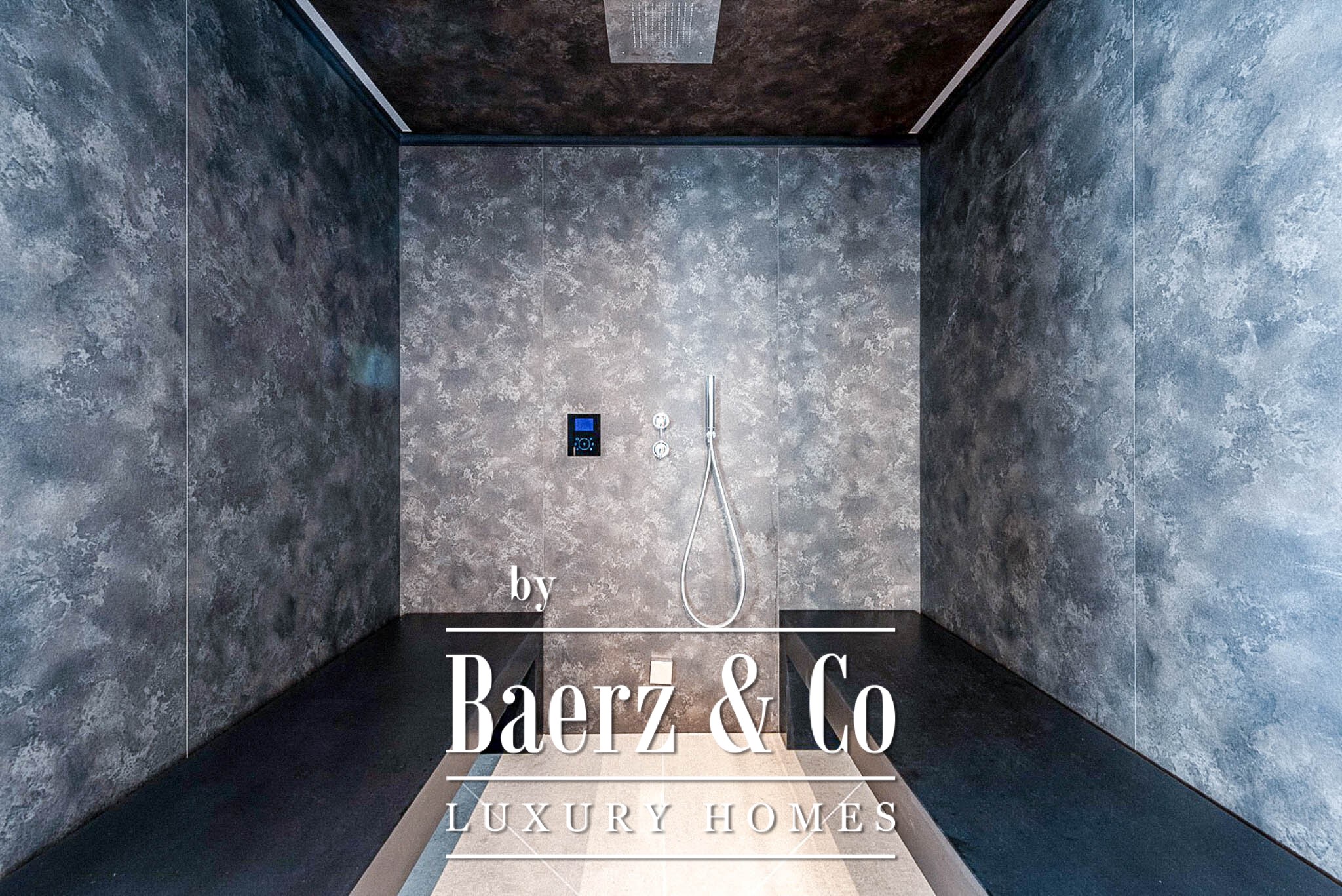 设计注重光线和空间的通透。室内面积794平方米,占地1,500平方米,分布于多个楼层,通过电梯连接。开阔的起居空间与露台和花园无缝衔接,大幅窗户巧妙消融室内外界限。无边际泳池引导目光延伸至地平线,建筑与自然景致融为一体。