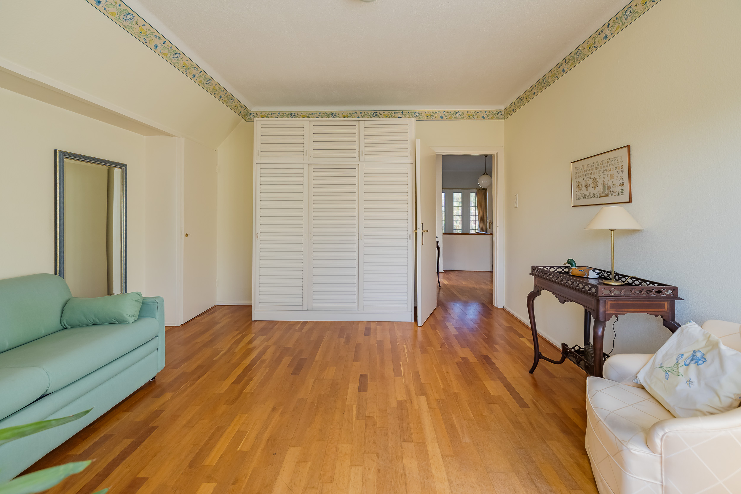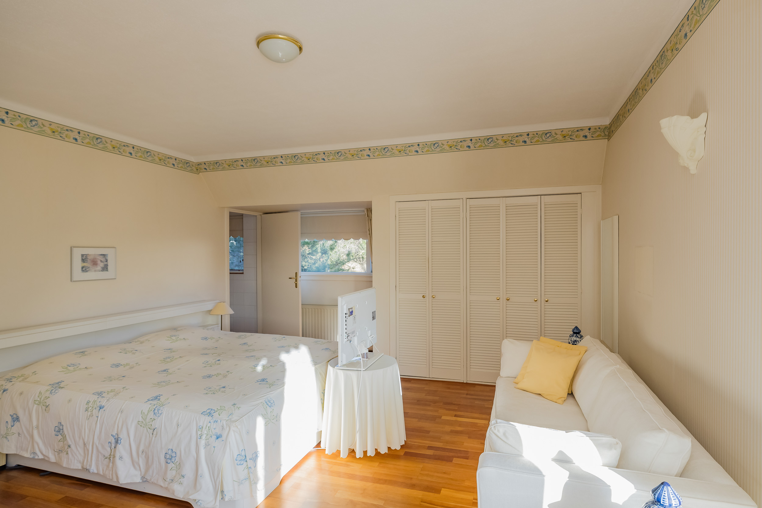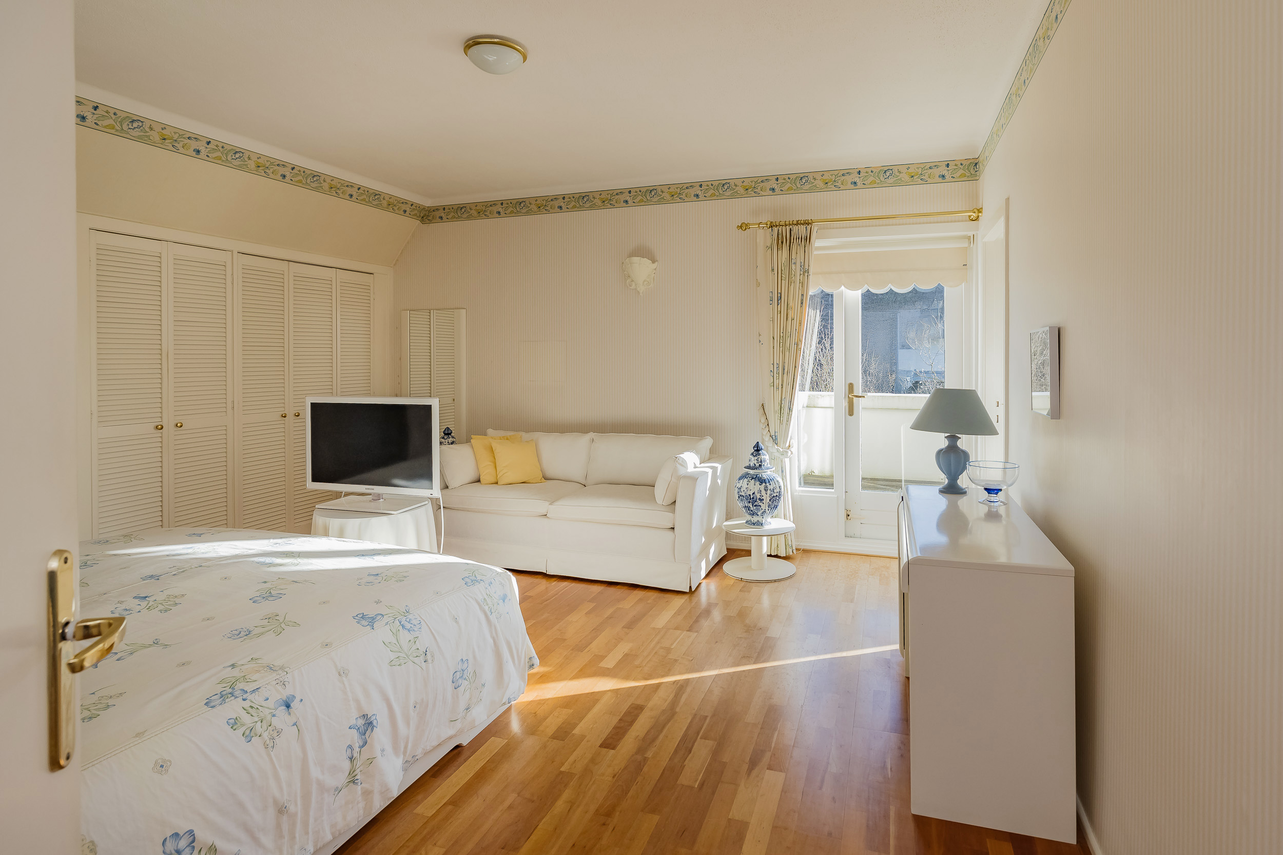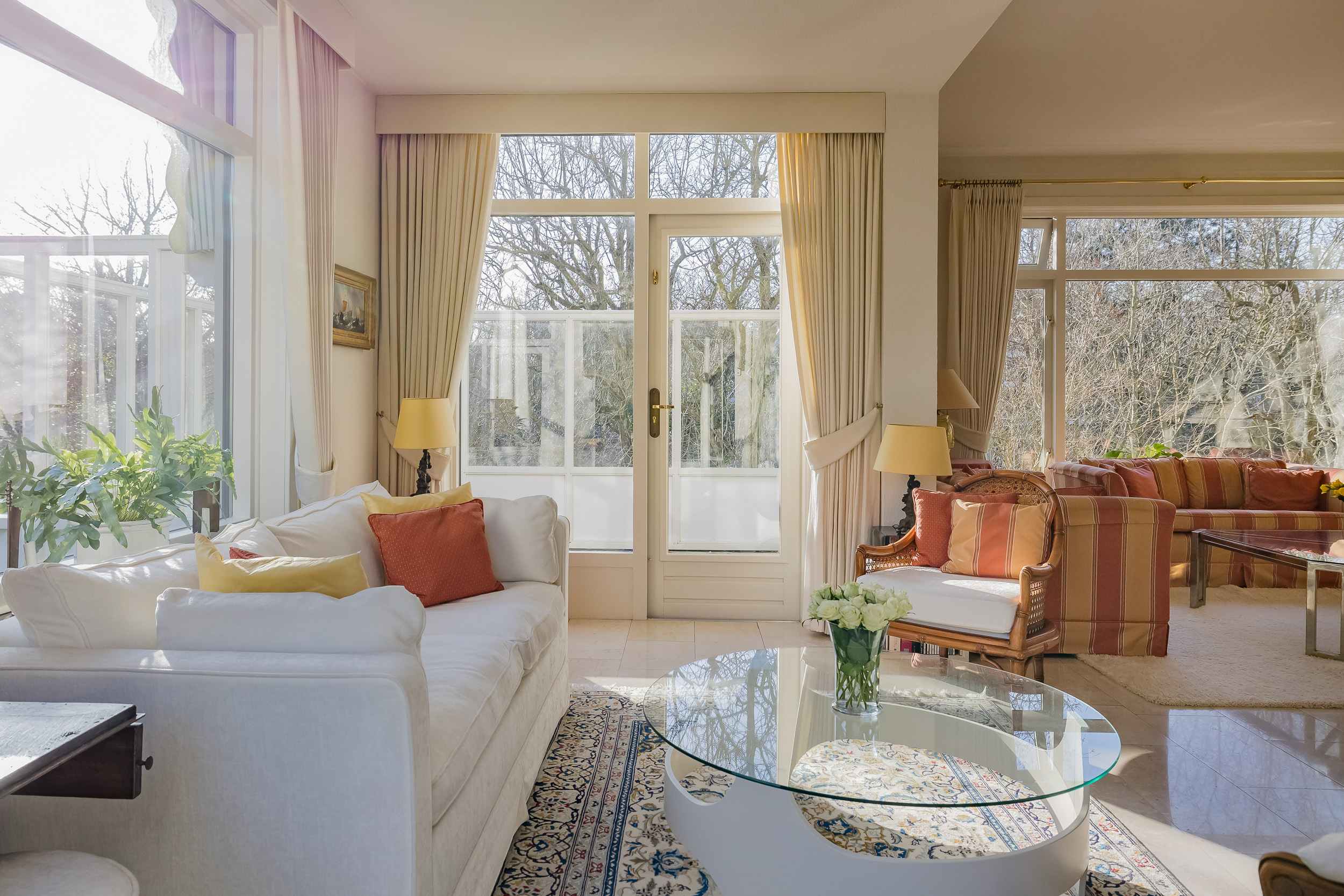 宽敞的客厅配备壁炉及地暖,营造温馨氛围,配以大理石地板和明亮的花园景观,空间静谧怡人。优雅的连体餐厅自然而然地延伸,阳光充沛、全景玻璃封闭的露台迎接清晨第一缕阳光。厨房为社交聚会而设计,配备燃气壁炉和现代化电器。