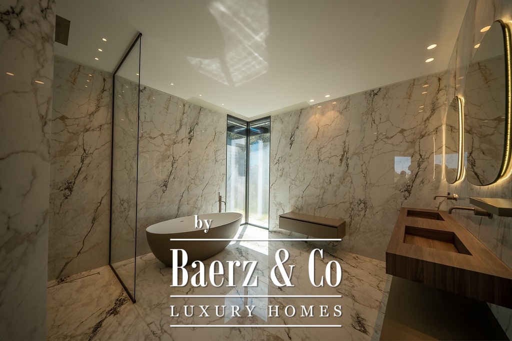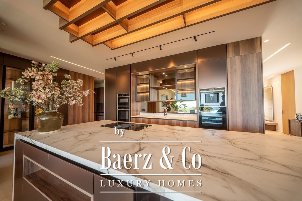 别墅为品味卓越的客户而设计,一楼通透明亮,设有宽敞的起居区、雅致的餐厅、开放式高品质厨房、配备定制衣帽间和浴室的主人套房,以及另一间带独立卫浴的卧室。楼上三间额外的套房均配备独立淋浴间与衣帽间,所有套房均可通向面朝大海的宽阔露台。