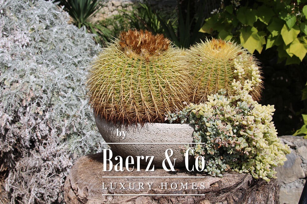 庄园花园由层叠的露台构成,每一层皆隐匿着静谧座椅,伴随地中海植物与缤纷花卉。最低层的露台设有一个11米乘5米的室内泳池,此外配有100平方米的阳光露台与户外淋浴,营造出适合静思与户外生活的空间。